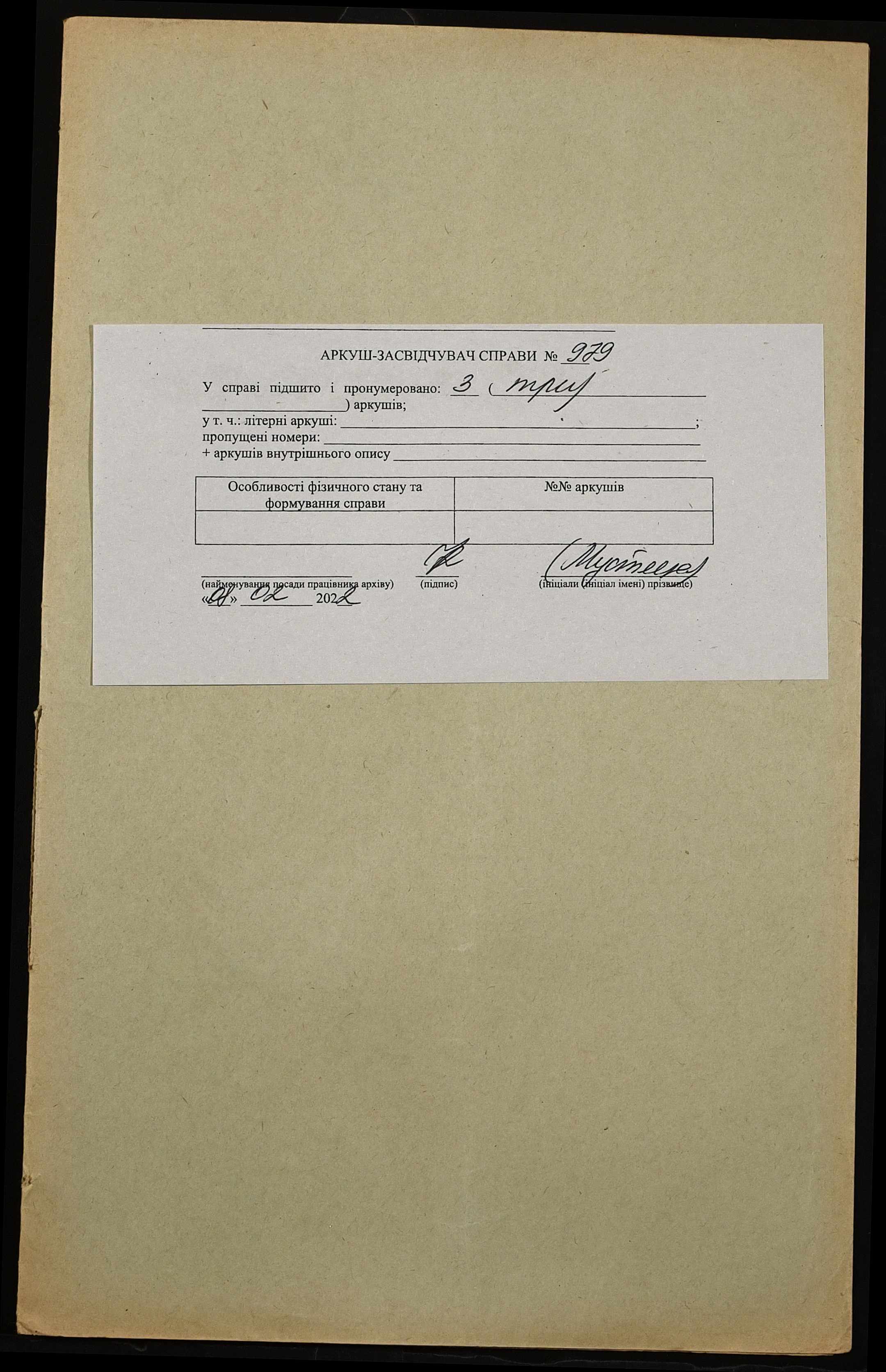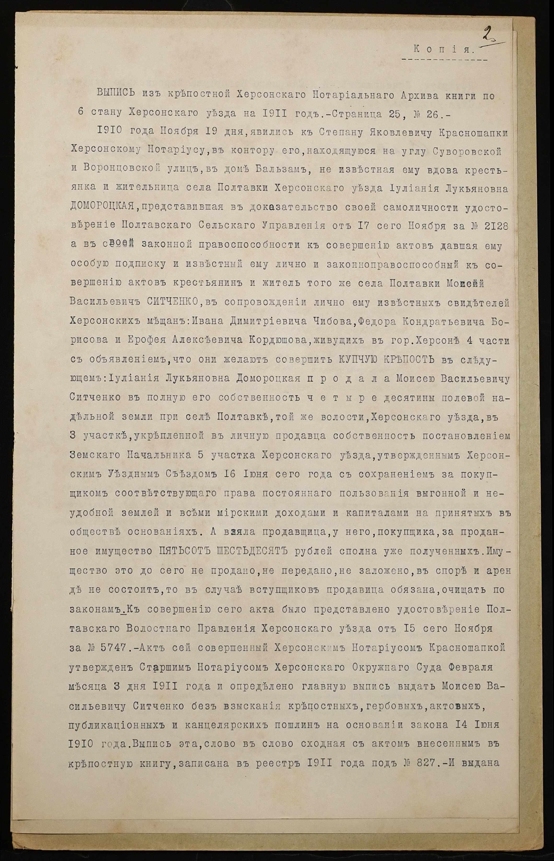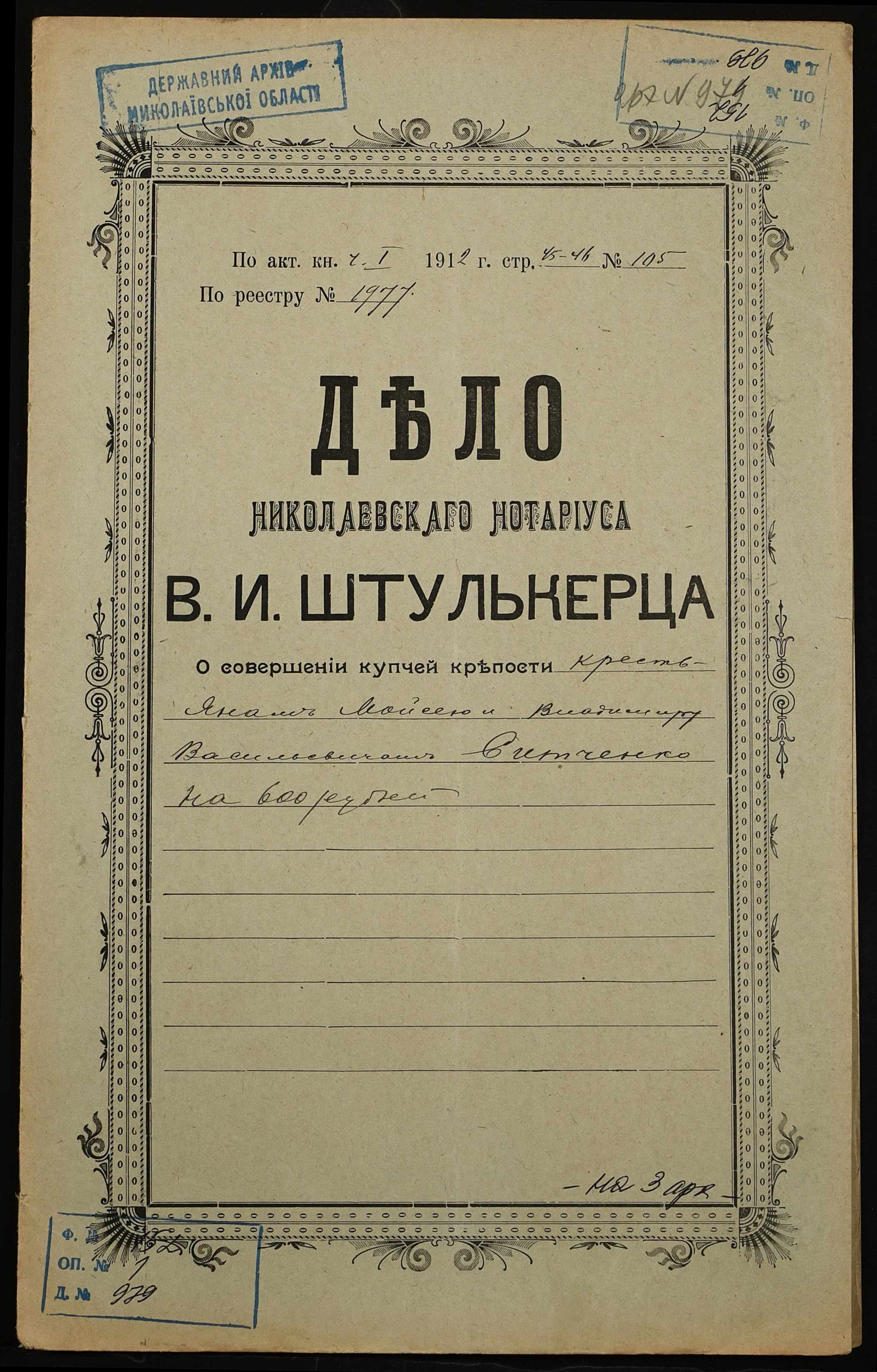 • • • • Справа № 979 “Справа про вчинення купчої про продаж землі селянином Ситченком Мойсеєм Васильовичем (Ситченко Моисеем Васильевичем) на користь селянина Ситченка Володимира Васильовича (Ситченко Владимира Васильевича)”