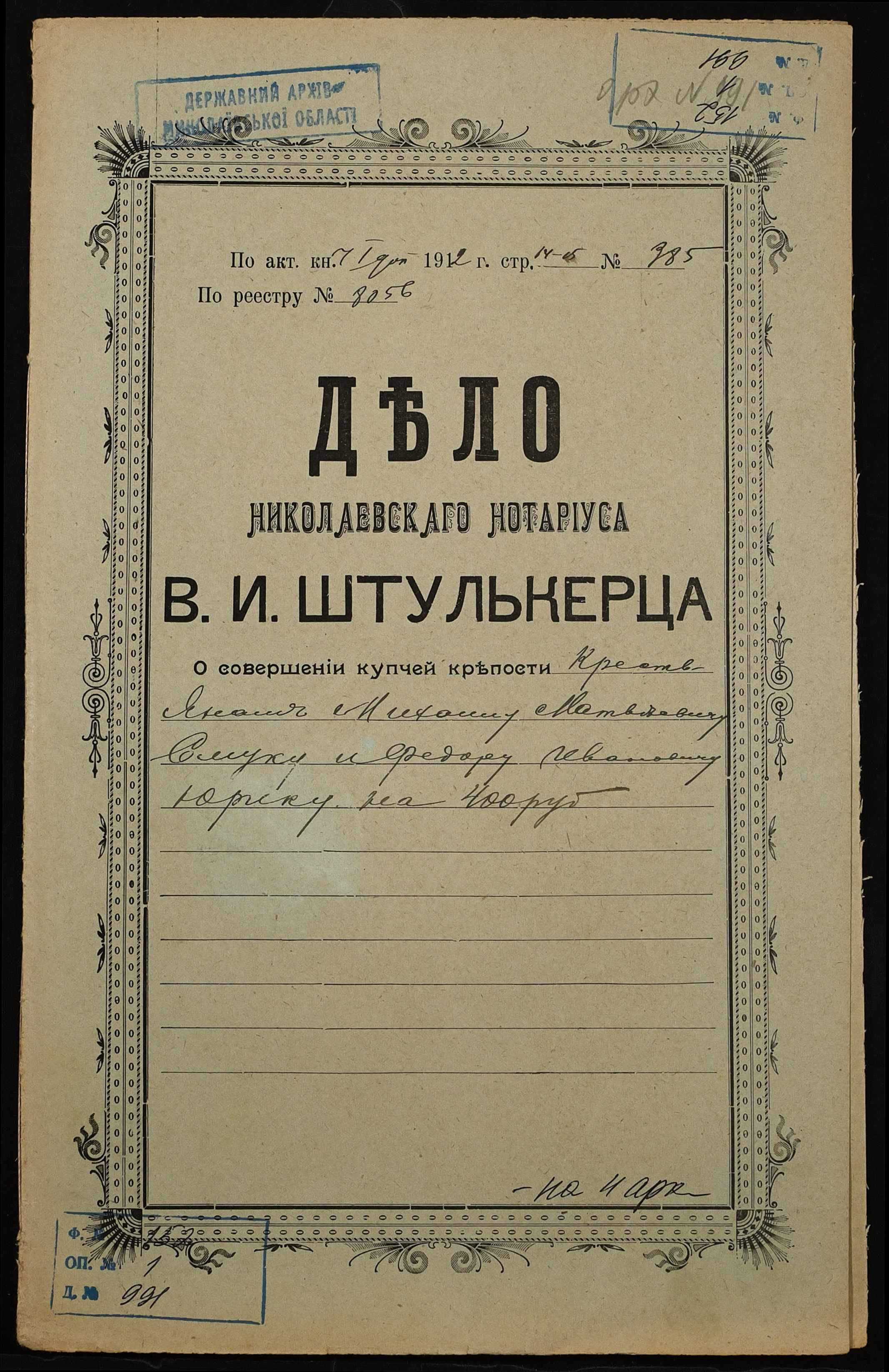 ◦ ◦ Фонд № 152 “Контора миколаївського нотаріуса Херсонського окружного суду Штулькерца Володимира Ісааковича”