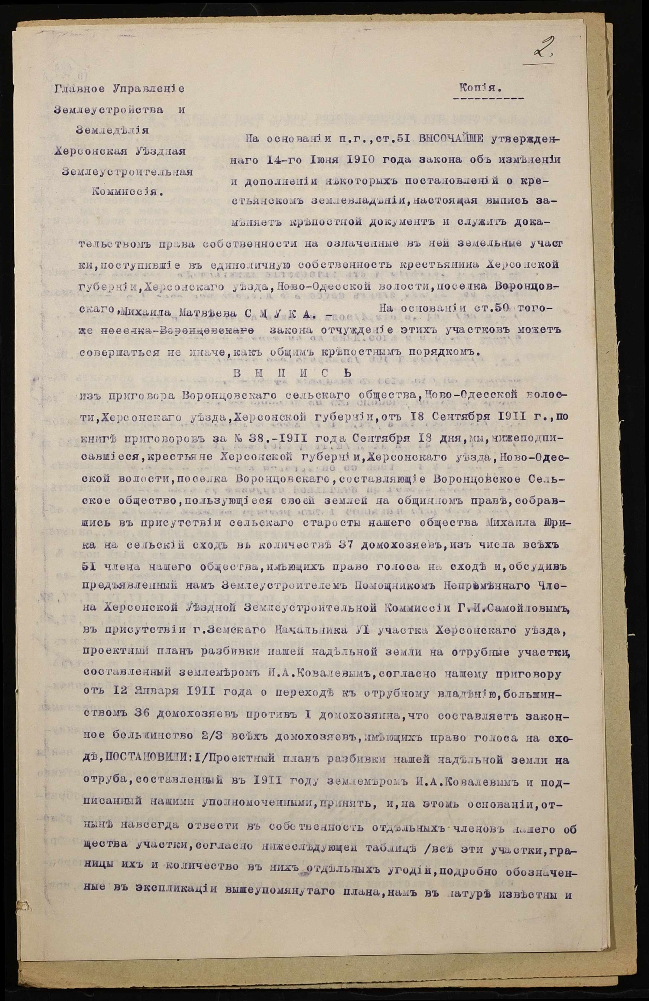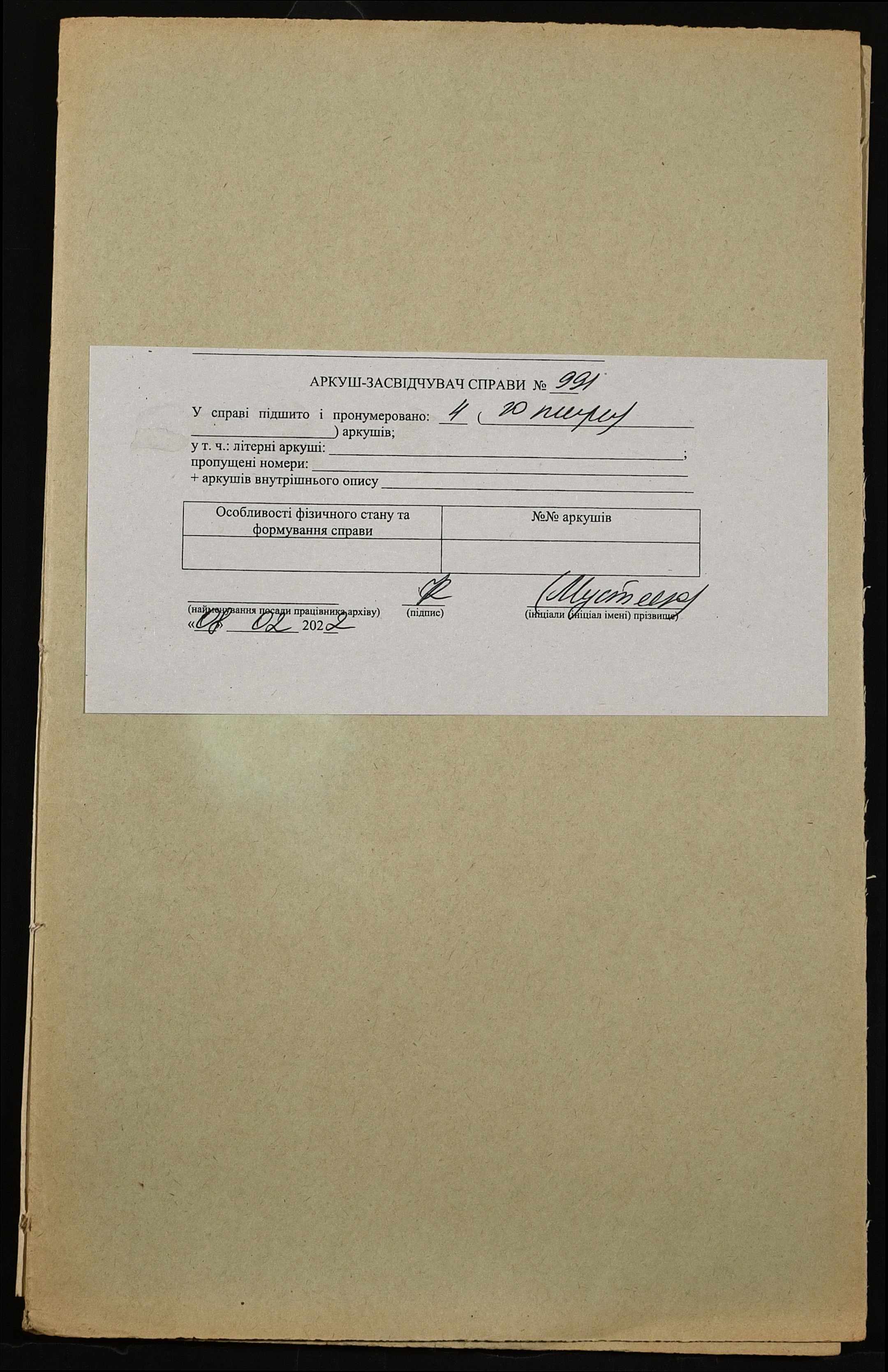 • • • • Справа № 991 “Справа про вчинення купчої про продаж землі селянином Смуком Михайлом Матвійовичем (Смуком Михаилом Матвеевичем) на користь селянина Юрика Федора Івановича (Юрика Федора Ивановича)”
