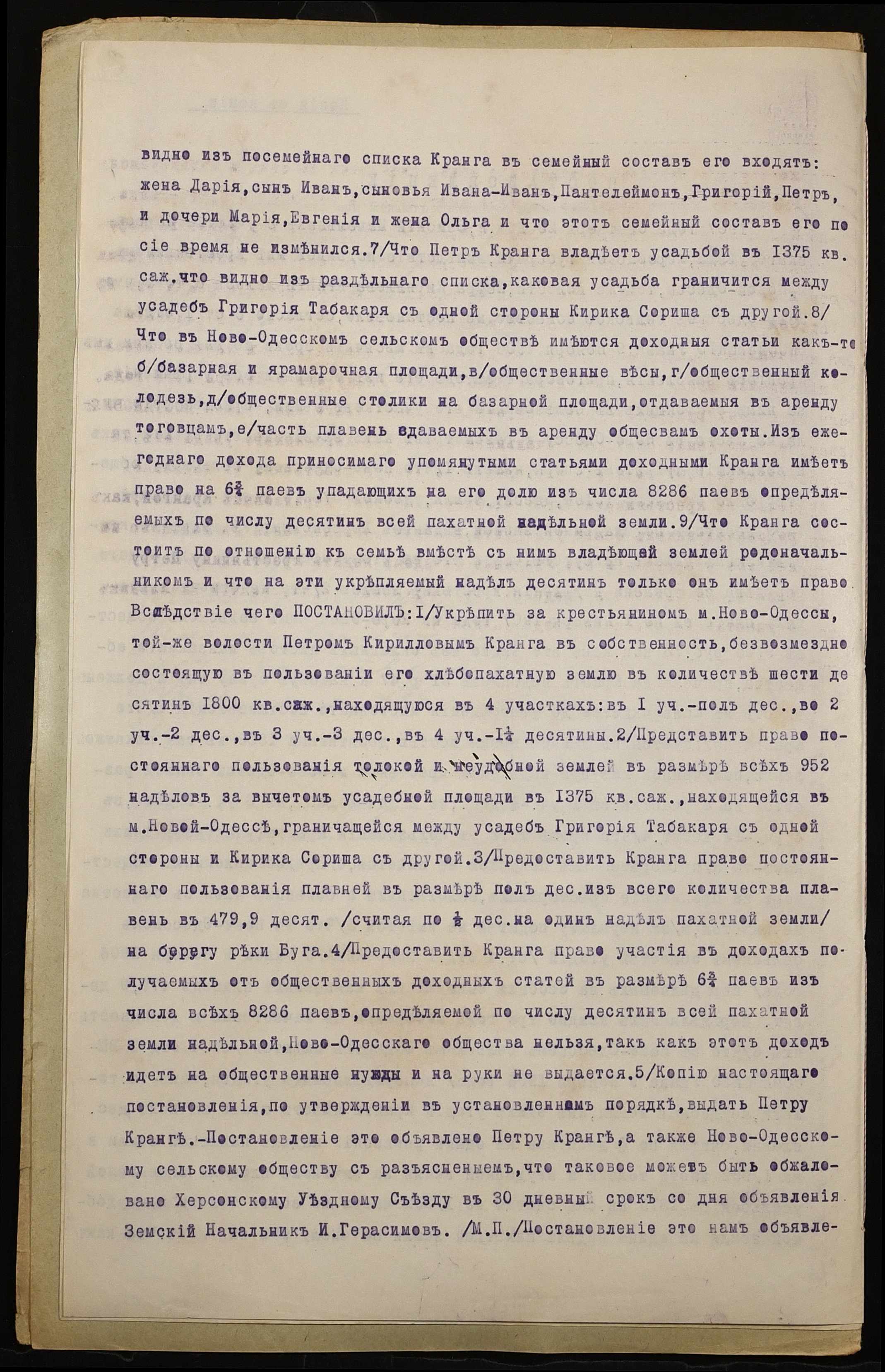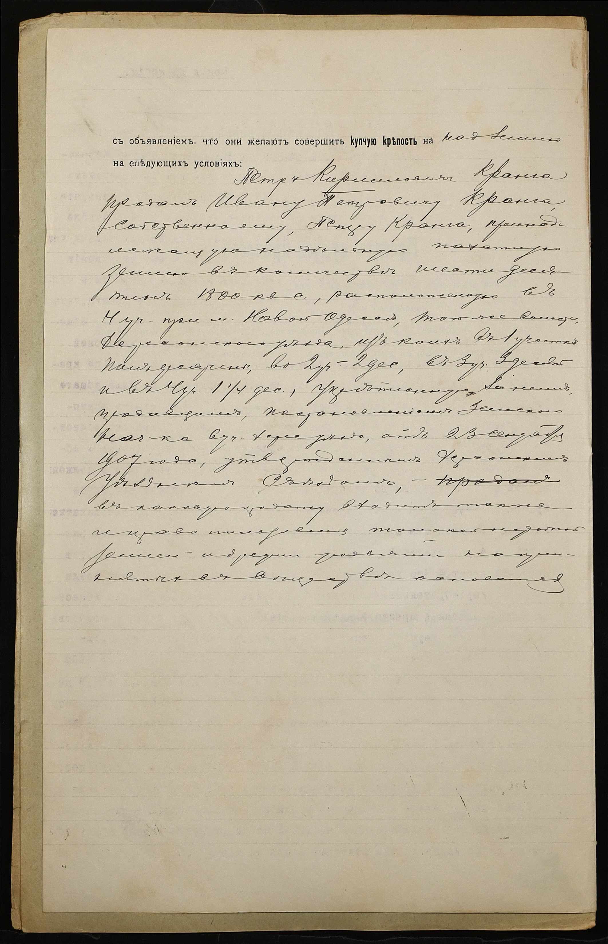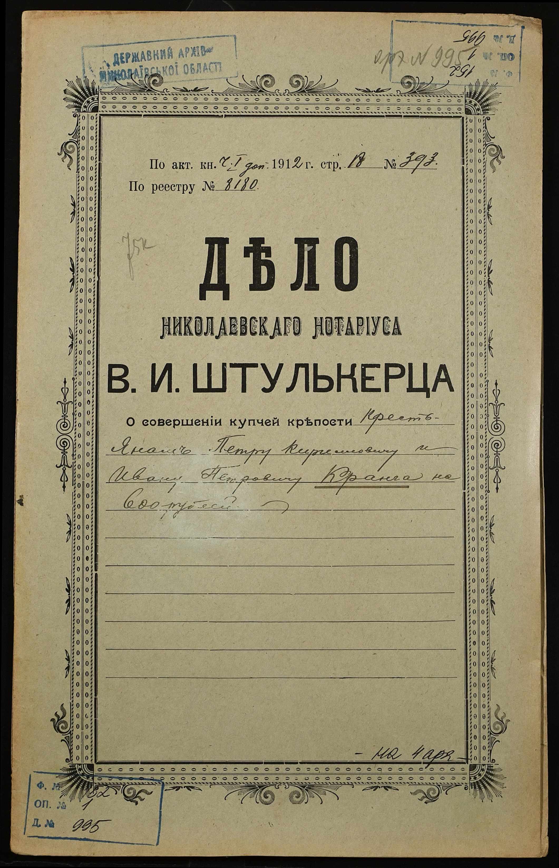 • • • • Справа № 995 “Справа про вчинення купчої про продаж землі селянином Крангою Петром Кириловичем (Крангой Петром Кирилловичем) на користь селянина Кранги Івана Петровича (Кранги Ивана Петровича)”