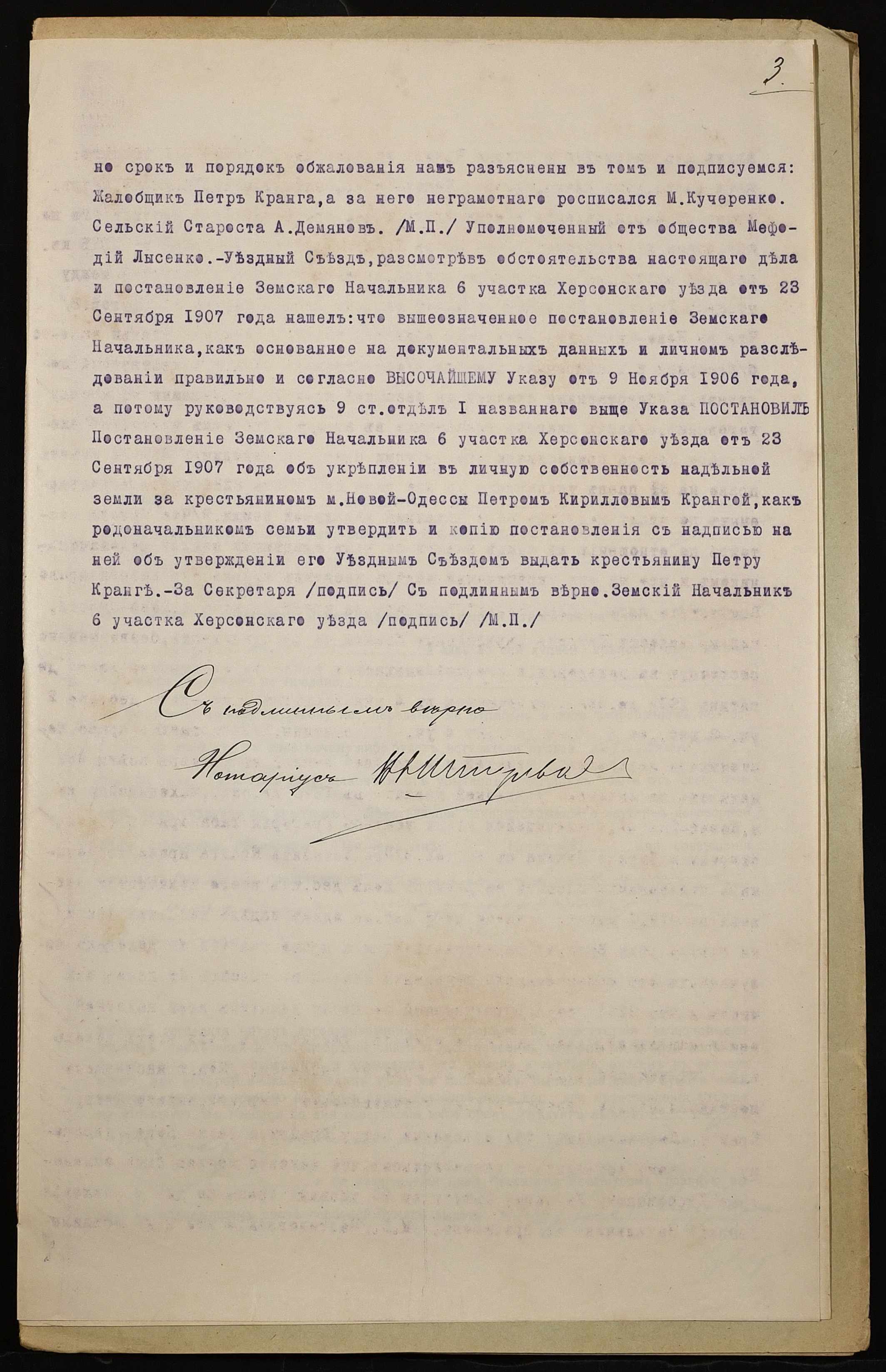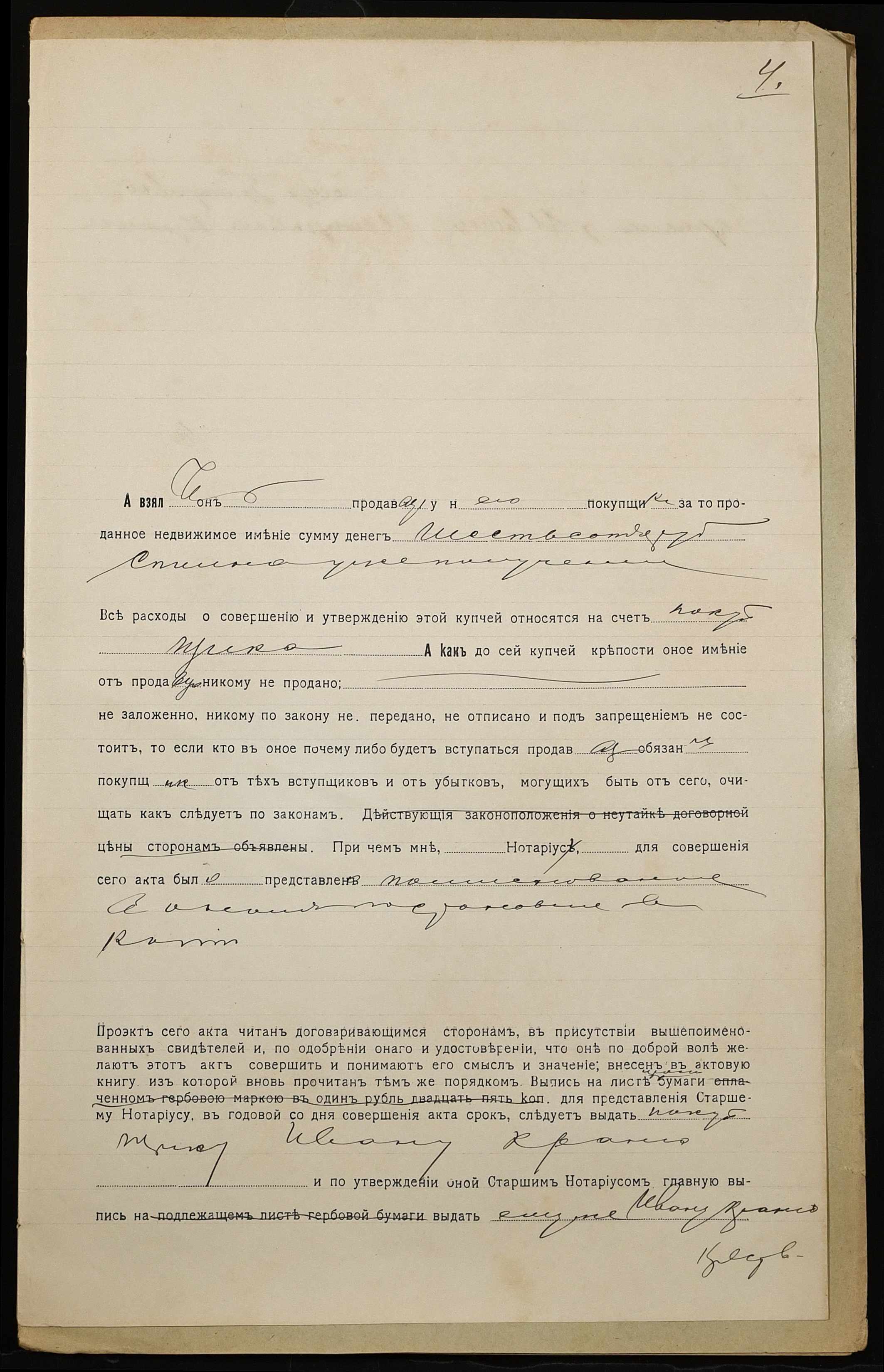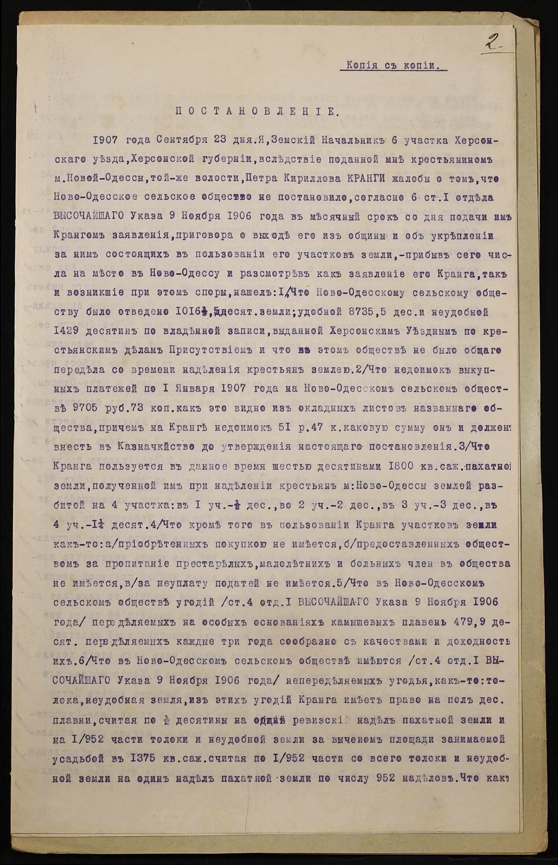 • • • • Справа № 995 “Справа про вчинення купчої про продаж землі селянином Крангою Петром Кириловичем (Крангой Петром Кирилловичем) на користь селянина Кранги Івана Петровича (Кранги Ивана Петровича)”