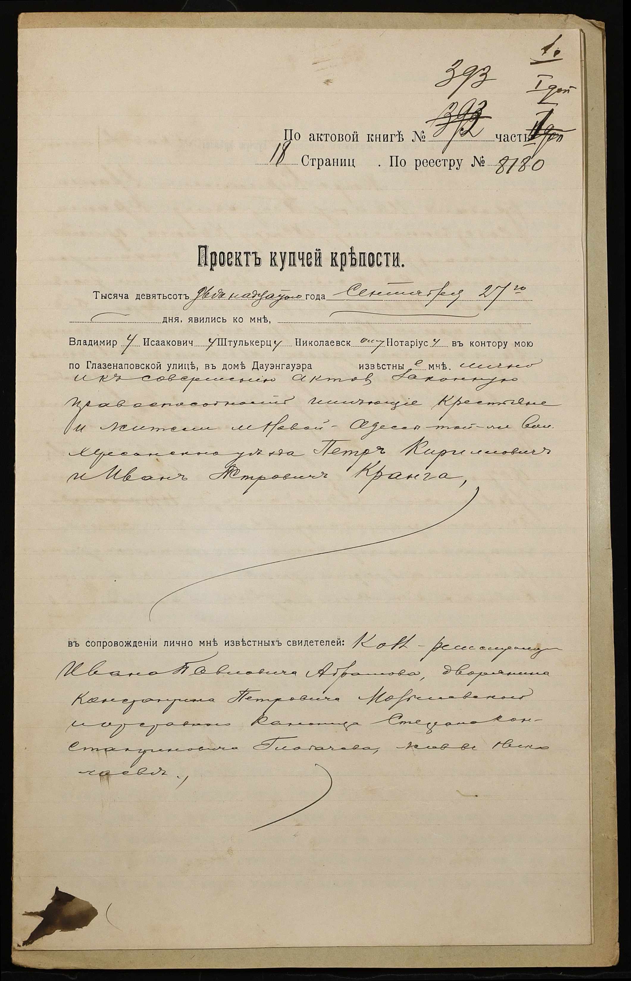 ◦ ◦ Фонд № 152 “Контора миколаївського нотаріуса Херсонського окружного суду Штулькерца Володимира Ісааковича”