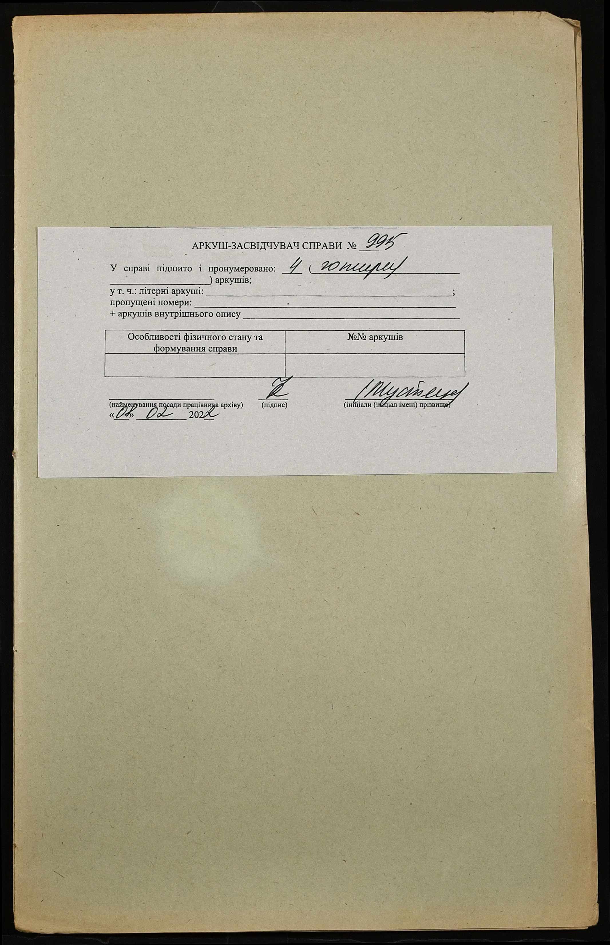 Фонд 152 / Опис 1 / Справа 0995