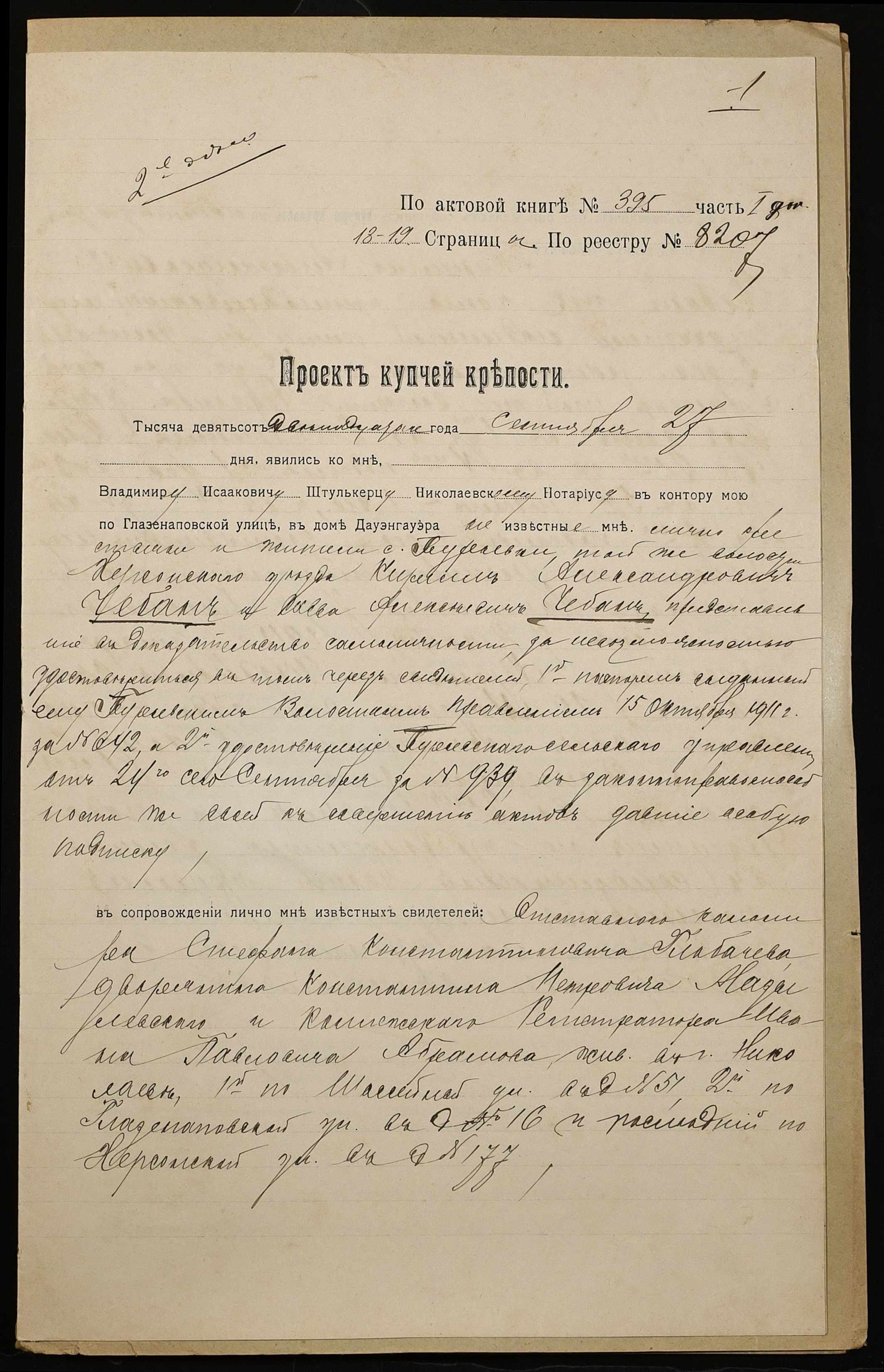 ◦ ◦ Фонд № 152 “Контора миколаївського нотаріуса Херсонського окружного суду Штулькерца Володимира Ісааковича”