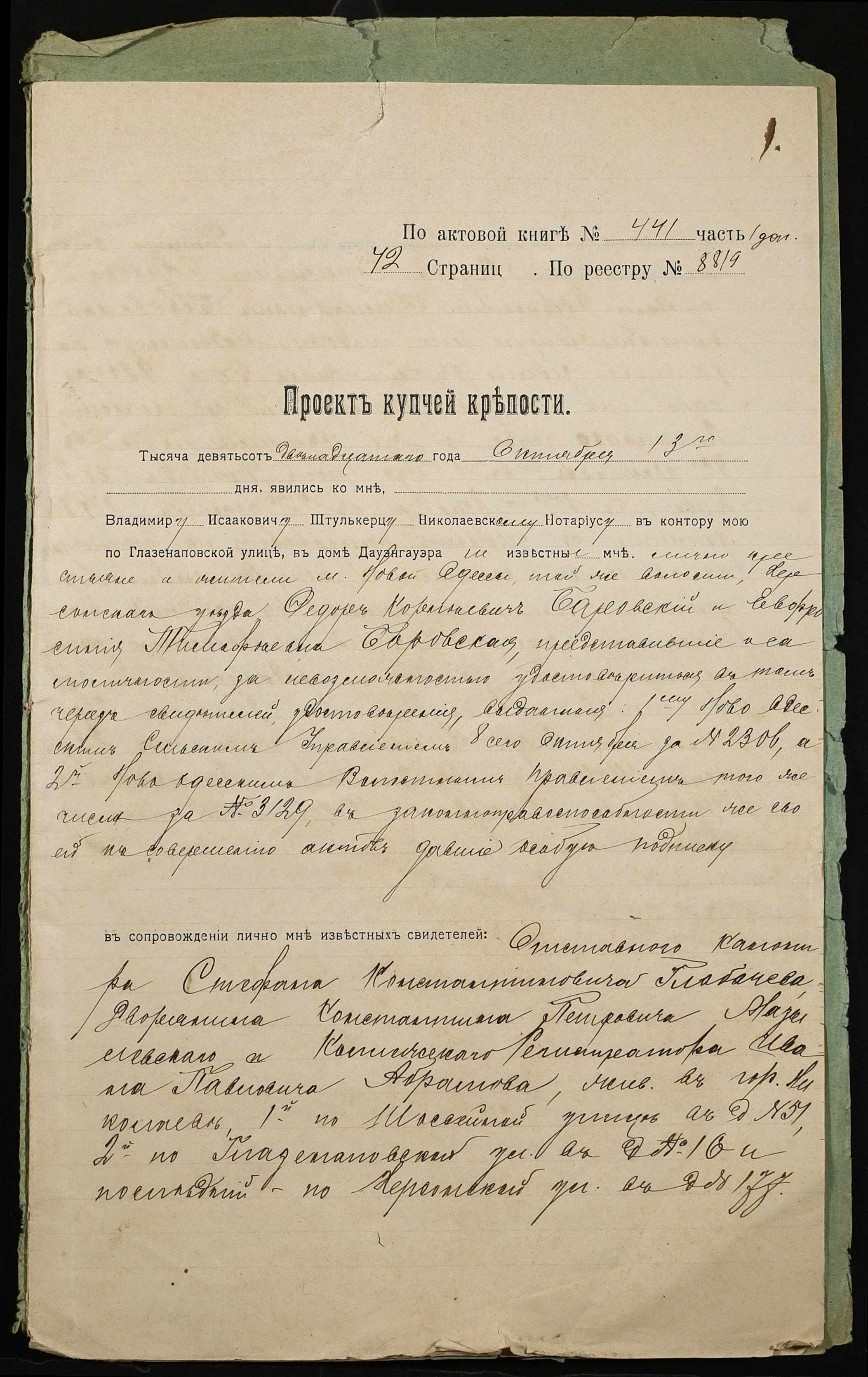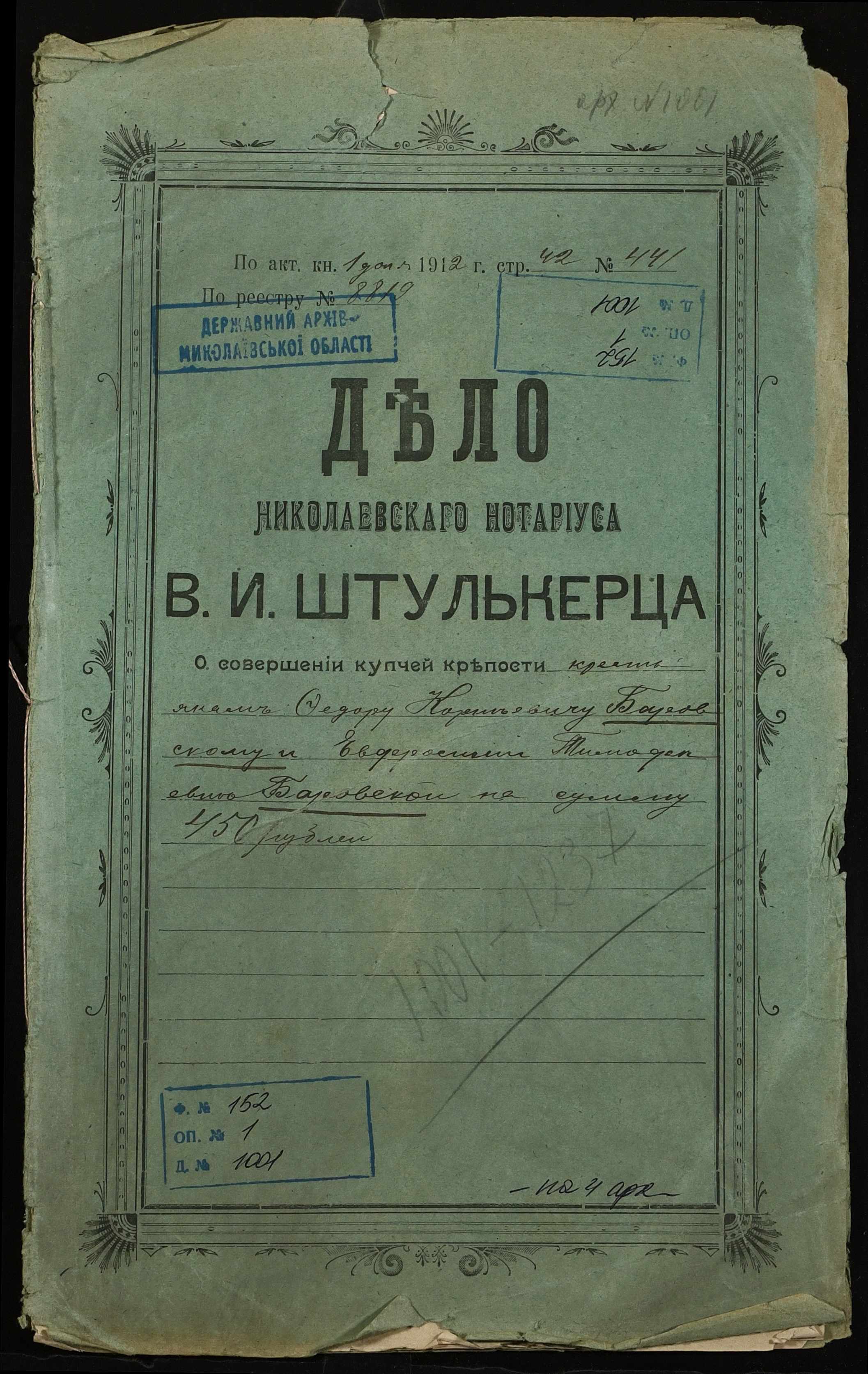 ◦ ◦ Фонд № 152 “Контора миколаївського нотаріуса Херсонського окружного суду Штулькерца Володимира Ісааковича”