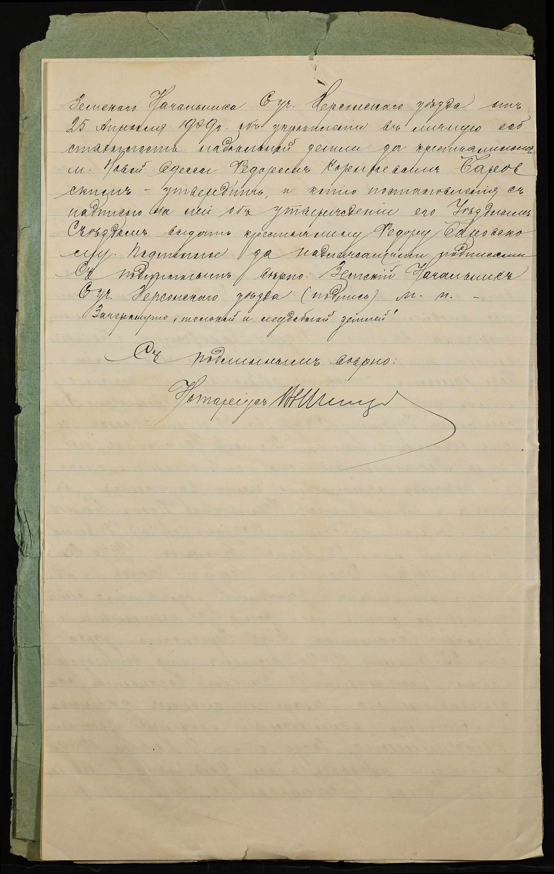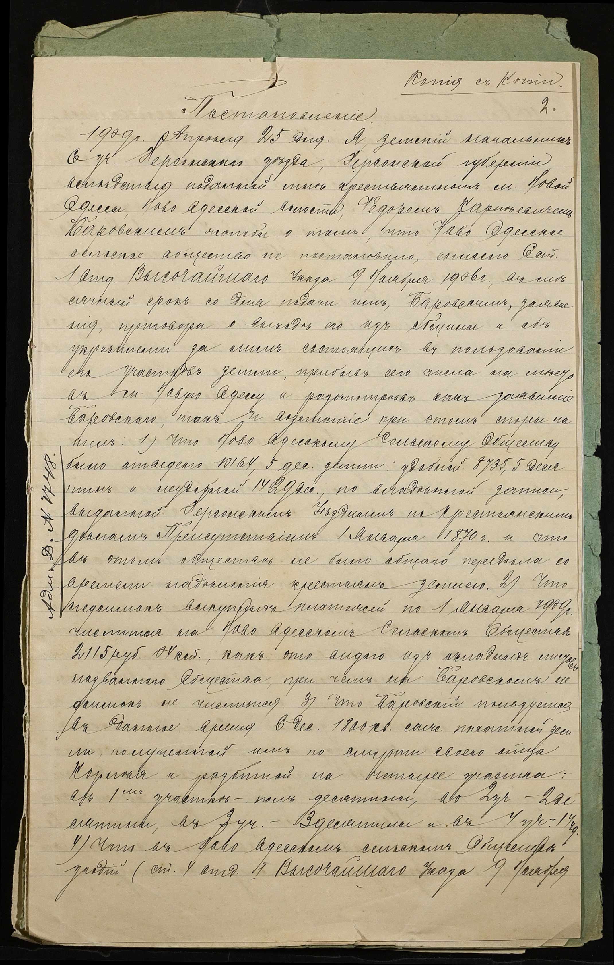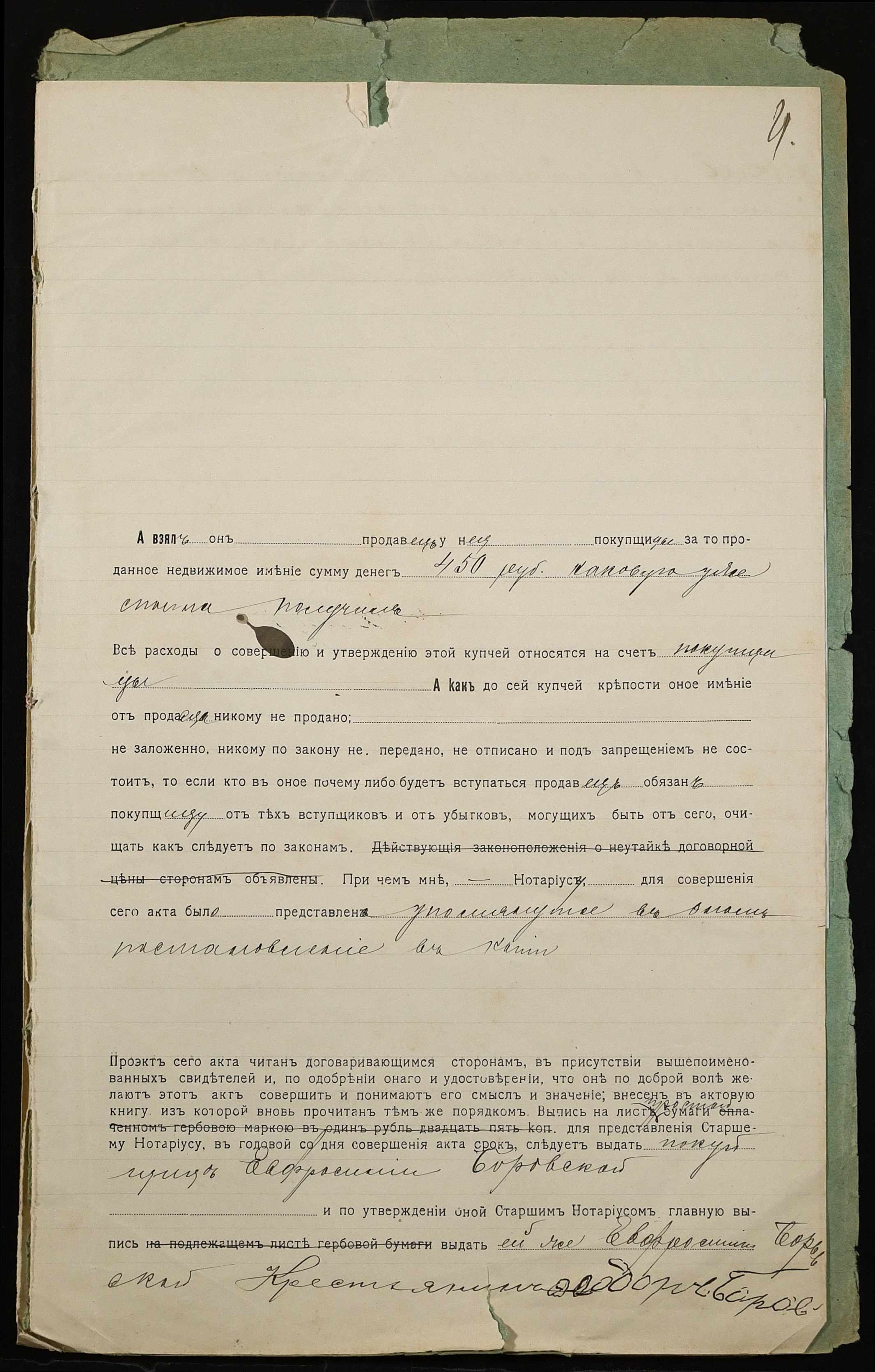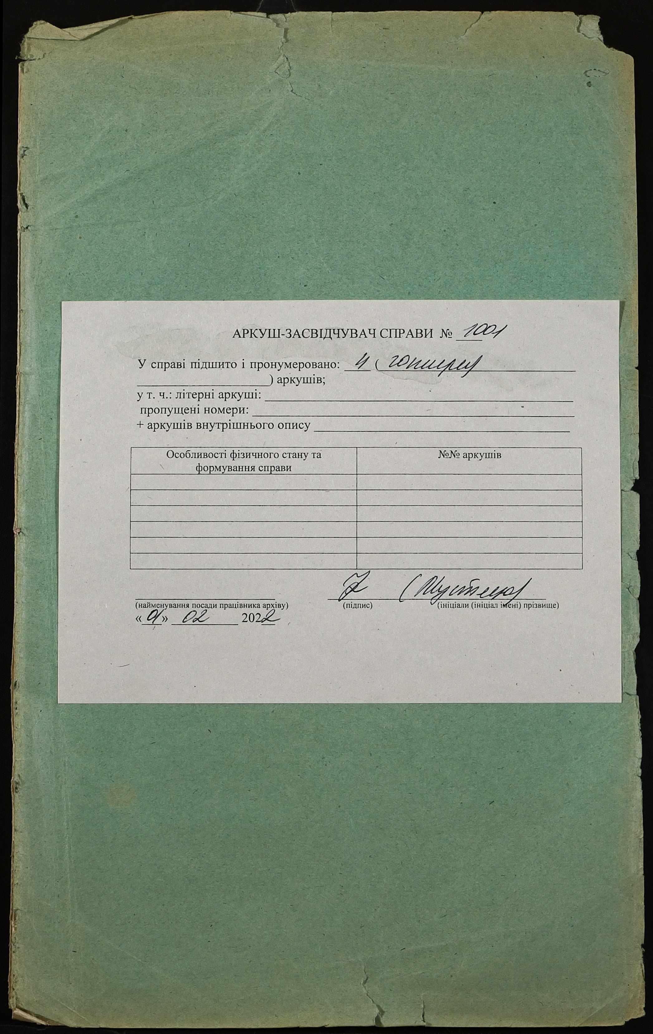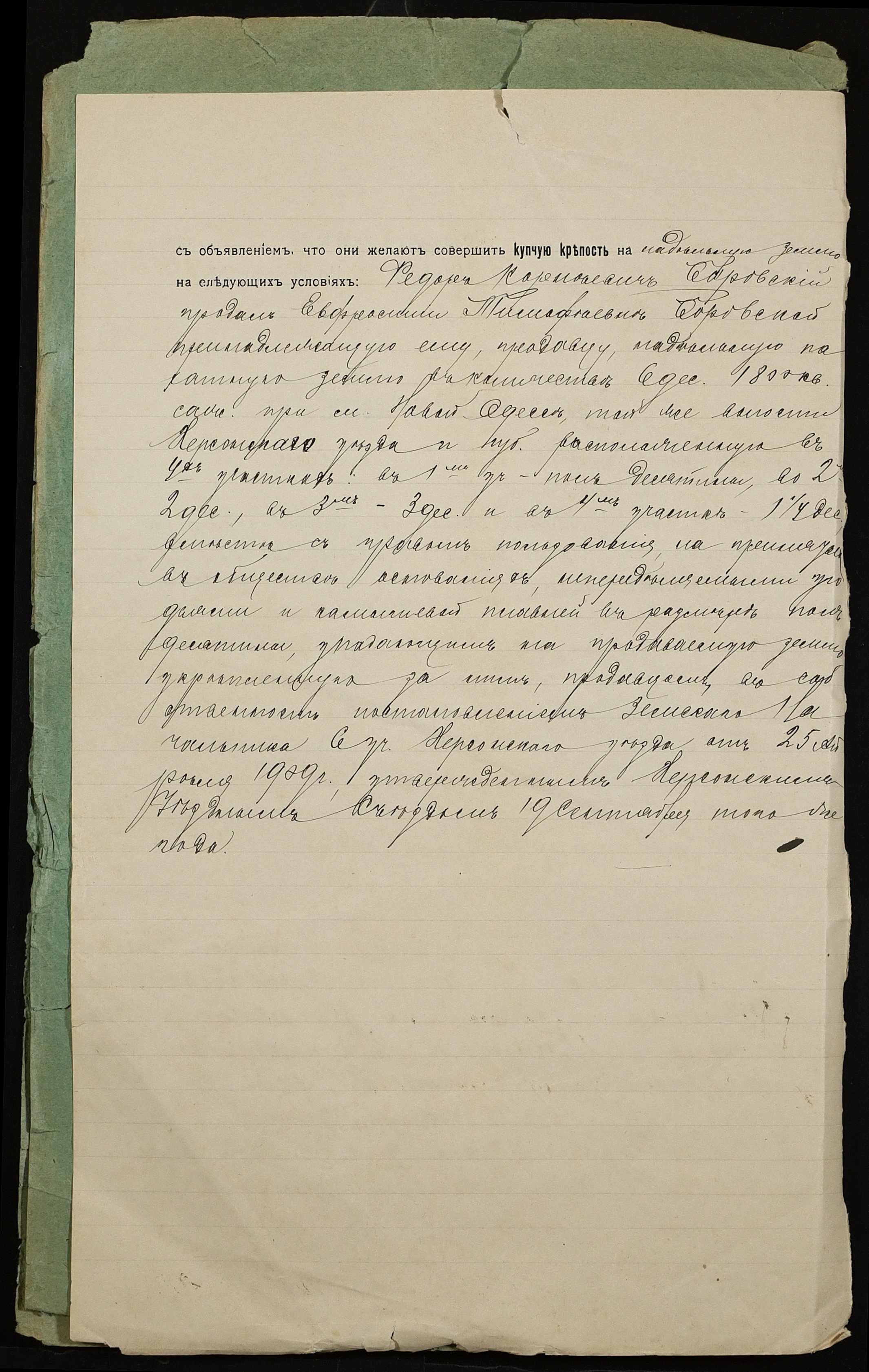 • • • • Справа № 1001 “Справа про вчинення купчої про продаж землі селянином Боровським Федором Корнійовичем (Боровским Федором Корнеевичем) на користь селянки Боровської Єфросинії Тимофіївни (Боровской Ефросинии Тимофеевны)”