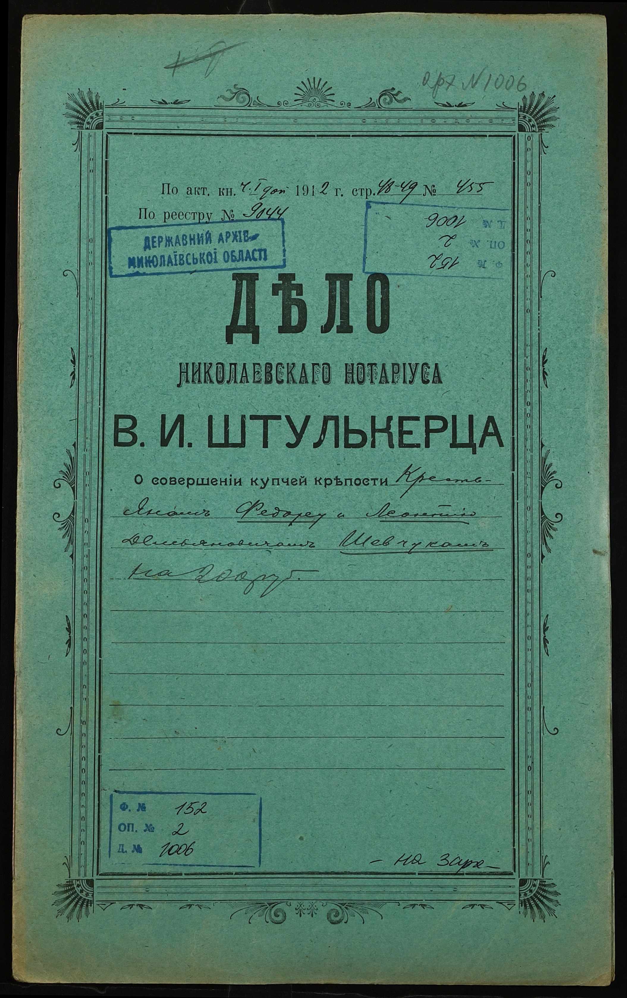 ◦ ◦ Фонд № 152 “Контора миколаївського нотаріуса Херсонського окружного суду Штулькерца Володимира Ісааковича”