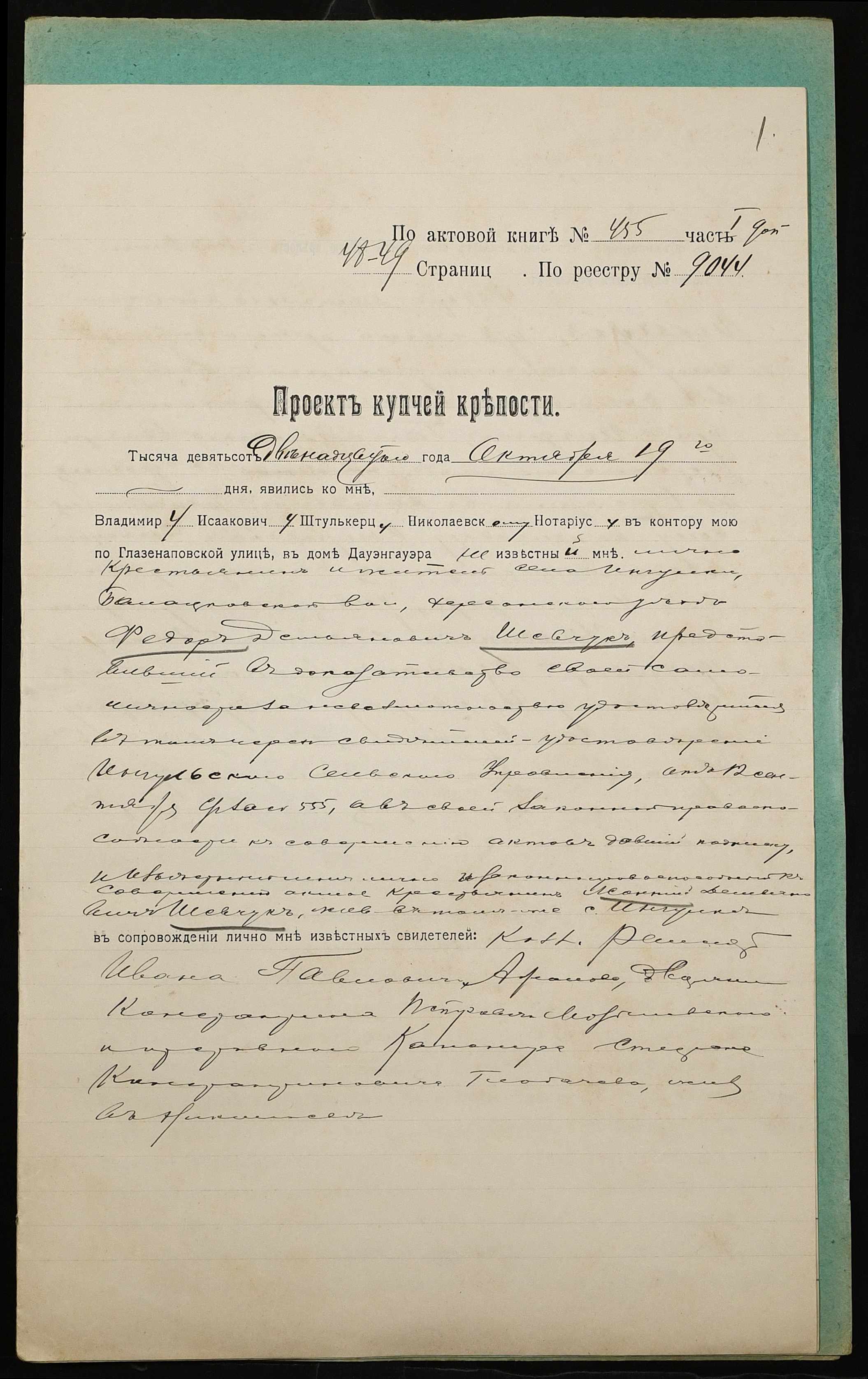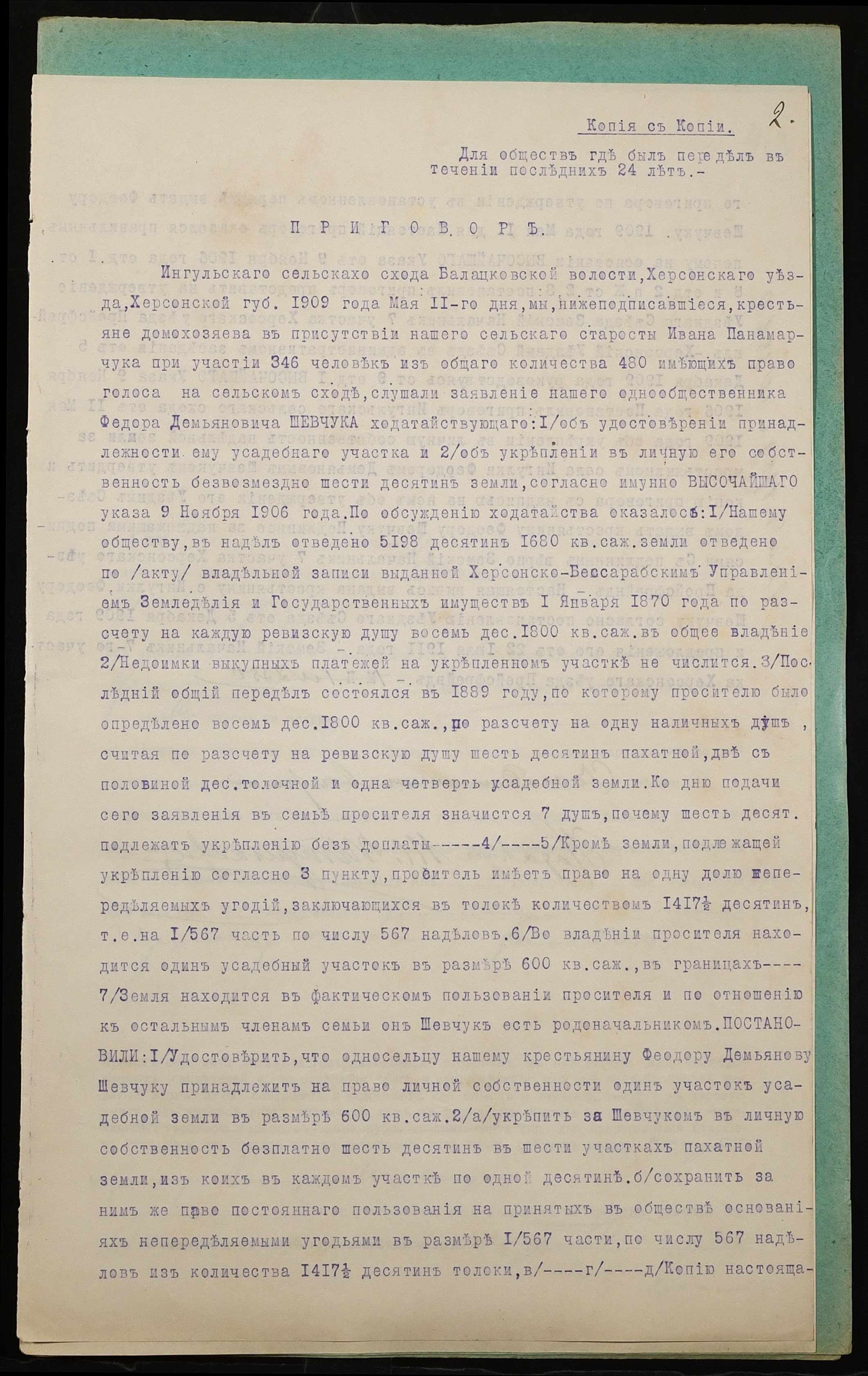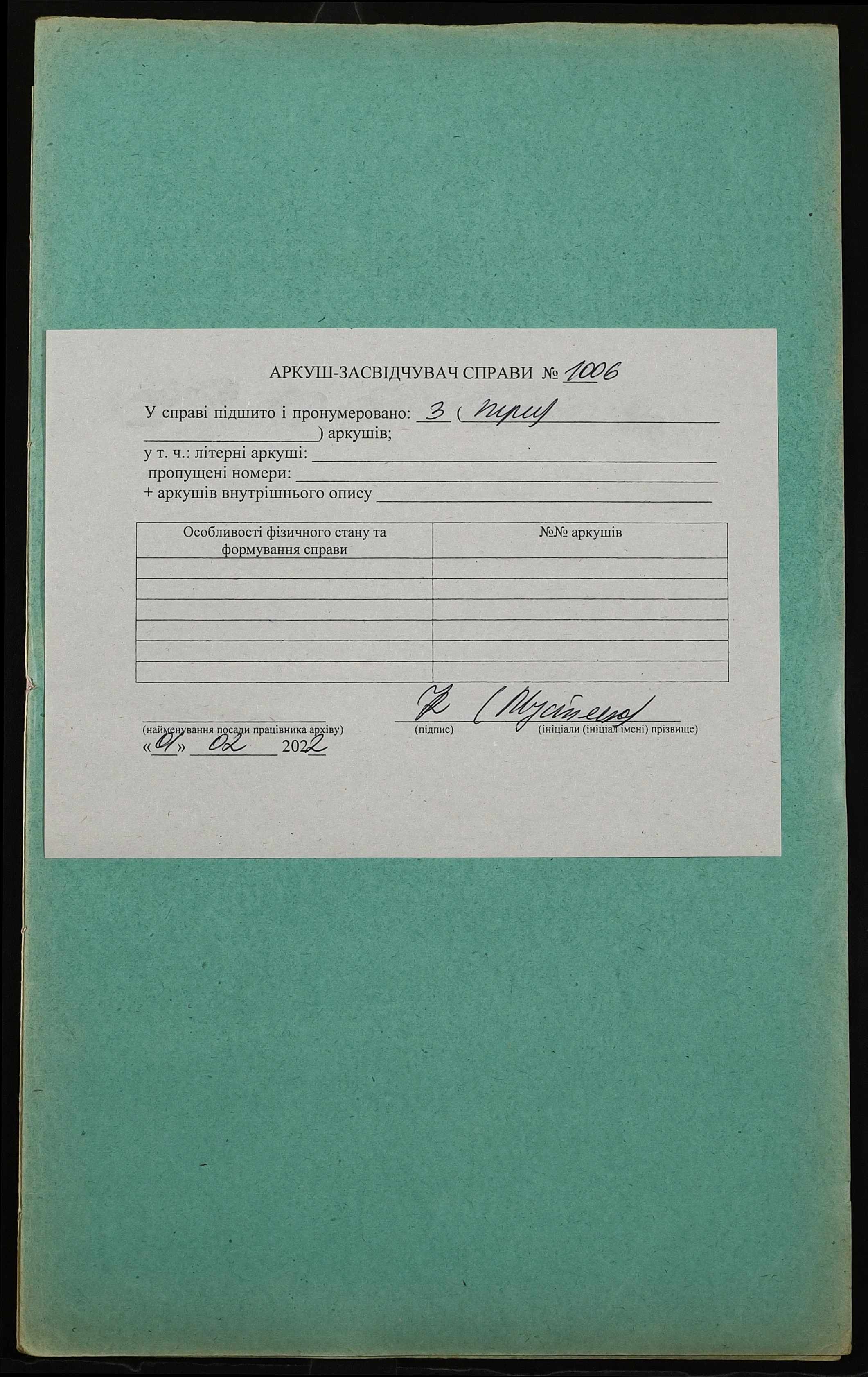• • • • Справа № 1006 “Справа про вчинення купчої про продаж землі селянином Шевчуком Федором Дем’яновичем (Шевчуком Федором Демьяновичем) на користь селянина Шевчука Леонтія Дем’яновича (Шевчука Леонтия Демьяновича)”