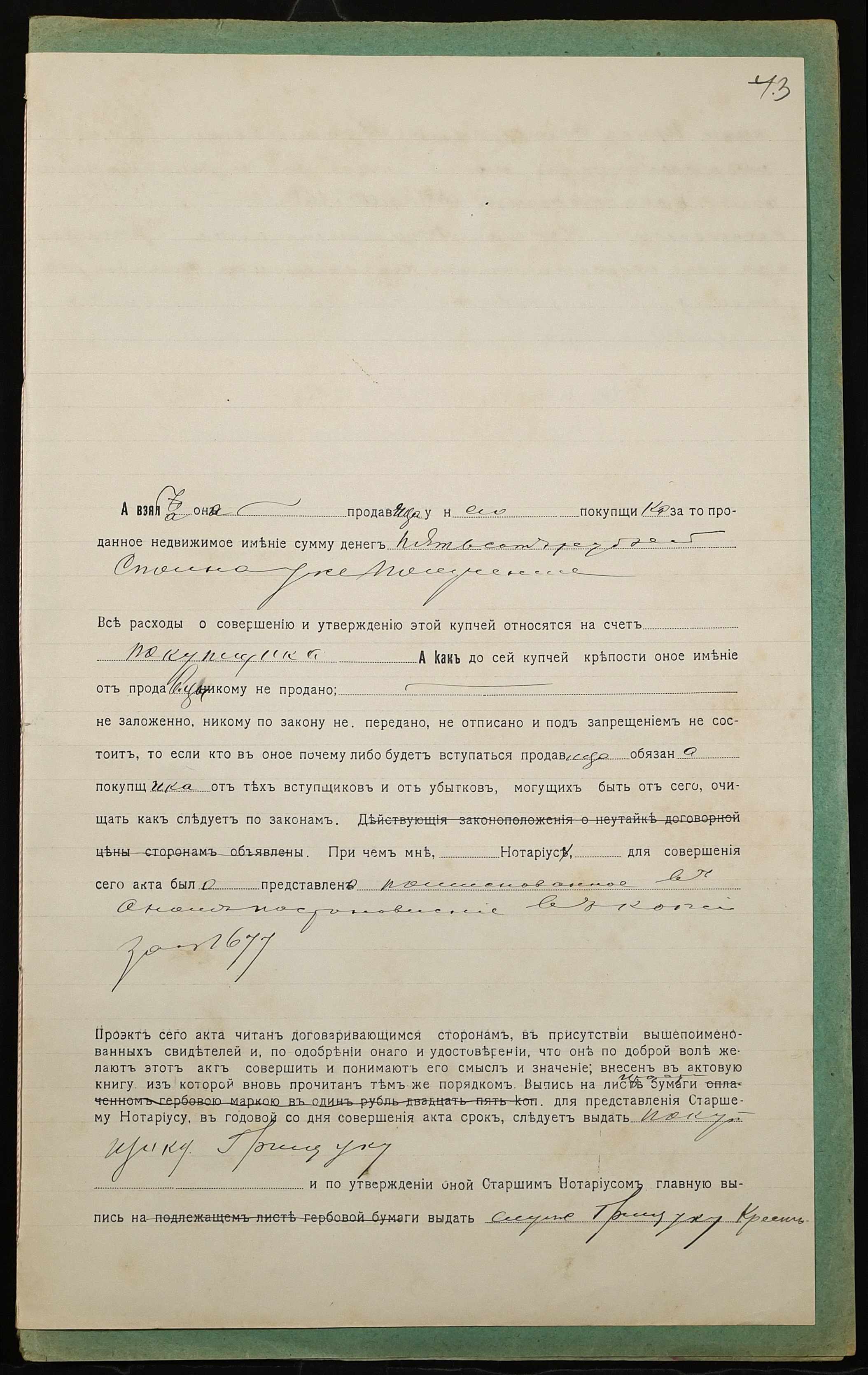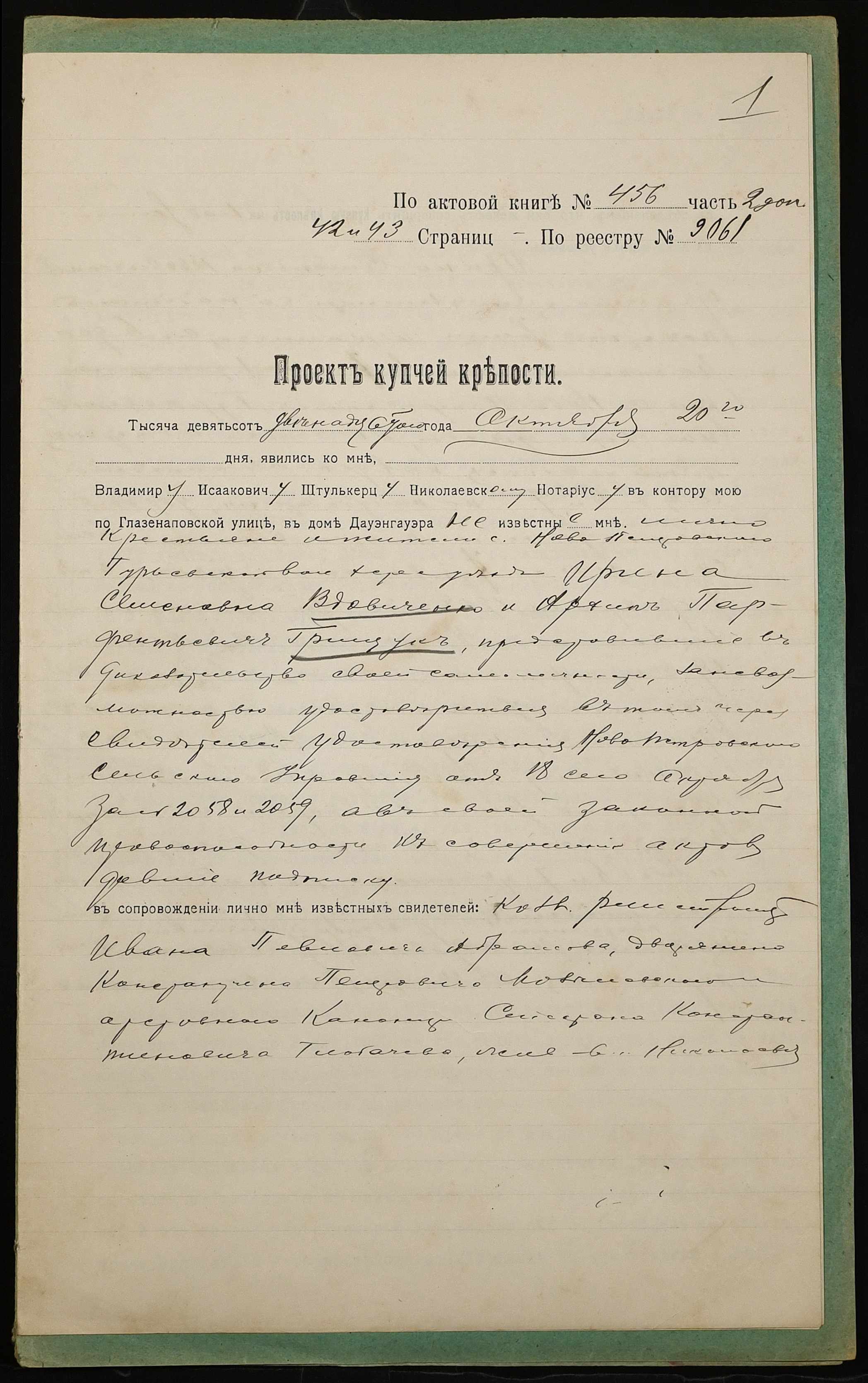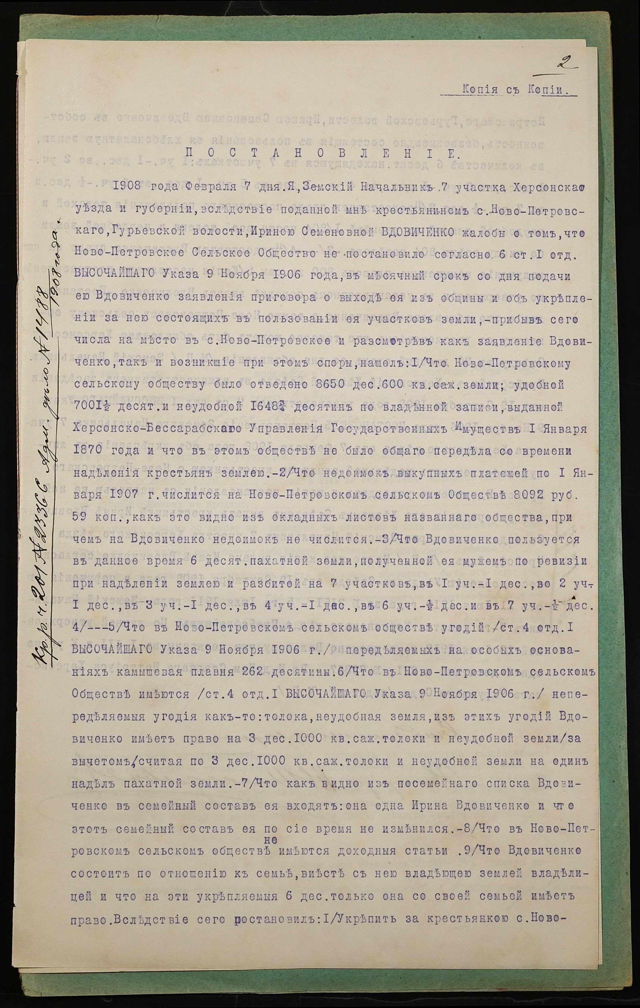 • • • • Справа № 1007 “Справа про вчинення купчої про продаж землі селянкою Вдовиченко Іриною Семенівною (Вдовиченко Ириной Семеновной) на користь селянина Грищука Архипа Парфентійовича (Грищука Архипа Парфентьевича)”
