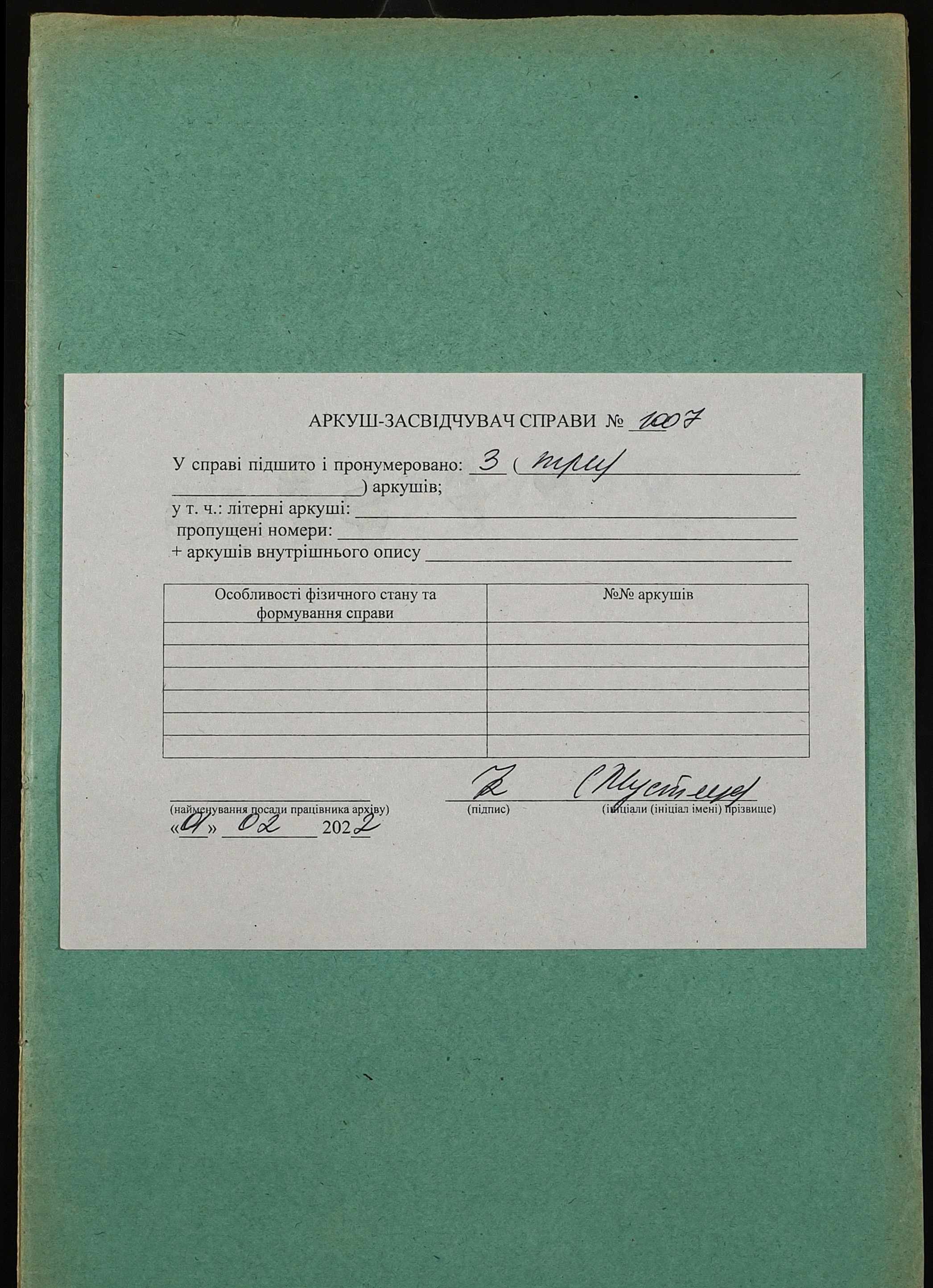 Фонд 152 / Опис 1 / Справа 1007