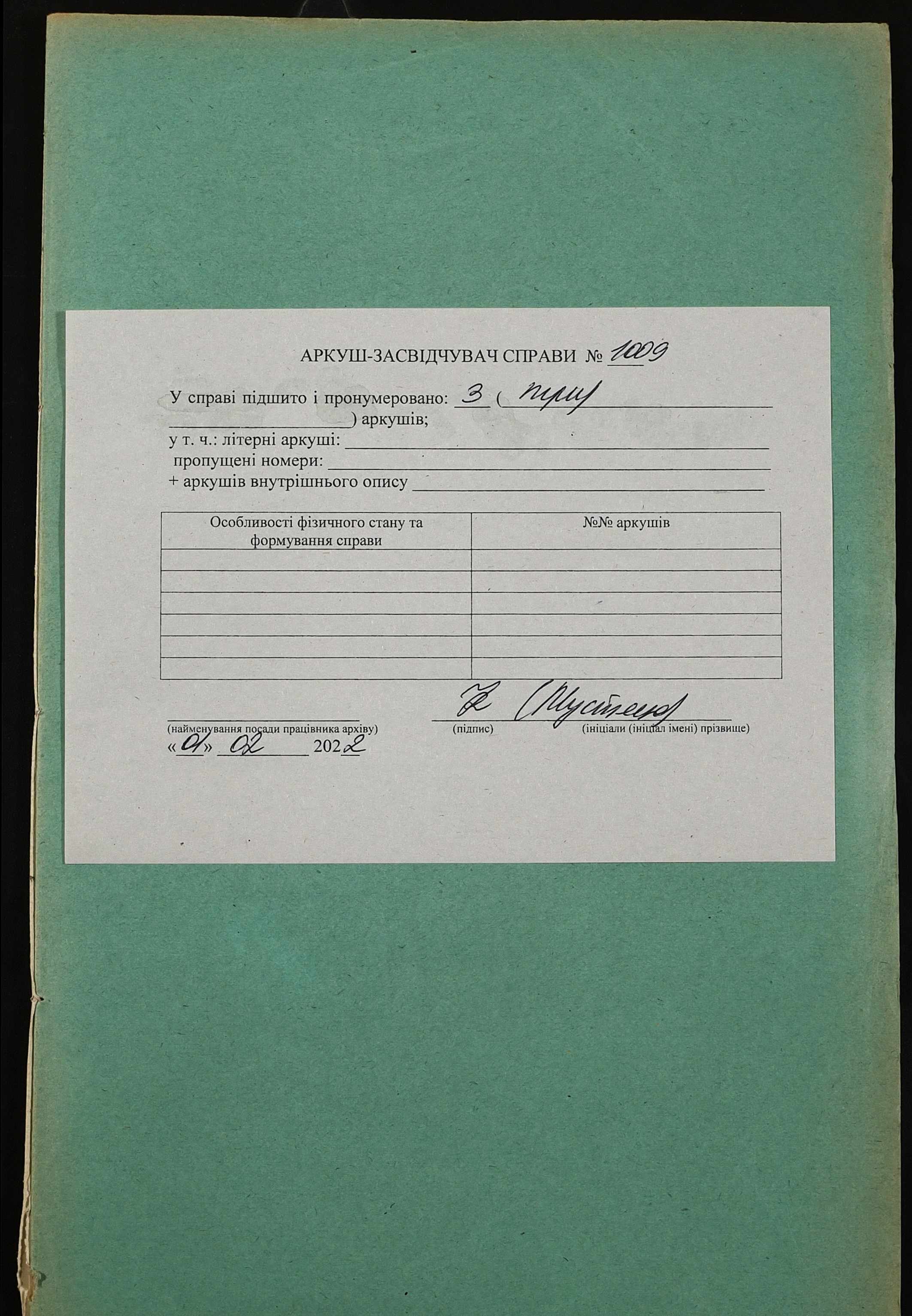 Фонд 152 / Опис 1 / Справа 1009