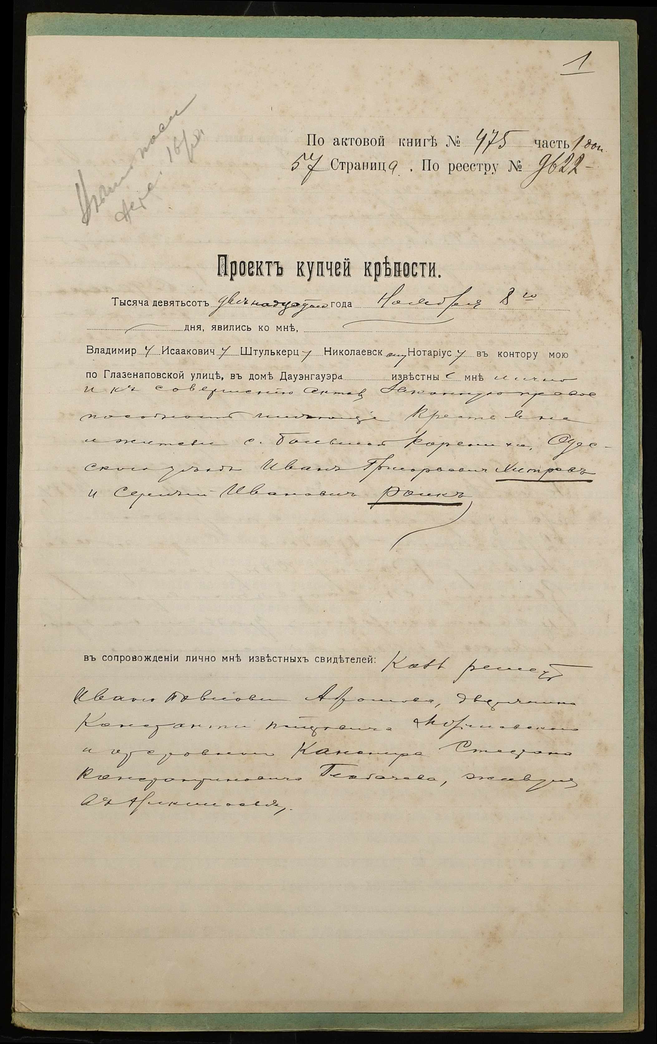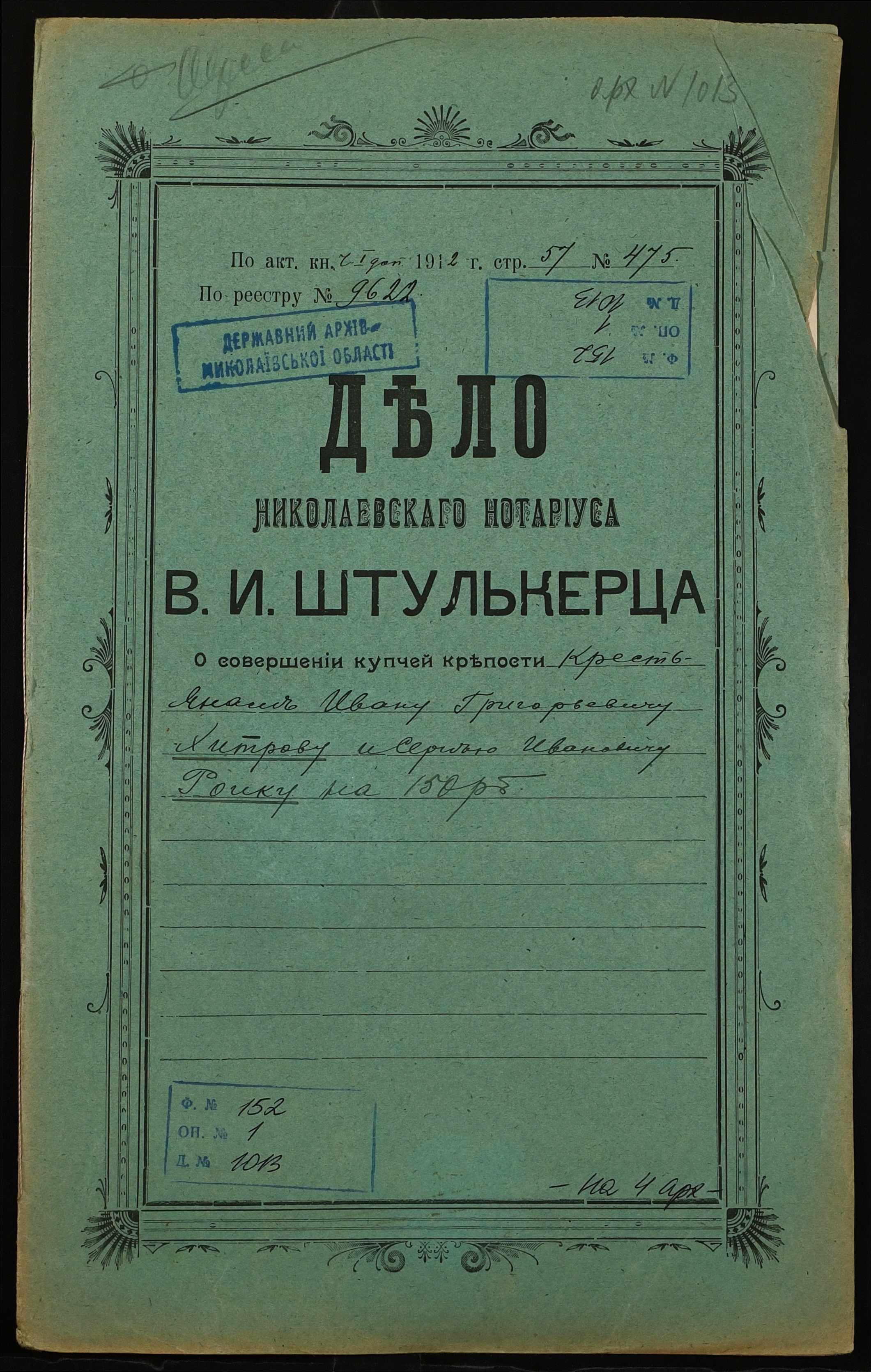 ◦ ◦ Фонд № 152 “Контора миколаївського нотаріуса Херсонського окружного суду Штулькерца Володимира Ісааковича”