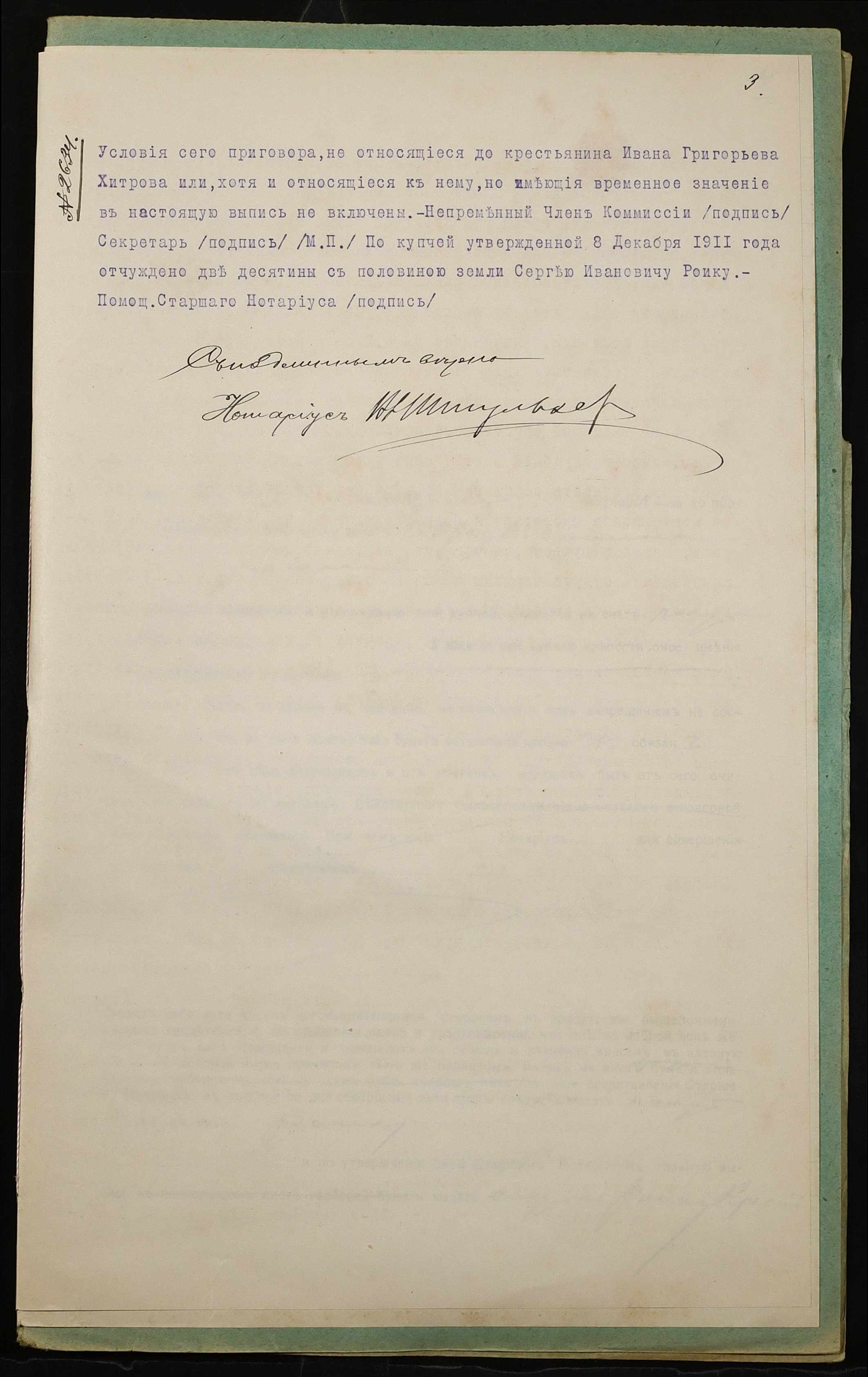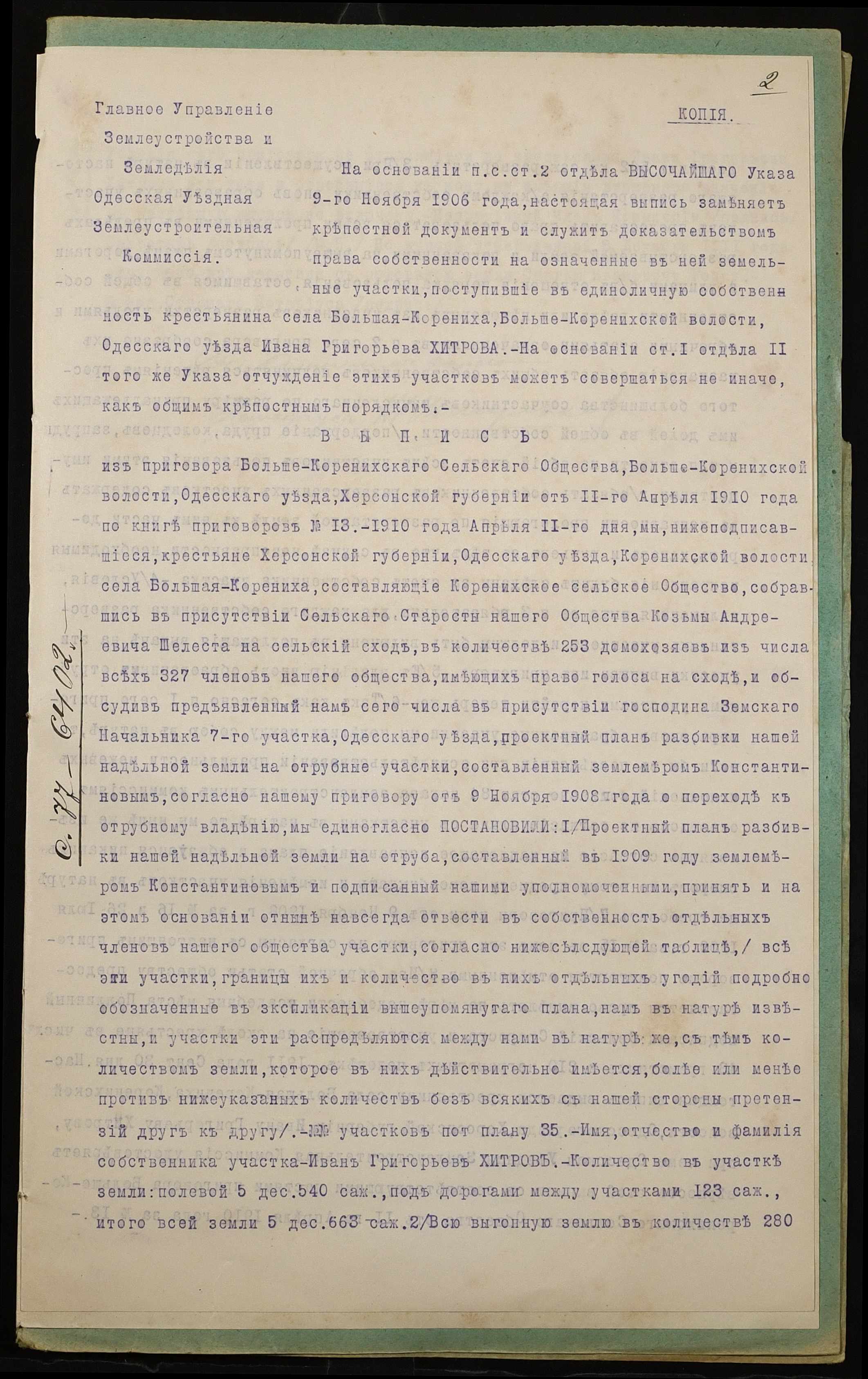 • • • • Справа № 1013 “Справа про вчинення купчої про продаж землі селянином Хитровим Іваном Григоровичем (Хитровым Иваном Григорьевичем) на користь селянина Роїка Сергія Івановича (Роика Сергея Ивановича)”