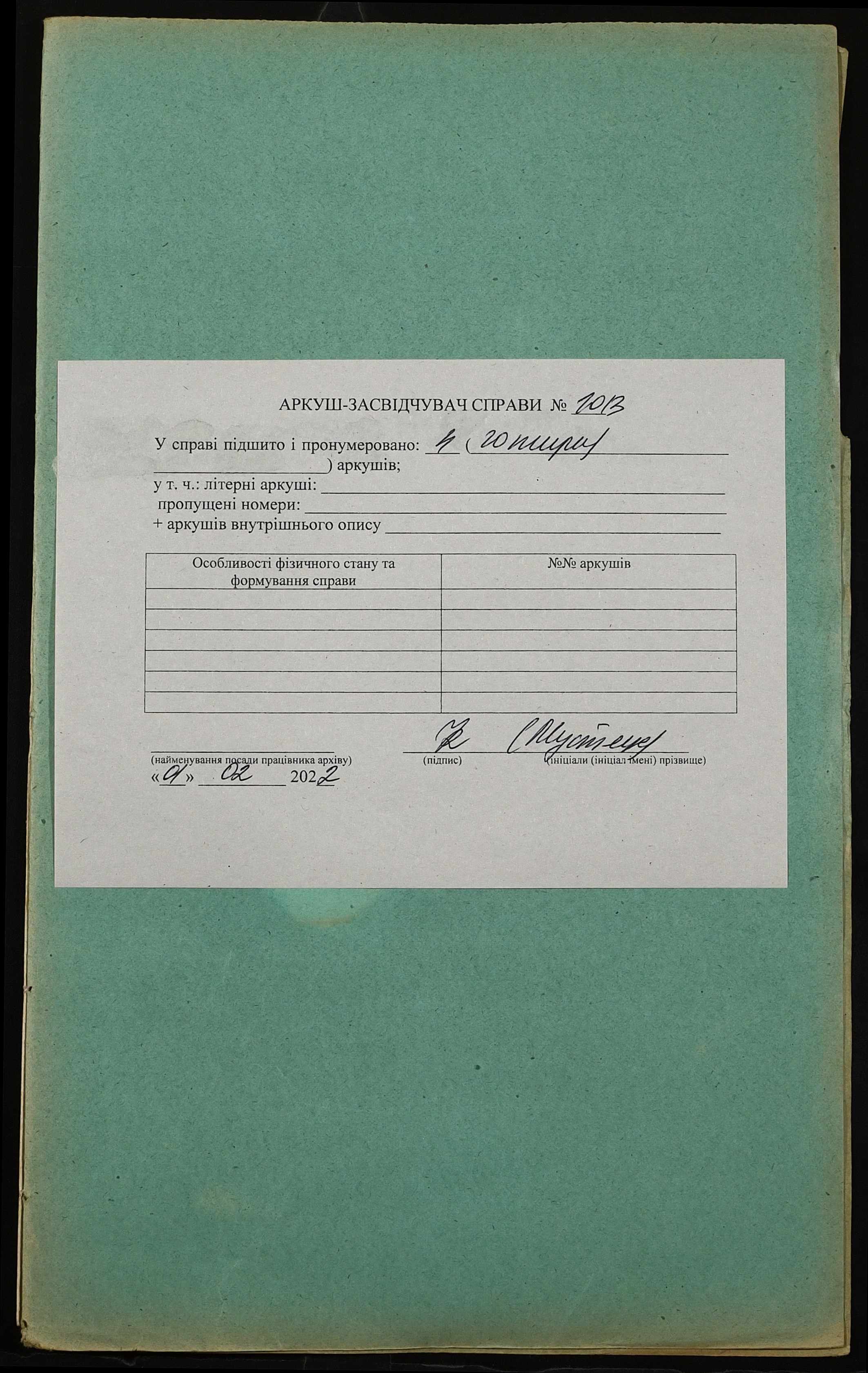 Фонд 152 / Опис 1 / Справа 1013