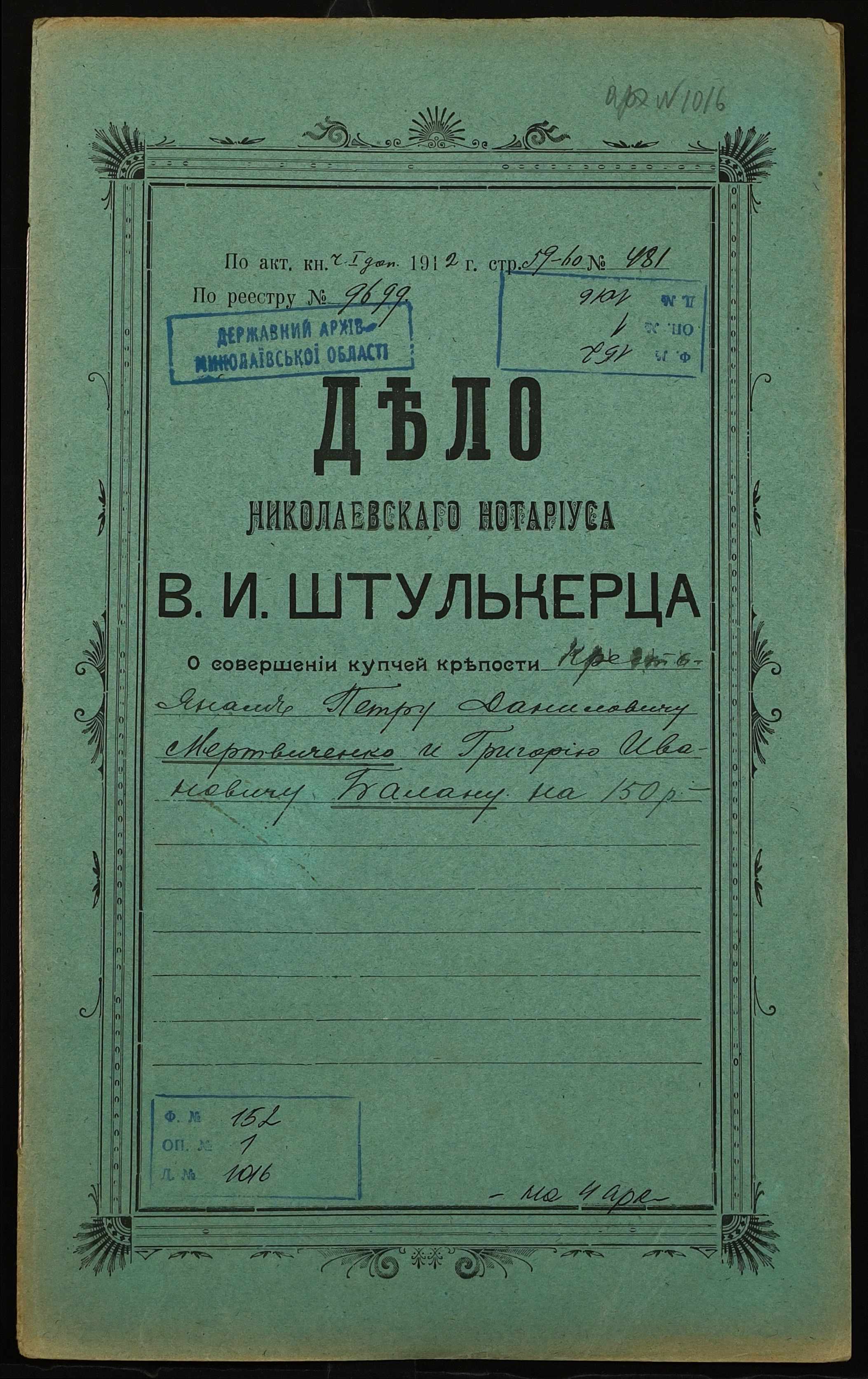 ◦ ◦ Фонд № 152 “Контора миколаївського нотаріуса Херсонського окружного суду Штулькерца Володимира Ісааковича”