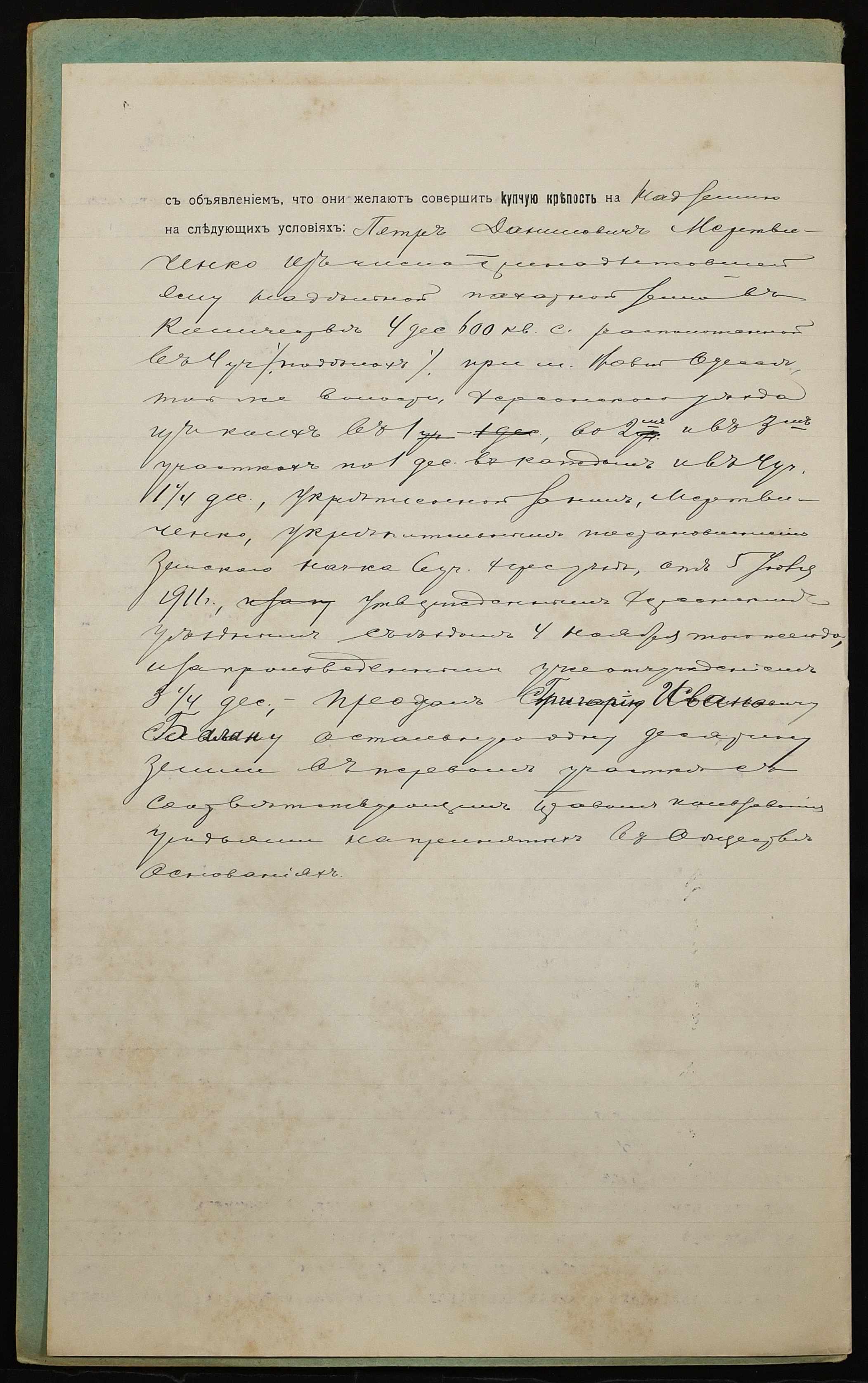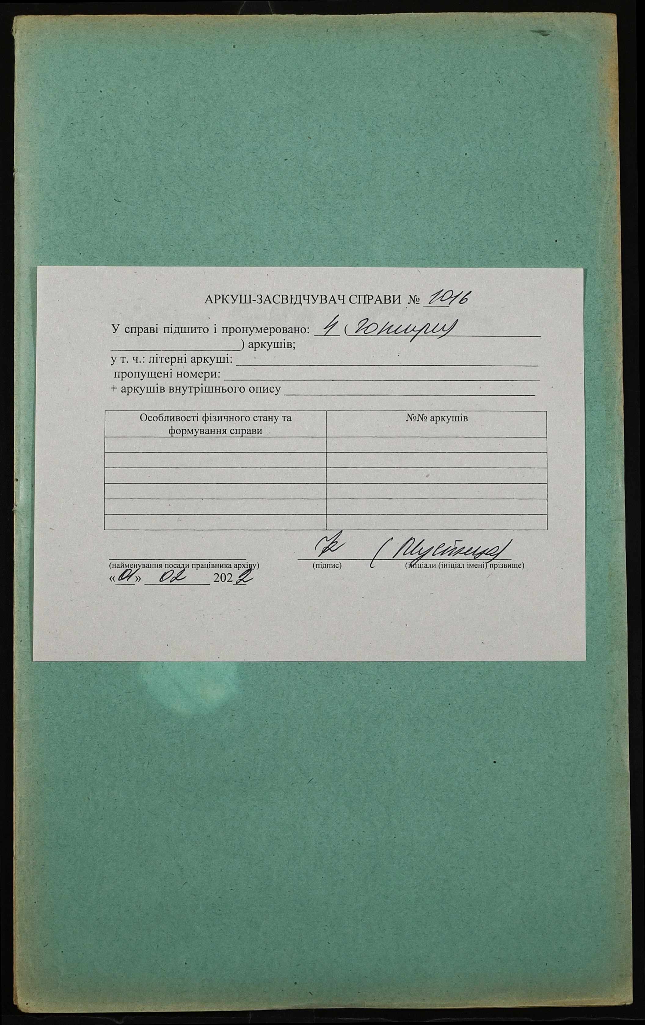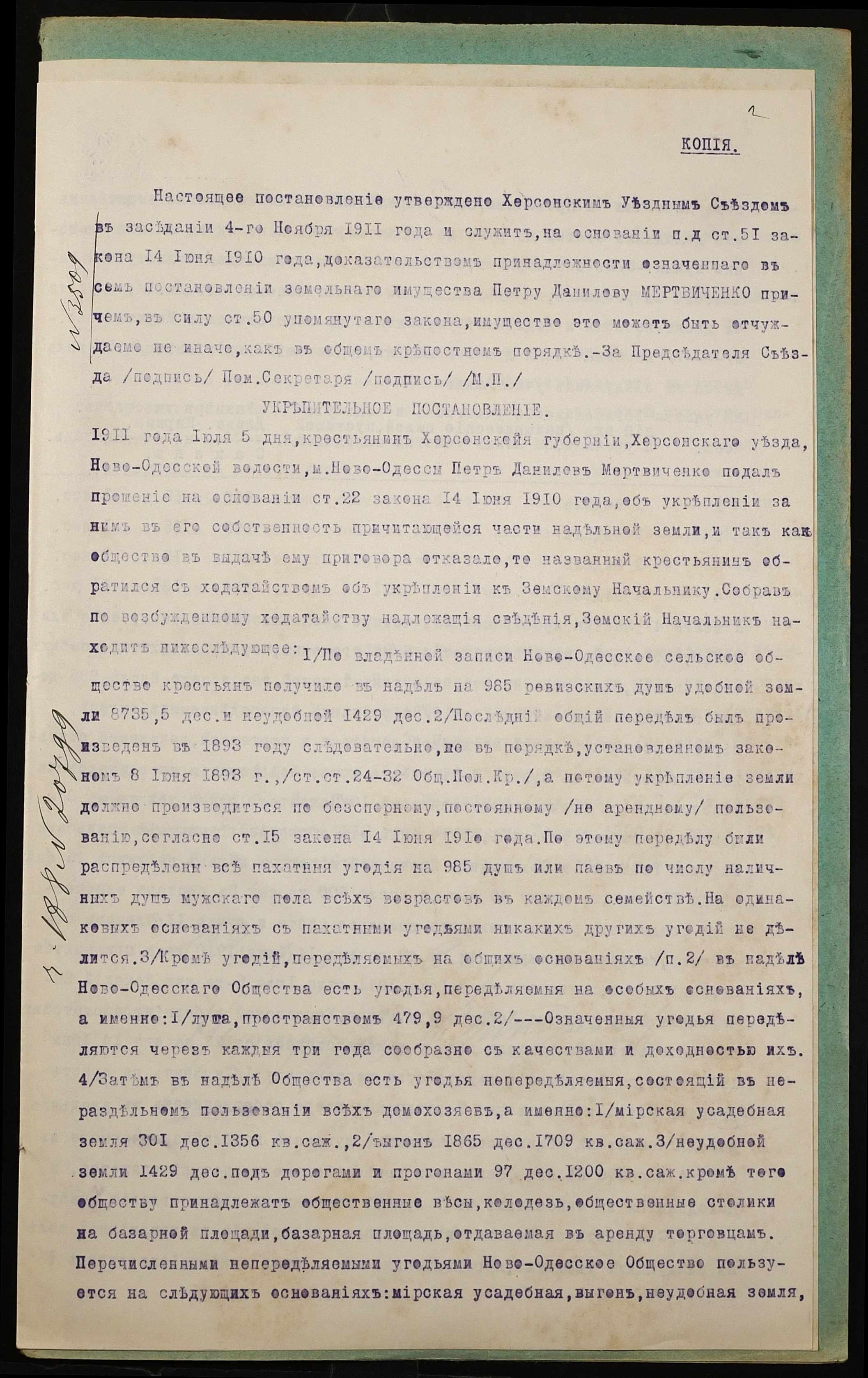 • • • • Справа № 1016 “Справа про вчинення купчої про продаж землі селянином Мертвиченком Петром Даниловичем (Мертвиченко Петром Даниловичем) на користь селянина Балана Григорія Івановича (Балана Григория Ивановича)”
