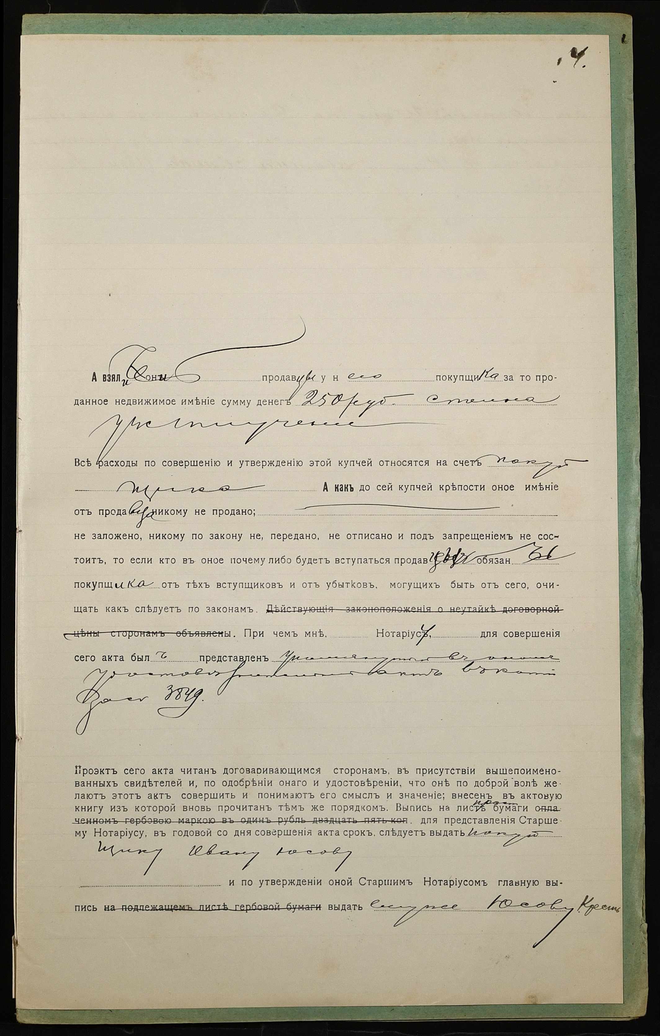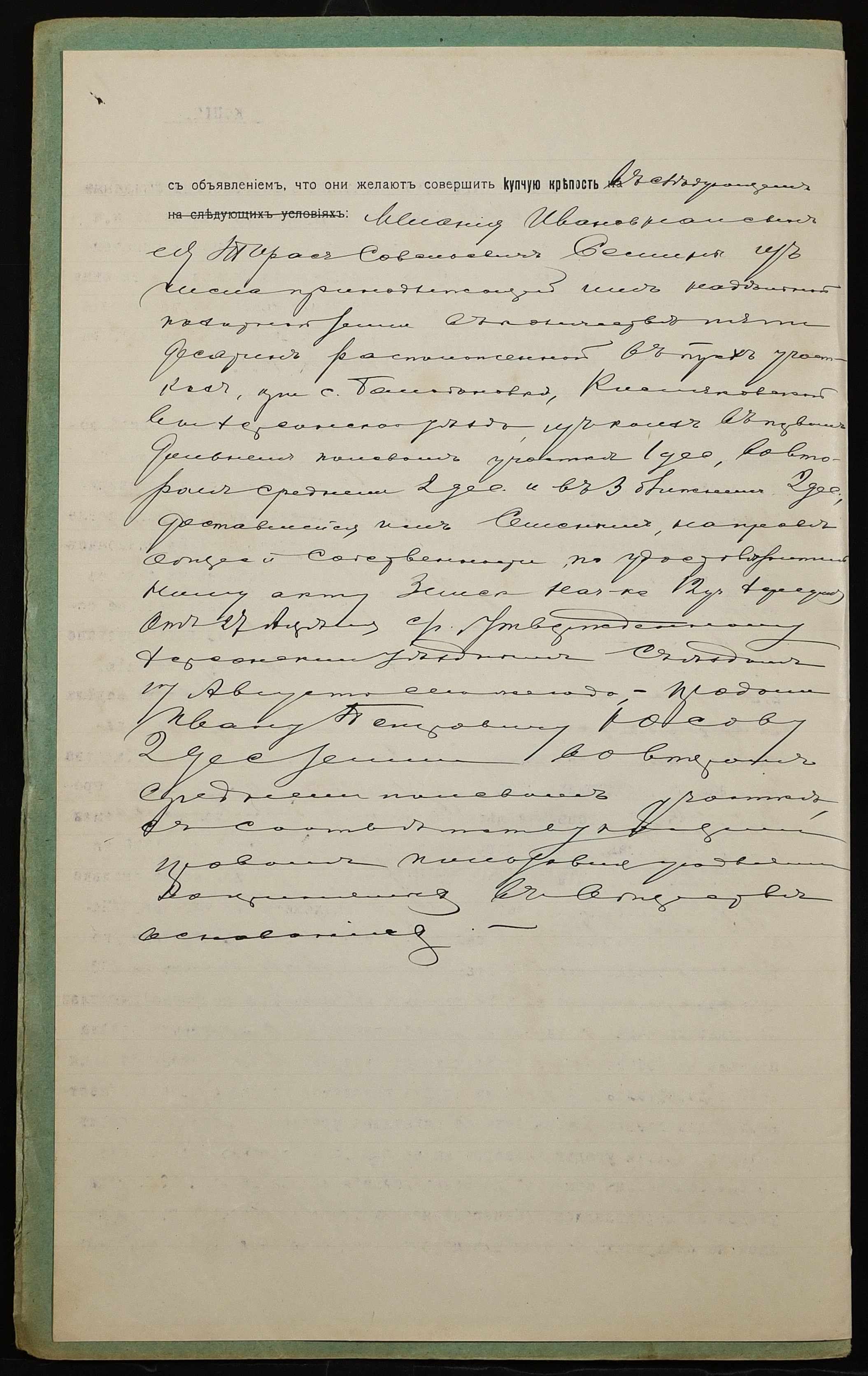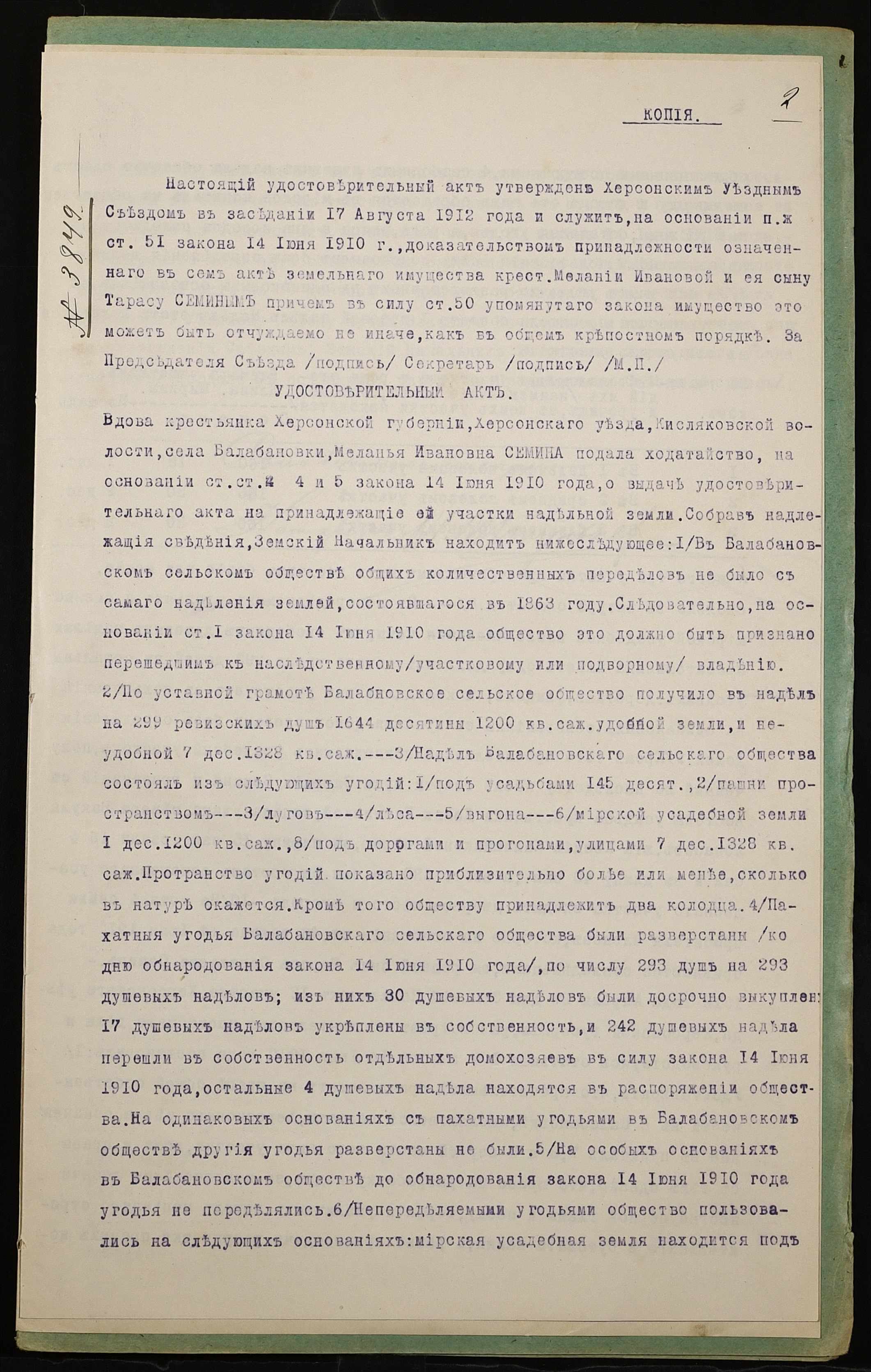 • • • • Справа № 1023 “Справа про вчинення купчої про продаж землі селянкою Сьоміною Меланією Іванівною (Семиной Меланией Ивановной) і її сином Тарасом Савелійовичем (Тарасом Савельевичем) на користь селянина Юсова Івана Петровича (Юсова Ивана Петровича)”