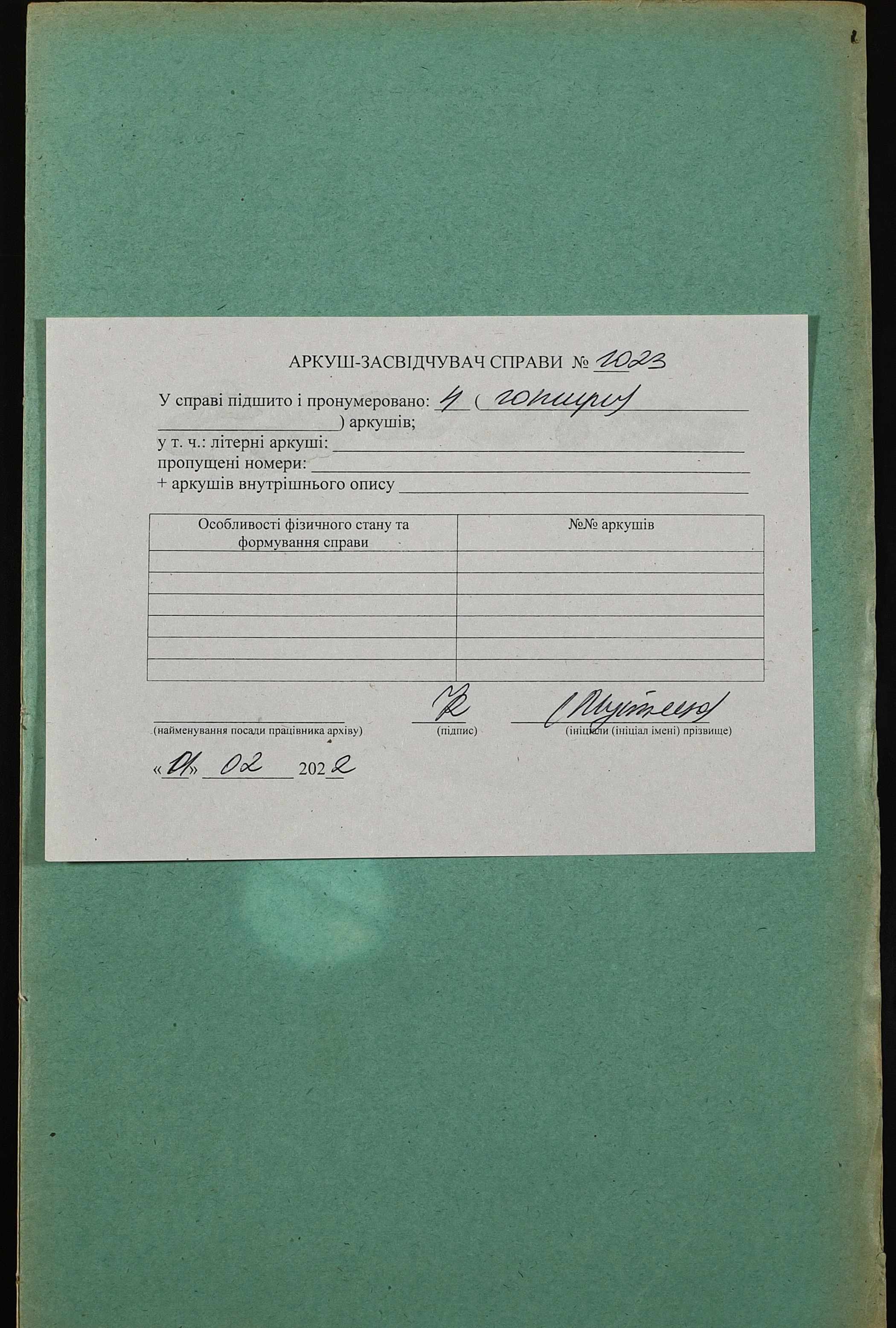 Фонд 152 / Опис 1 / Справа 1023