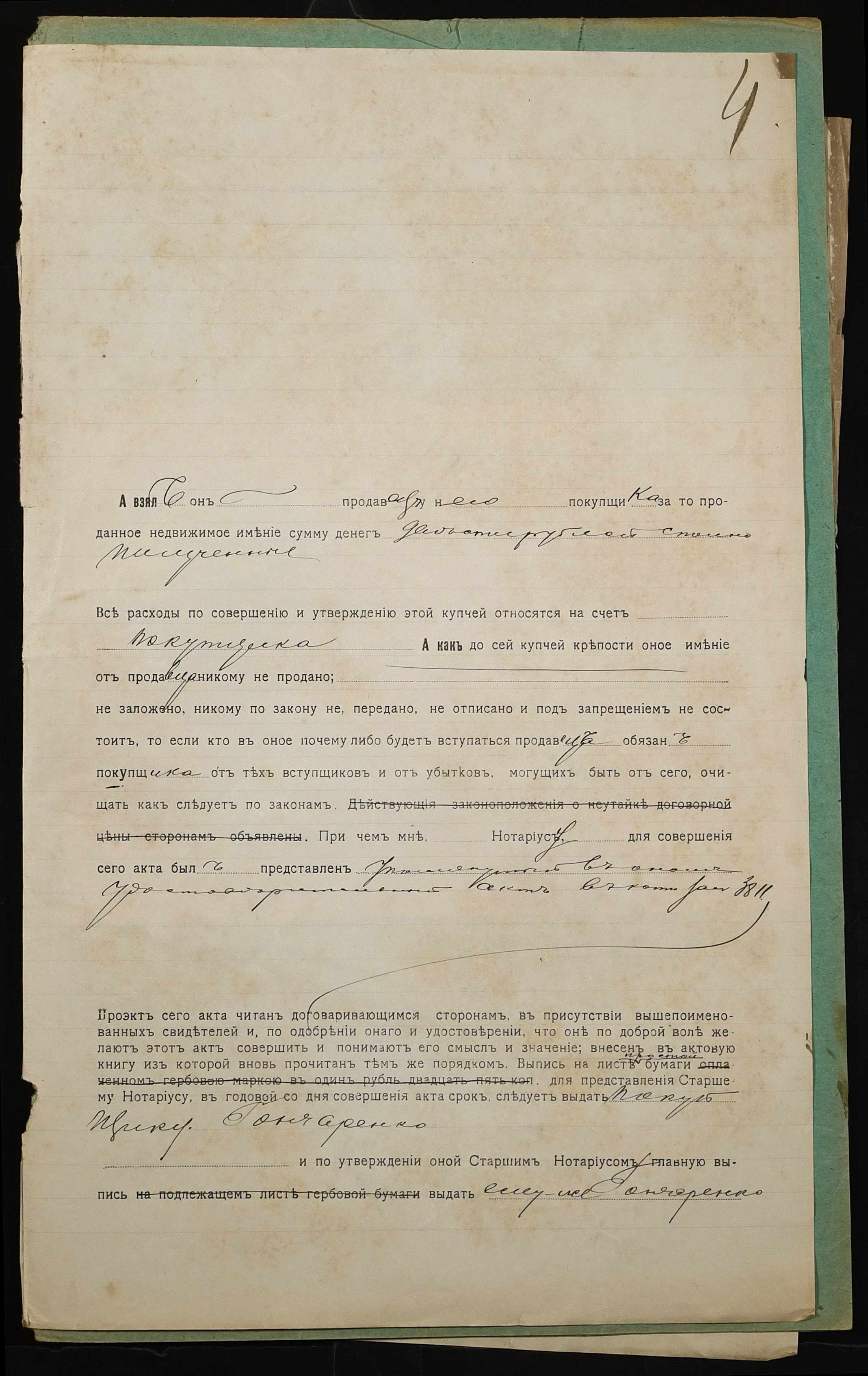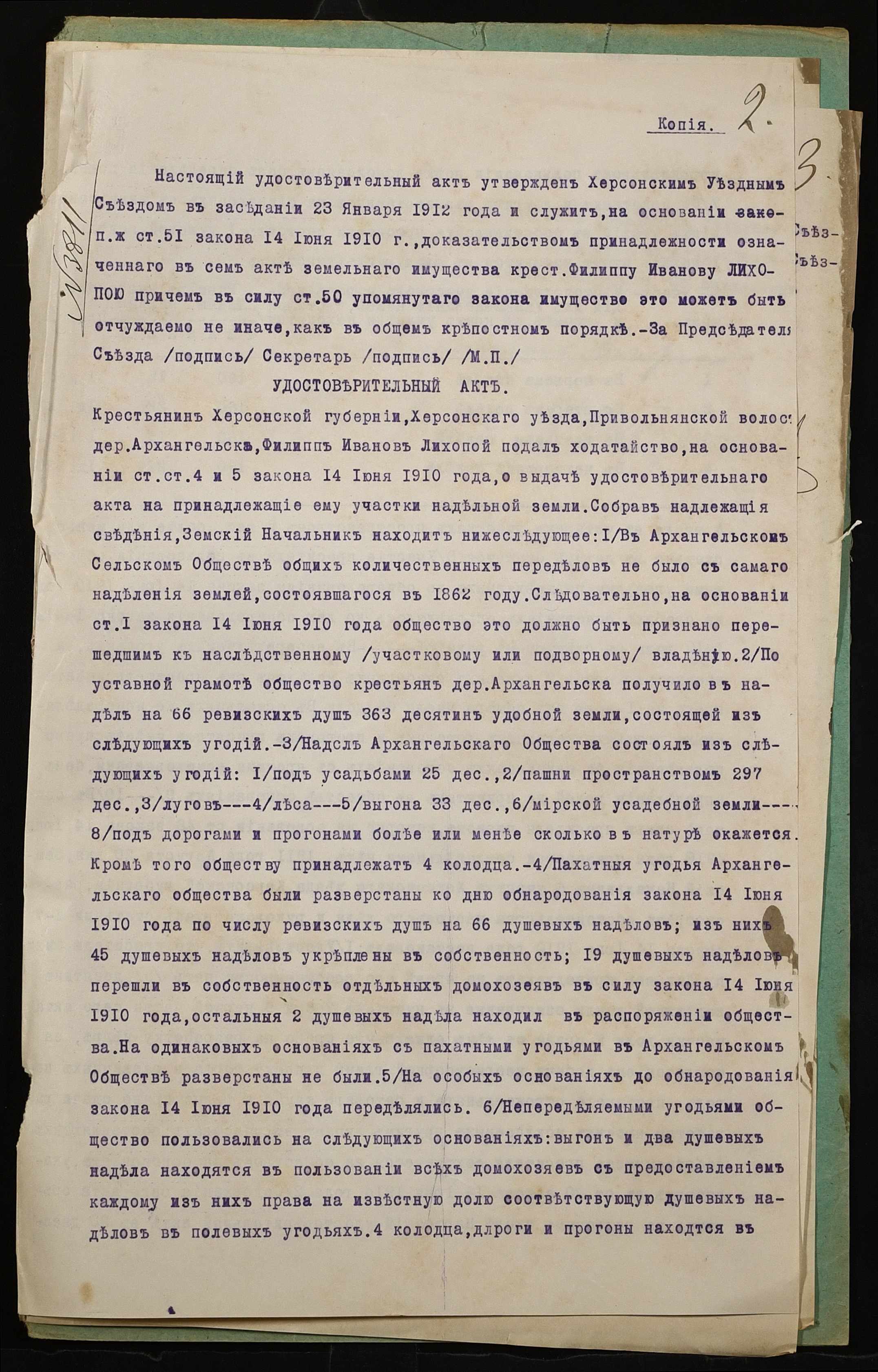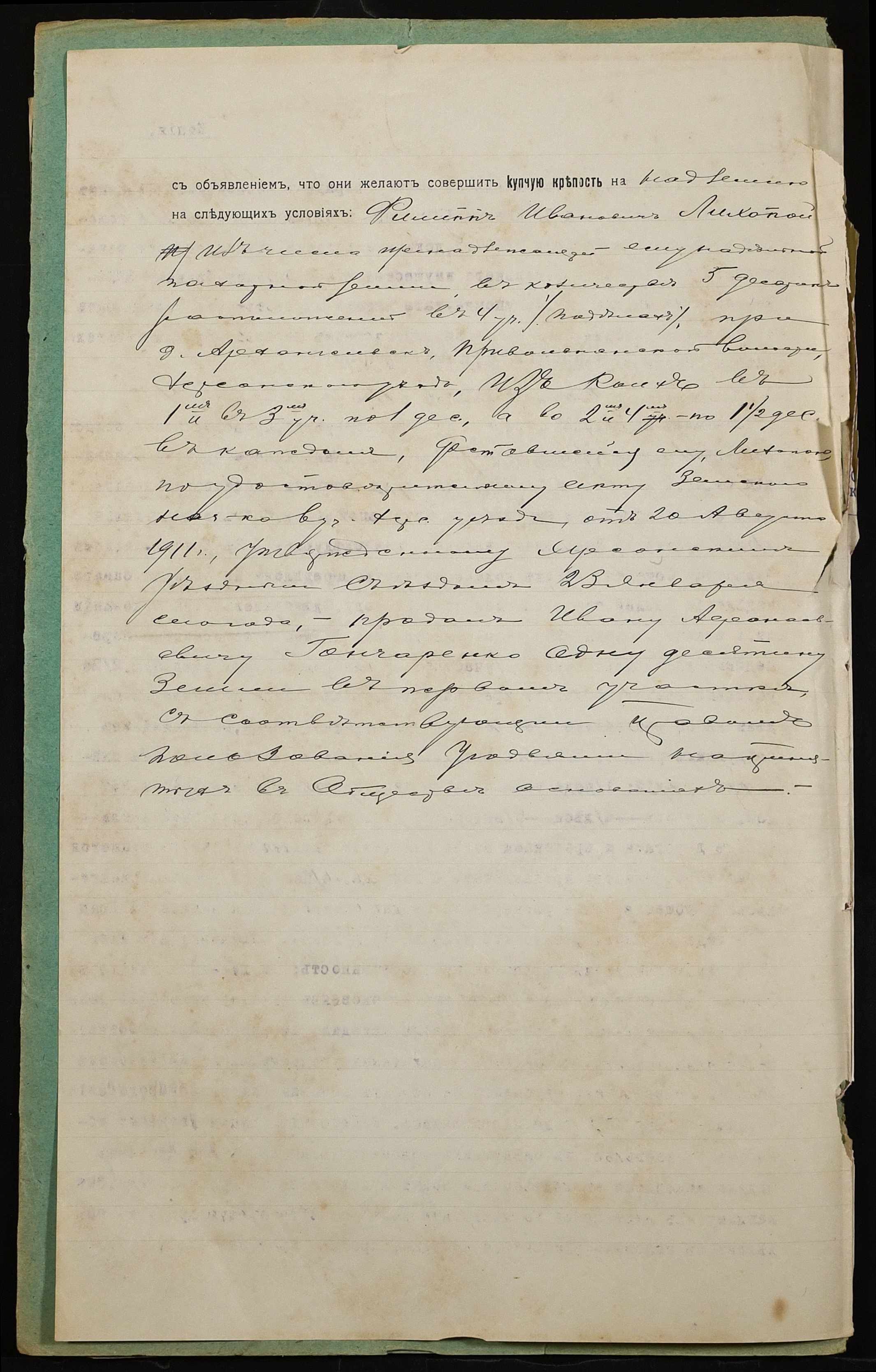 • • • • Справа № 1028 “Справа про вчинення купчої про продаж землі селянином Лихопоєм Пилипом Івановичем (Лихопоем Филиппом Ивановичем) на користь селянина Гончаренка Івана Опанасовича (Гончаренко Ивана Афанасовича)”