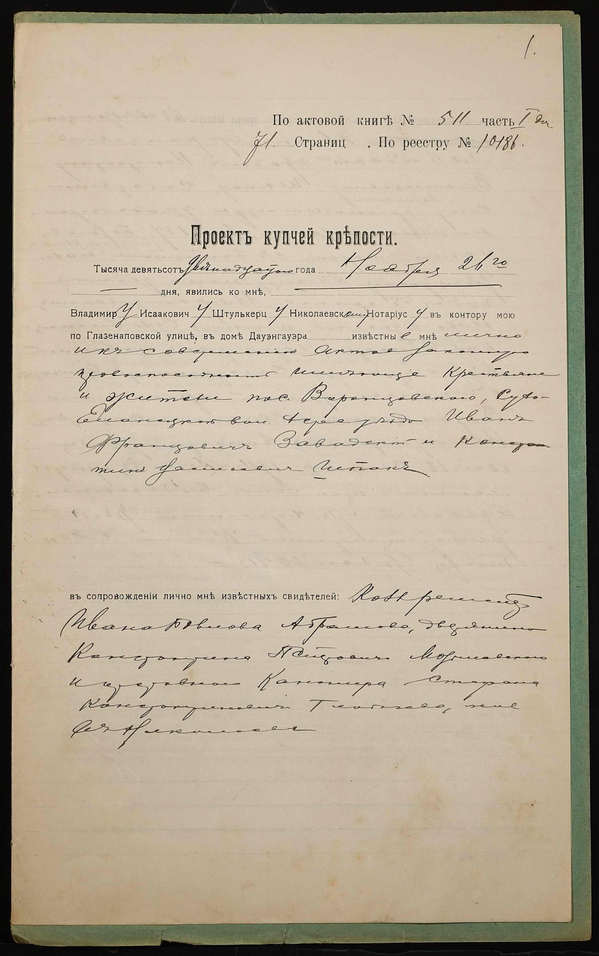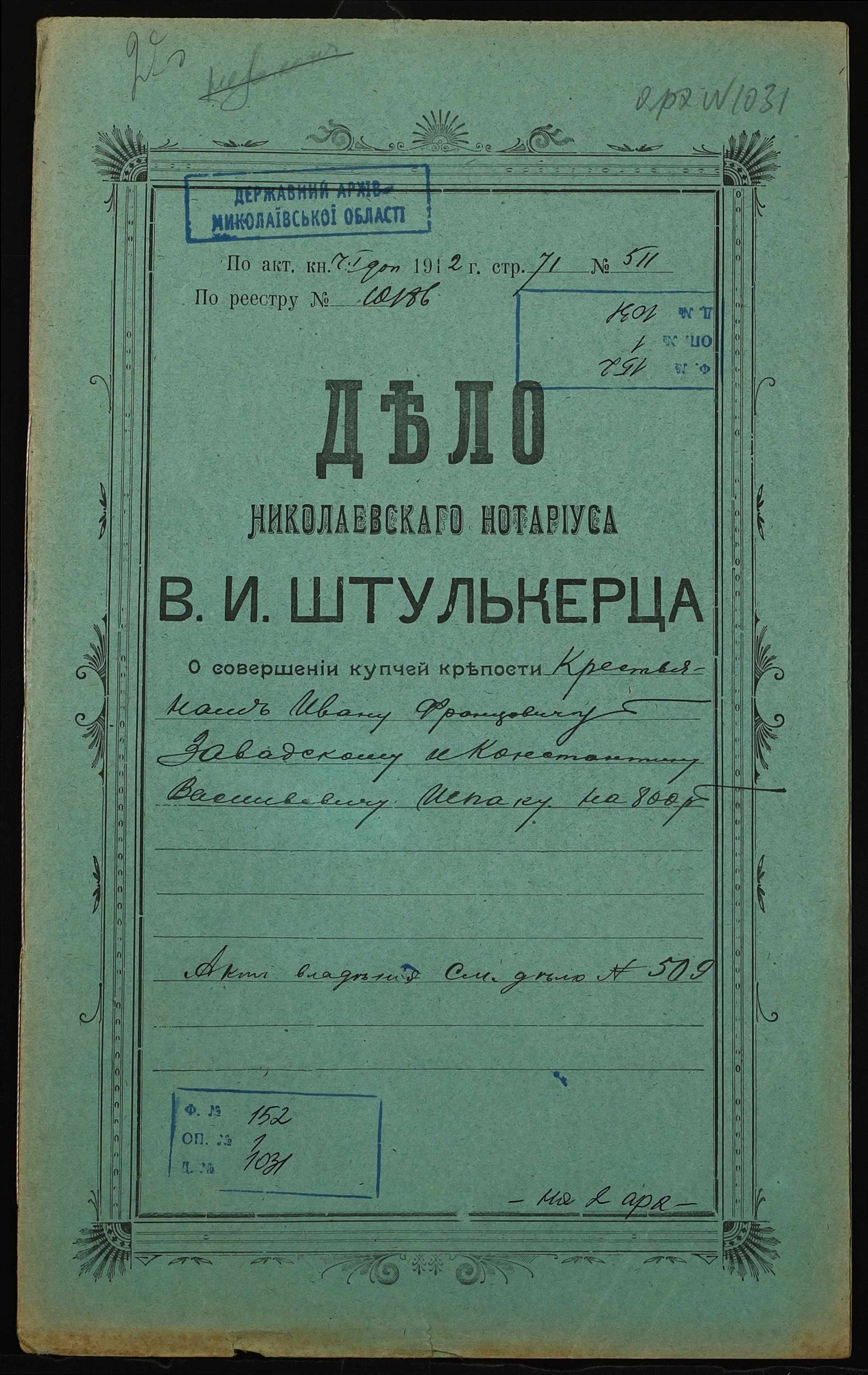 ◦ ◦ Фонд № 152 “Контора миколаївського нотаріуса Херсонського окружного суду Штулькерца Володимира Ісааковича”