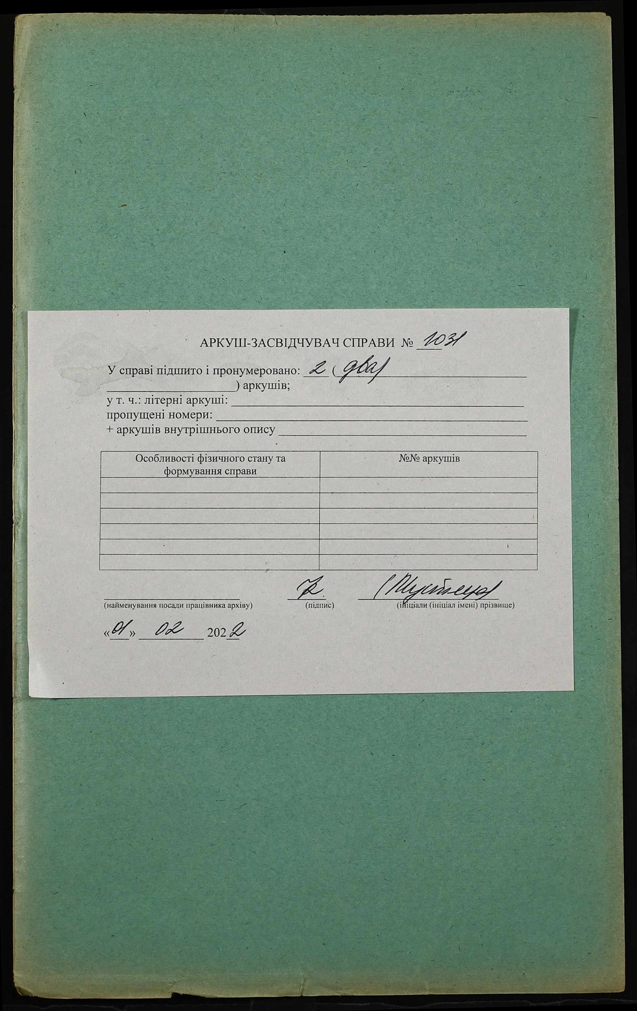 • • • • Справа № 1031 “Справа про вчинення купчої про продаж землі селянином Завадським Іваном Францовичем (Завадским Иваном Францевичем) на користь селянина Шпака Костянтина Васильовича (Шпака Константина Васильевича)”