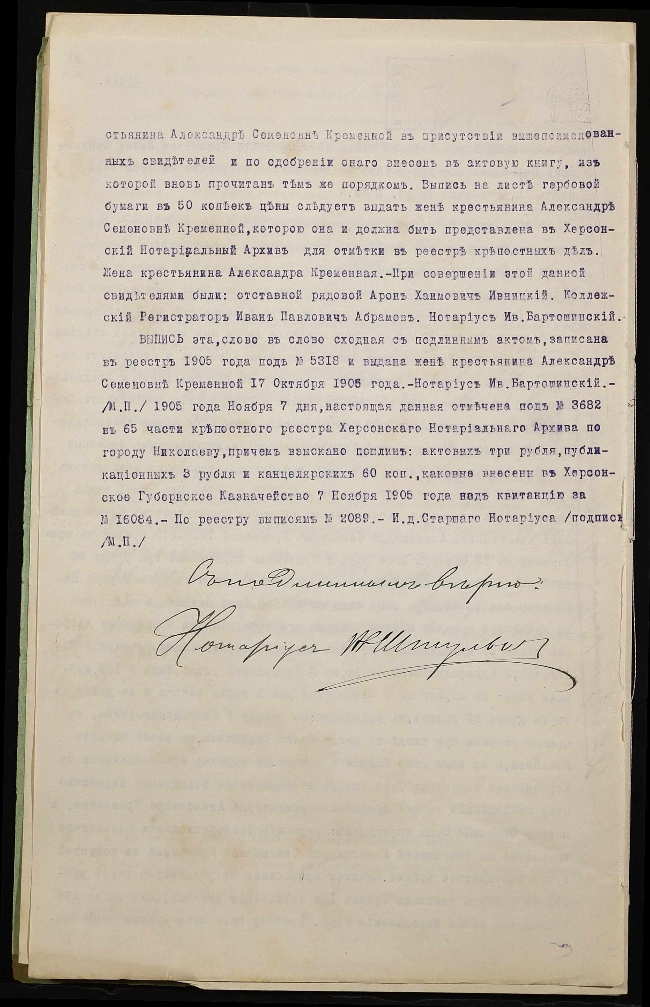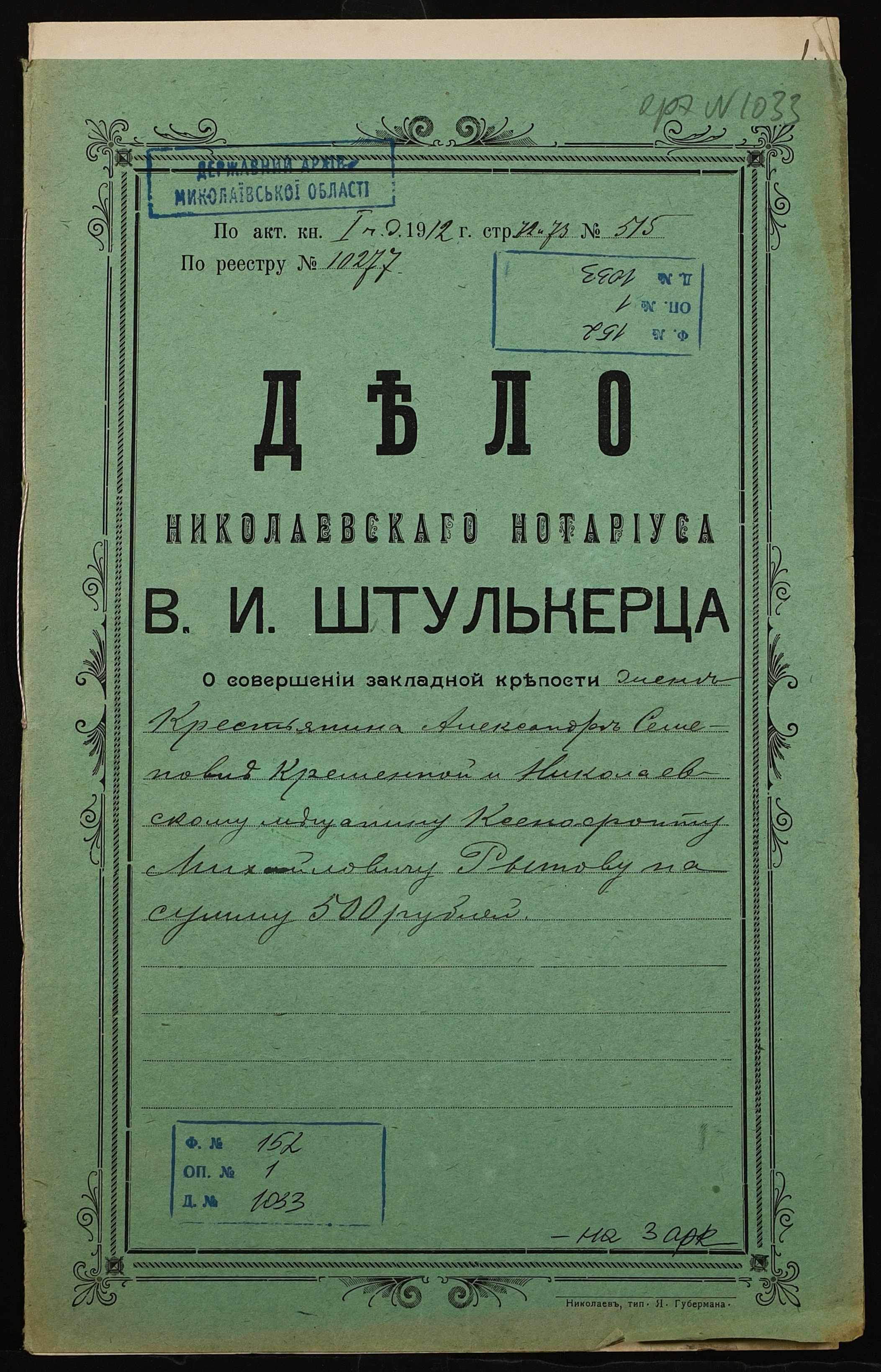 ◦ ◦ Фонд № 152 “Контора миколаївського нотаріуса Херсонського окружного суду Штулькерца Володимира Ісааковича”