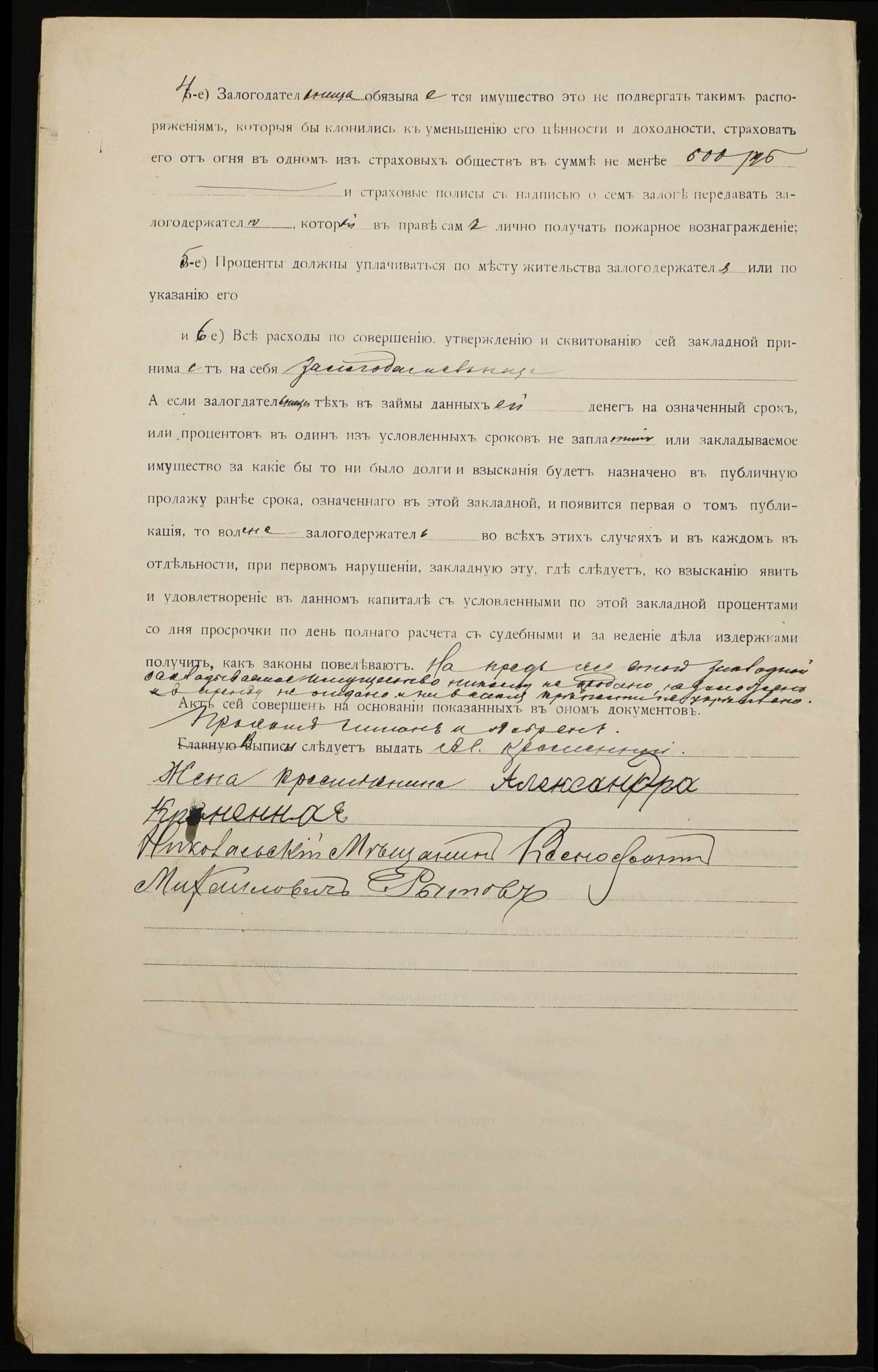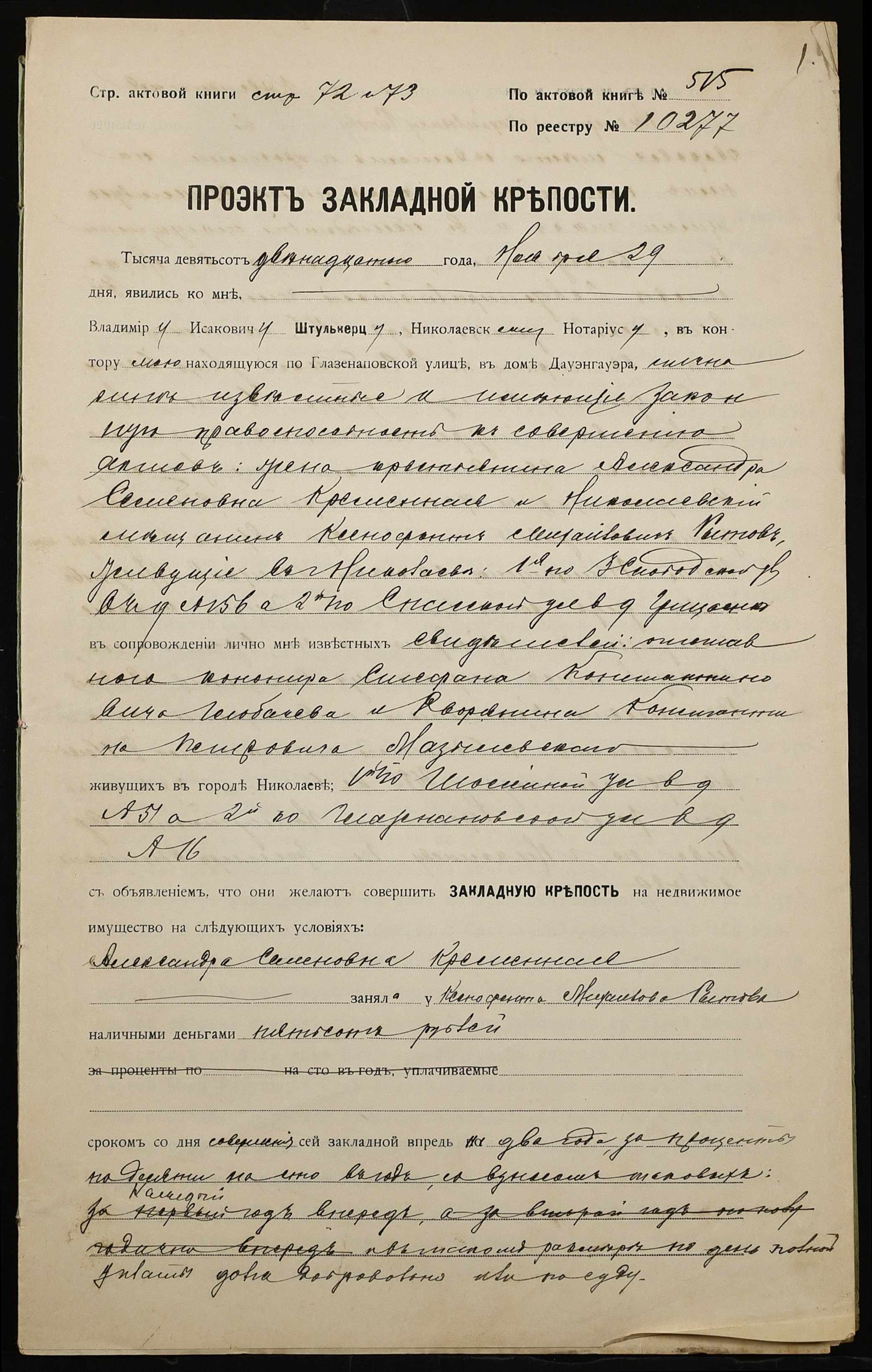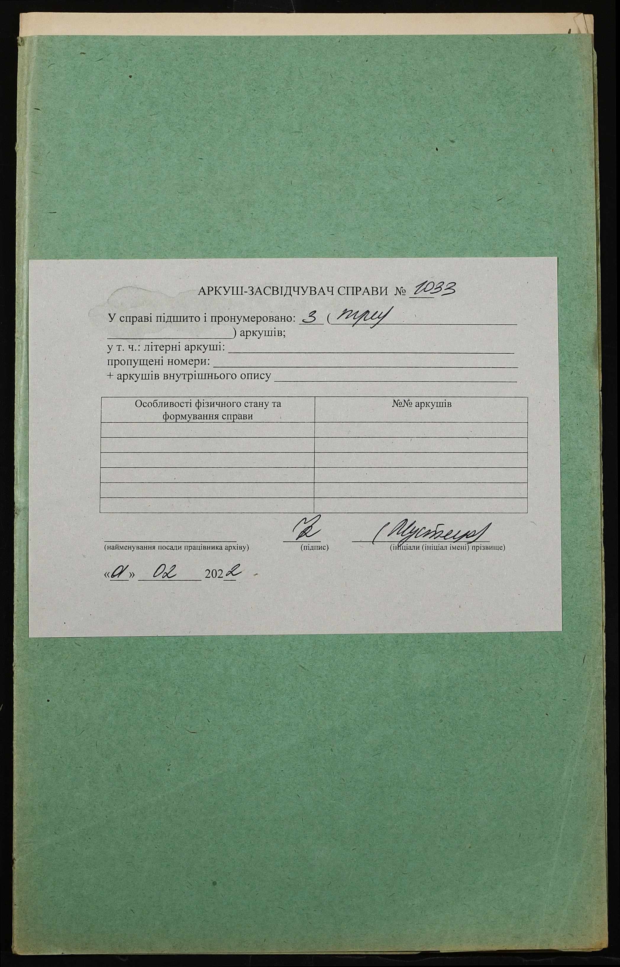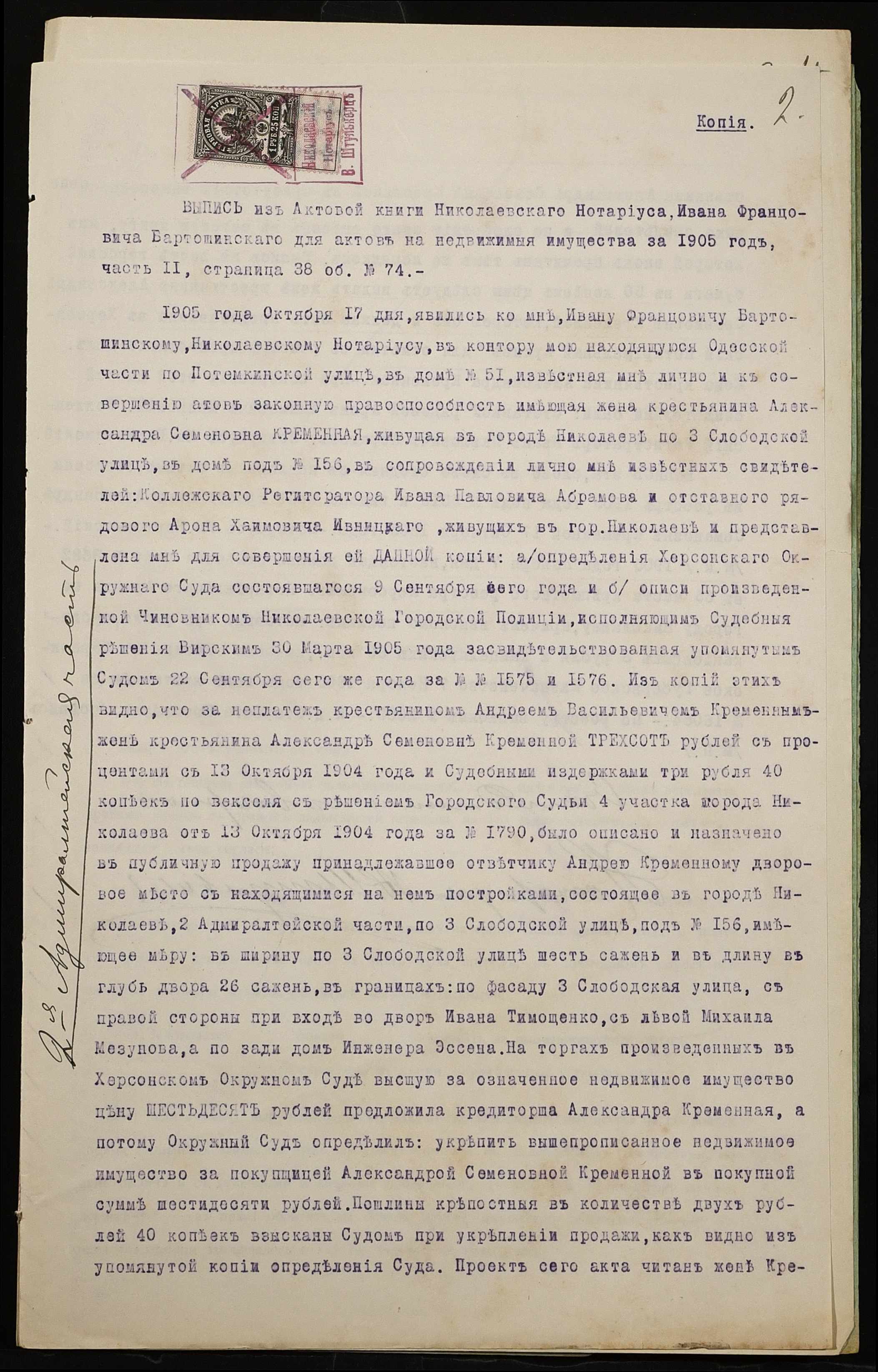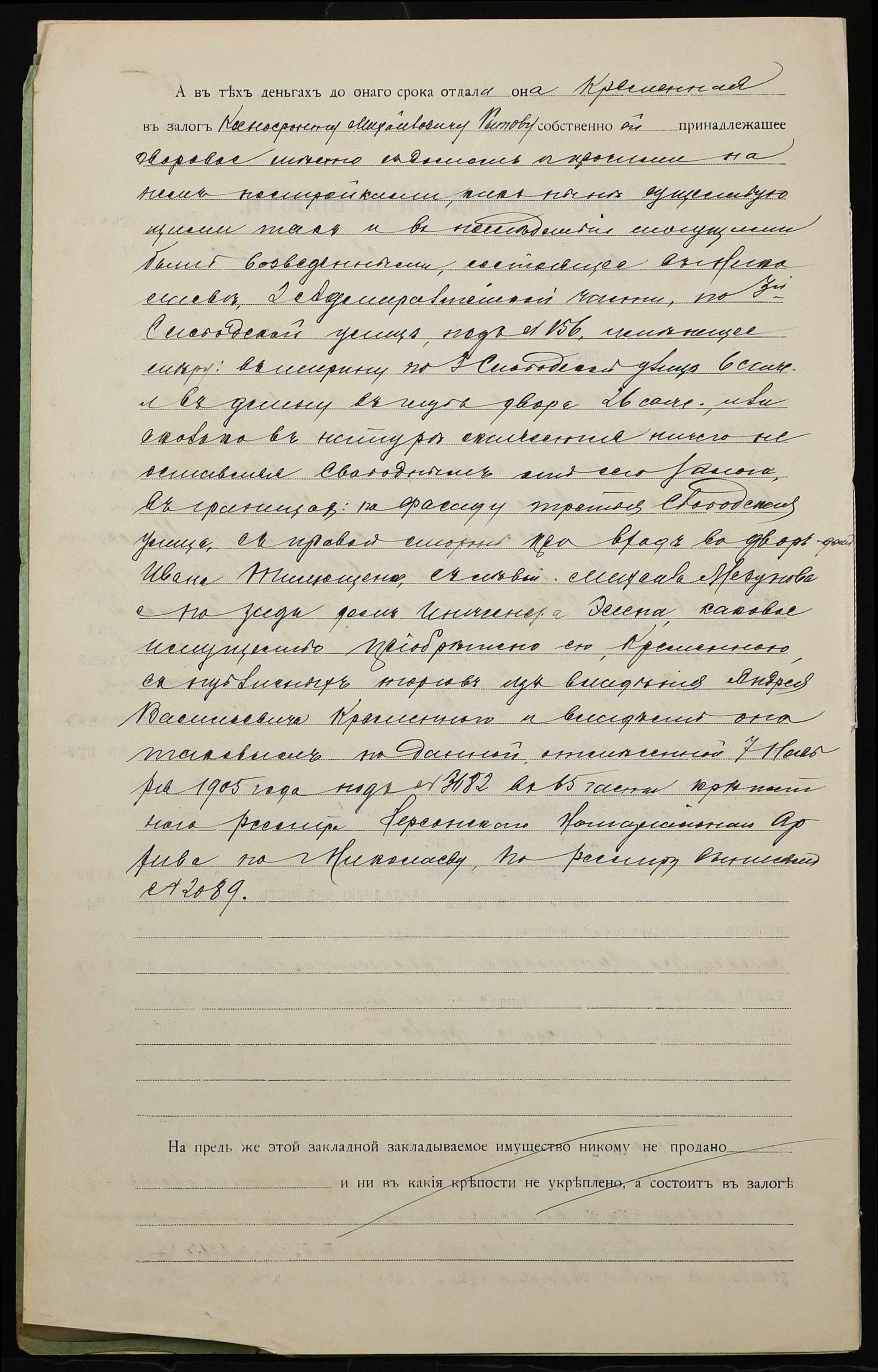 • • • • Справа № 1033 “Справа про вчинення заставної на дворове місце з будинком і усіма спорудами, заставлене дружиною селянина Кременною Олександрою Семенівною (Кременной Александрой Семеновной) – миколаївському міщанину Ритову Ксенофонту Михайловичу (Рытову Ксенофонту Михайловичу)”