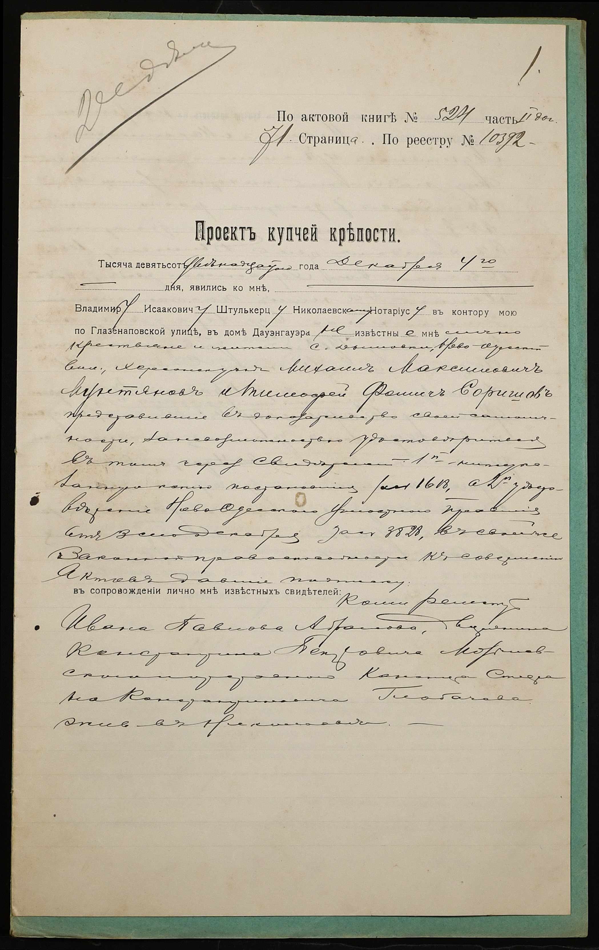 ◦ ◦ Фонд № 152 “Контора миколаївського нотаріуса Херсонського окружного суду Штулькерца Володимира Ісааковича”