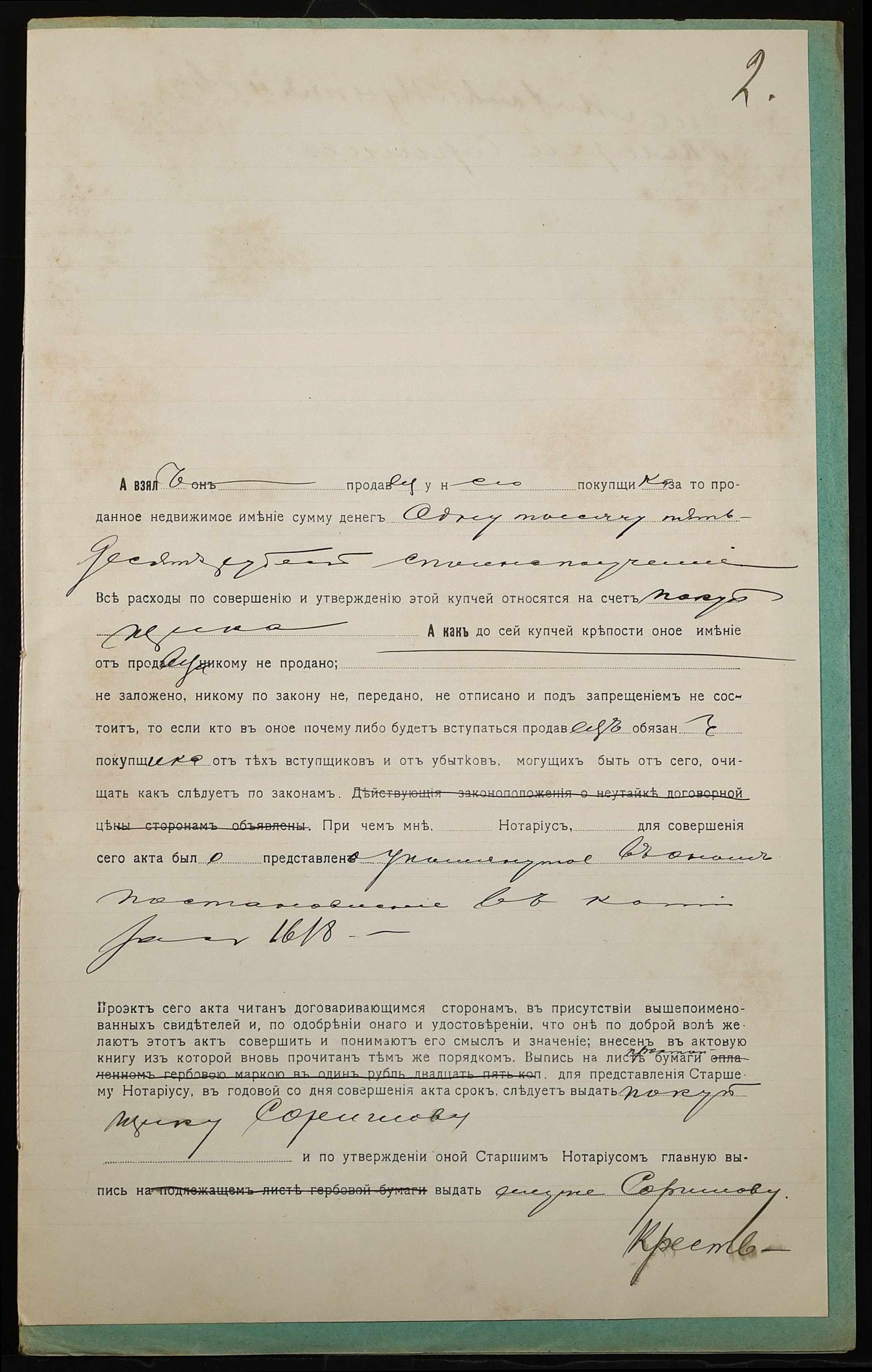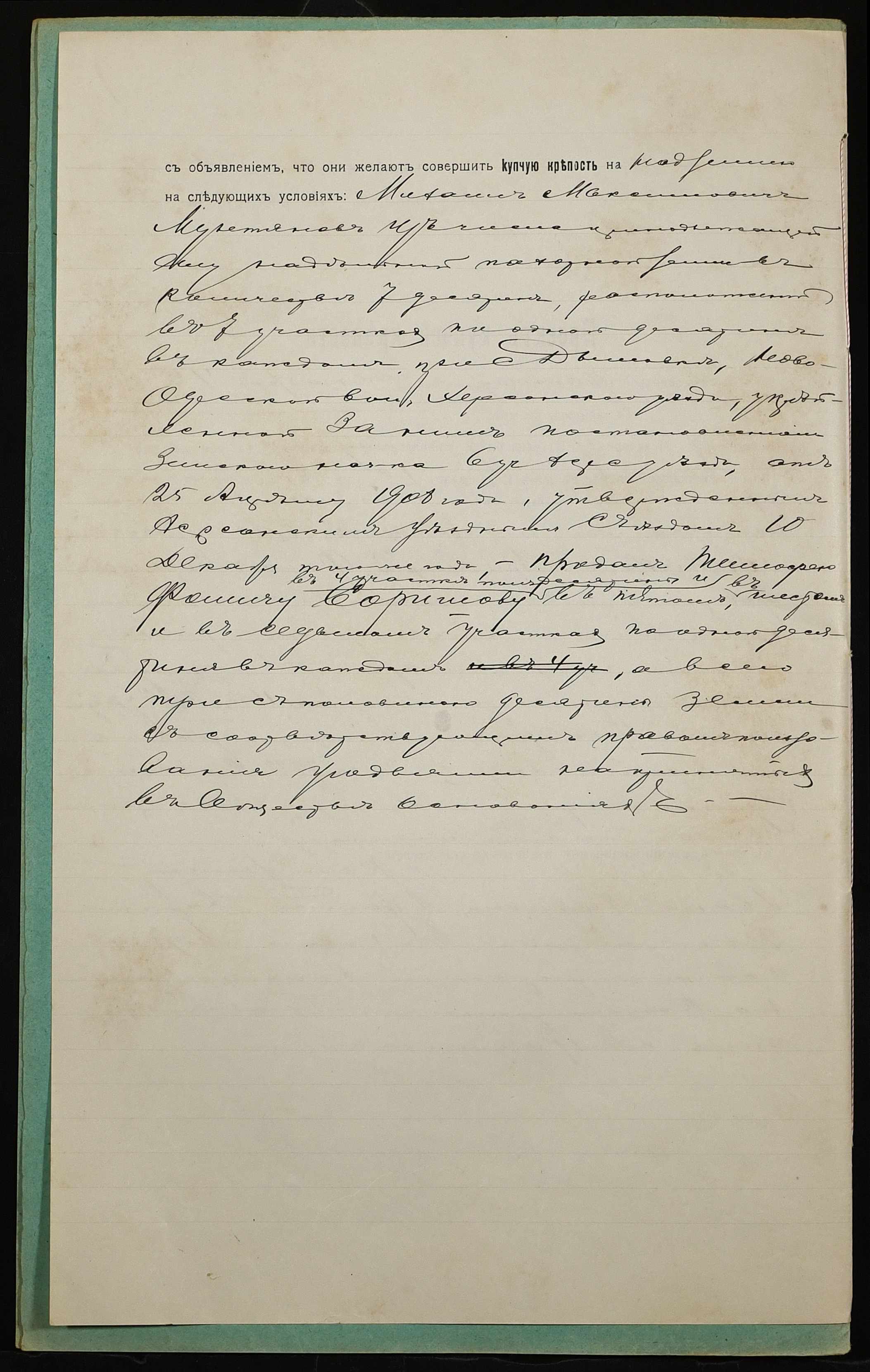 • • • • Справа № 1038 “Справа про вчинення купчої про продаж землі селянином Мунтяновим Михайлом Максимовичем (Мунтяновым Михаилом Максимовичем) на користь селянина Соришева Тимофія Хомича (Соришева Тимофея Фомича)”