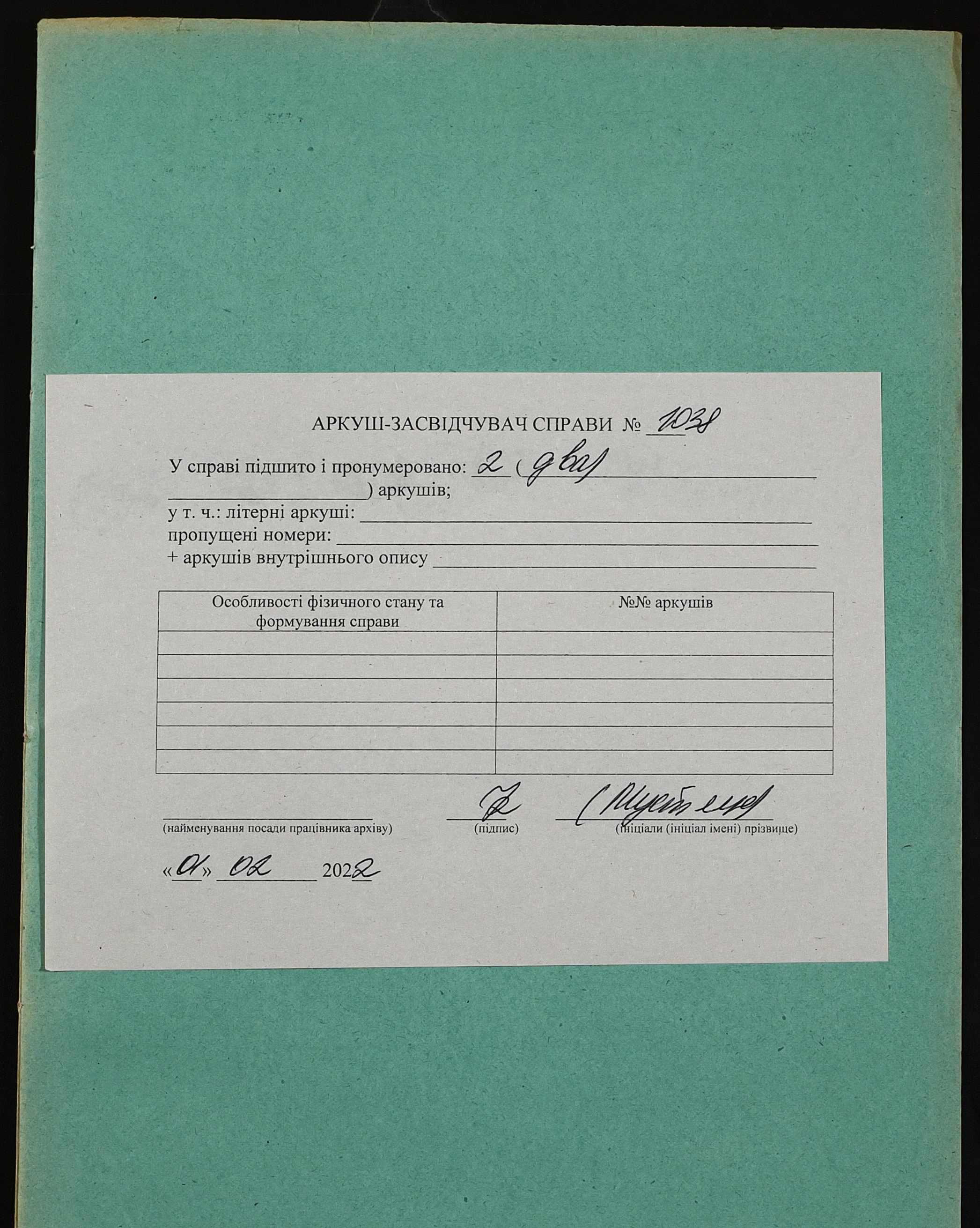 Фонд 152 / Опис 1 / Справа 1038