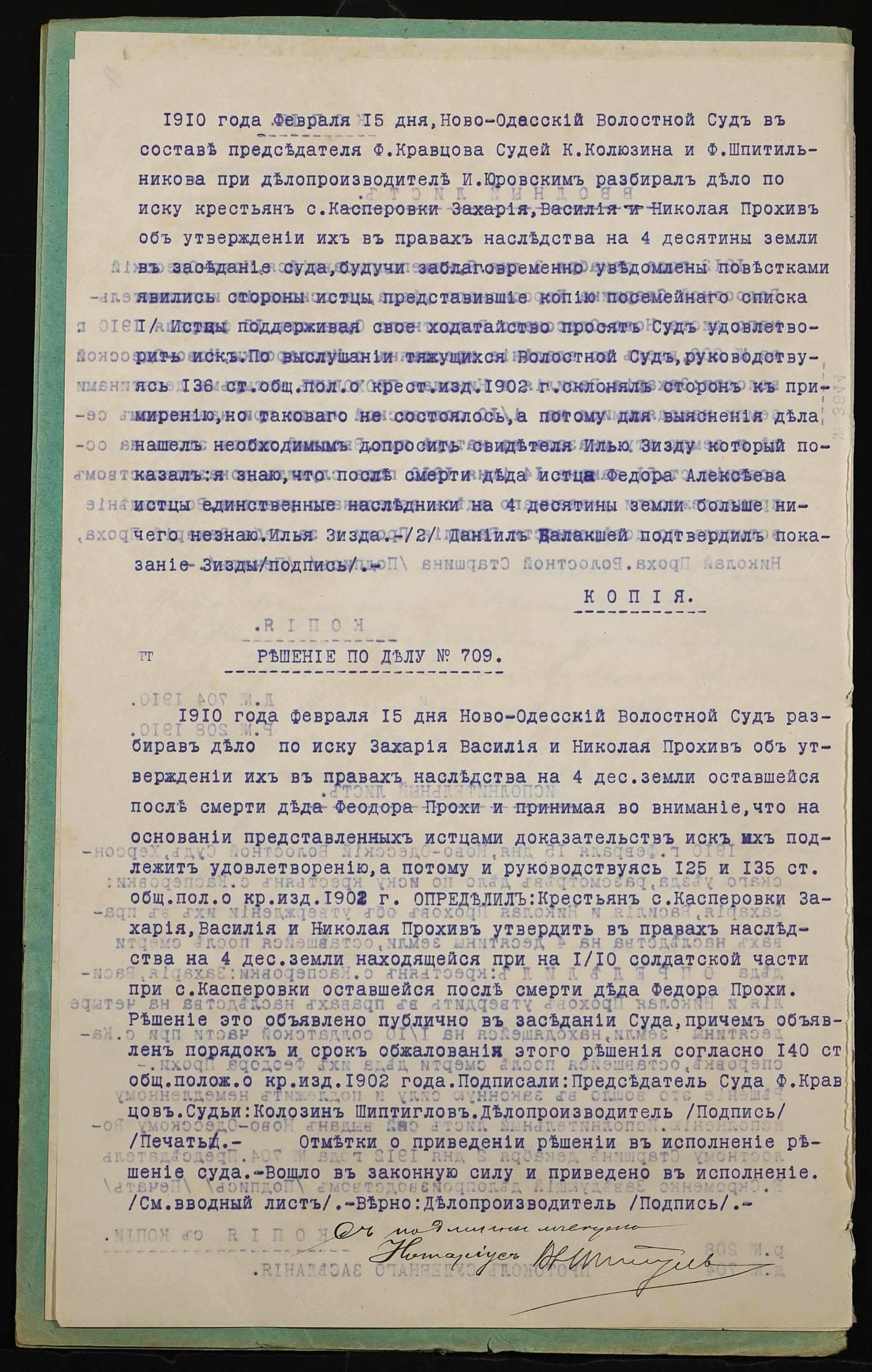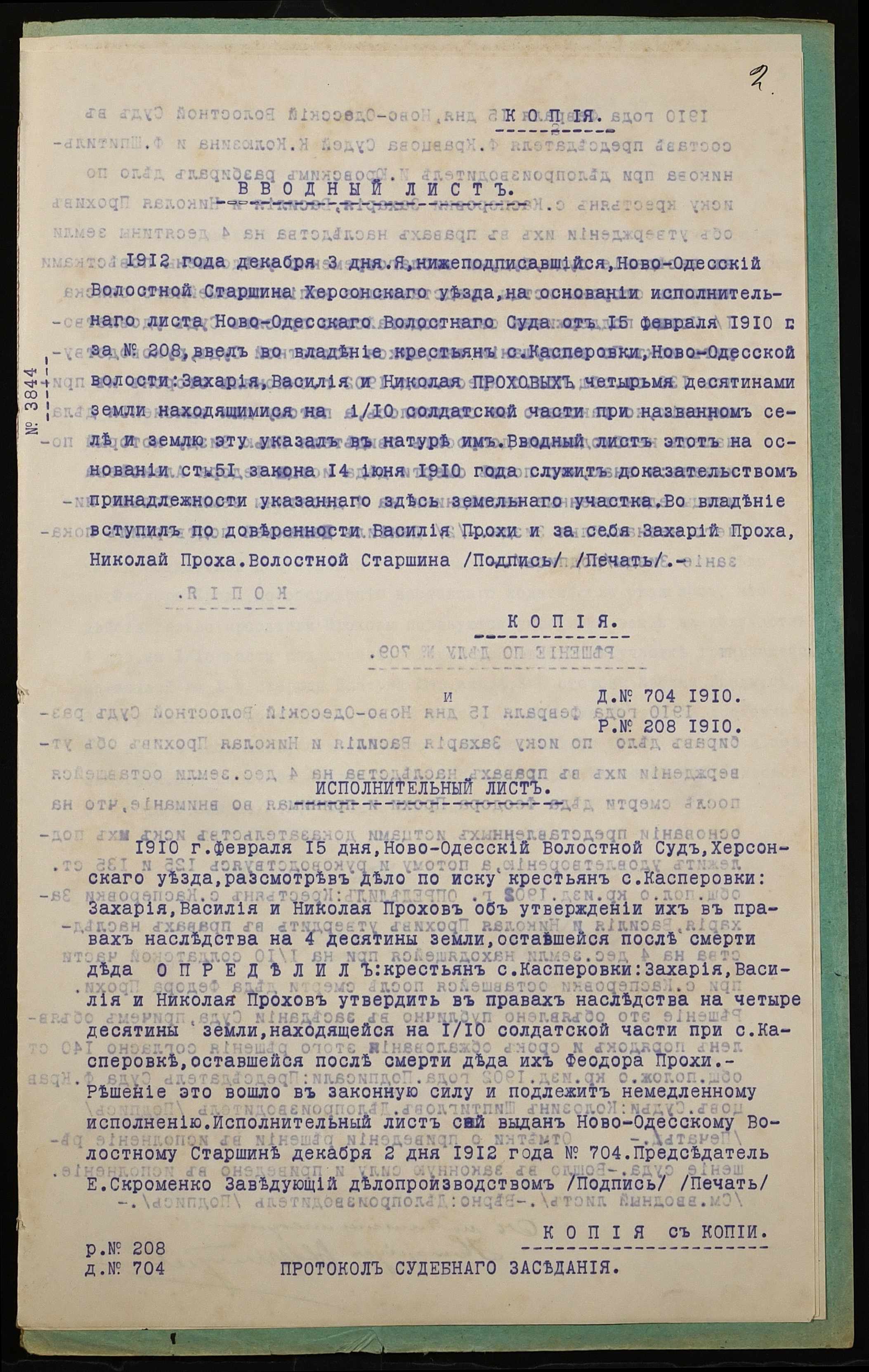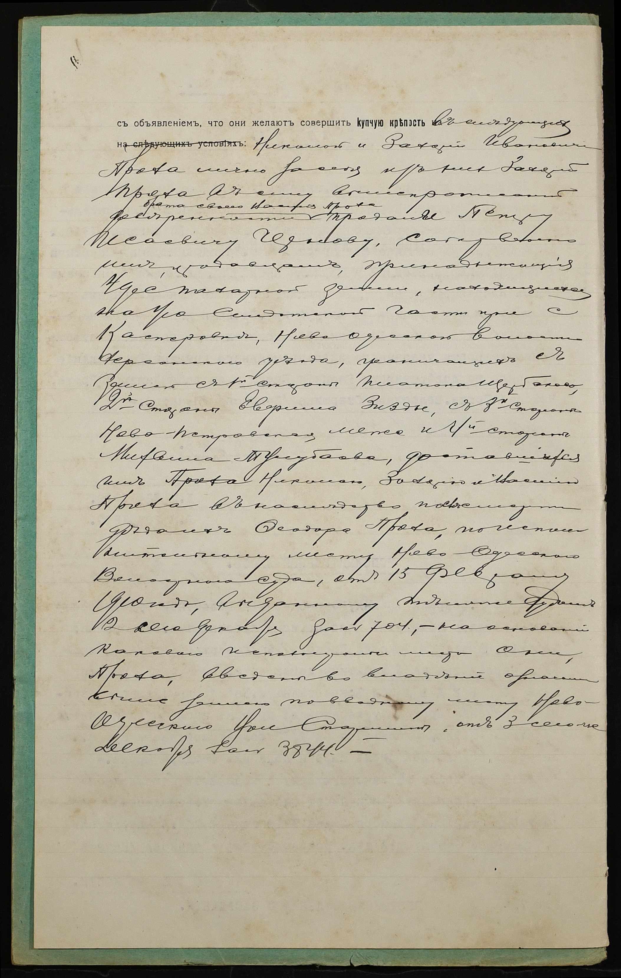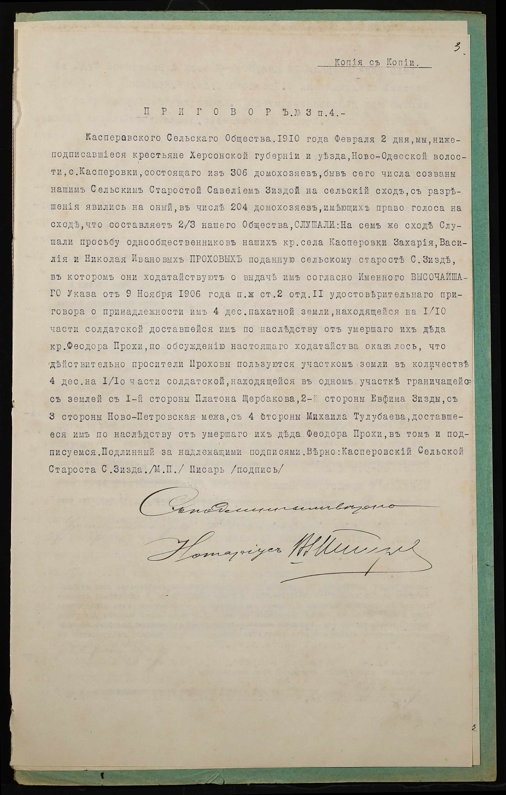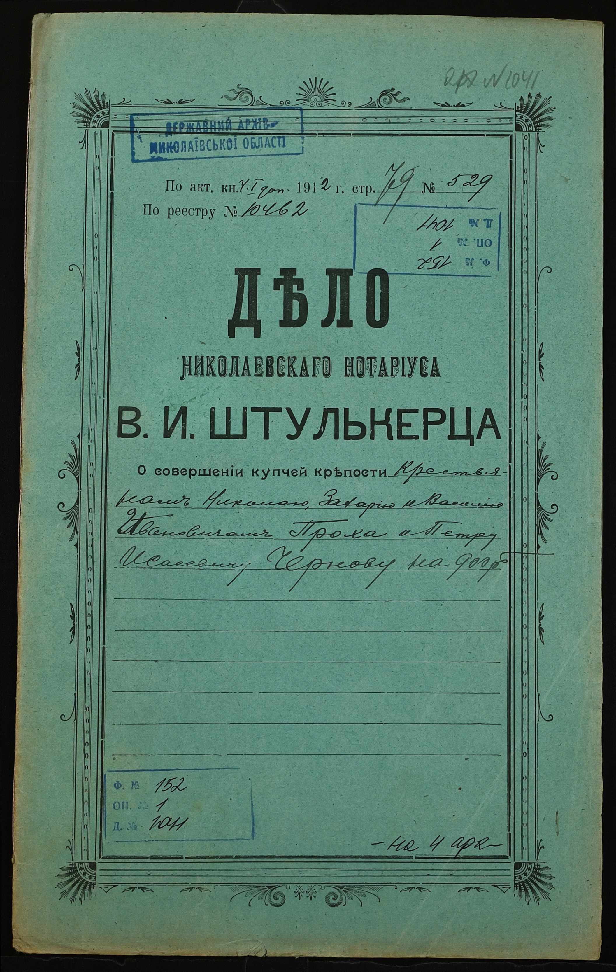 • • • • Справа № 1041 “Справа про вчинення купчої про продаж землі селянами Прохою Миколою (Прохой Николаем), Прохою Василем (Прохой Василием) і Прохою Захарієм (Прохой Захарием) на користь селянина Чернова Петра Ісайовича (Чернова Петра Исаевича)”