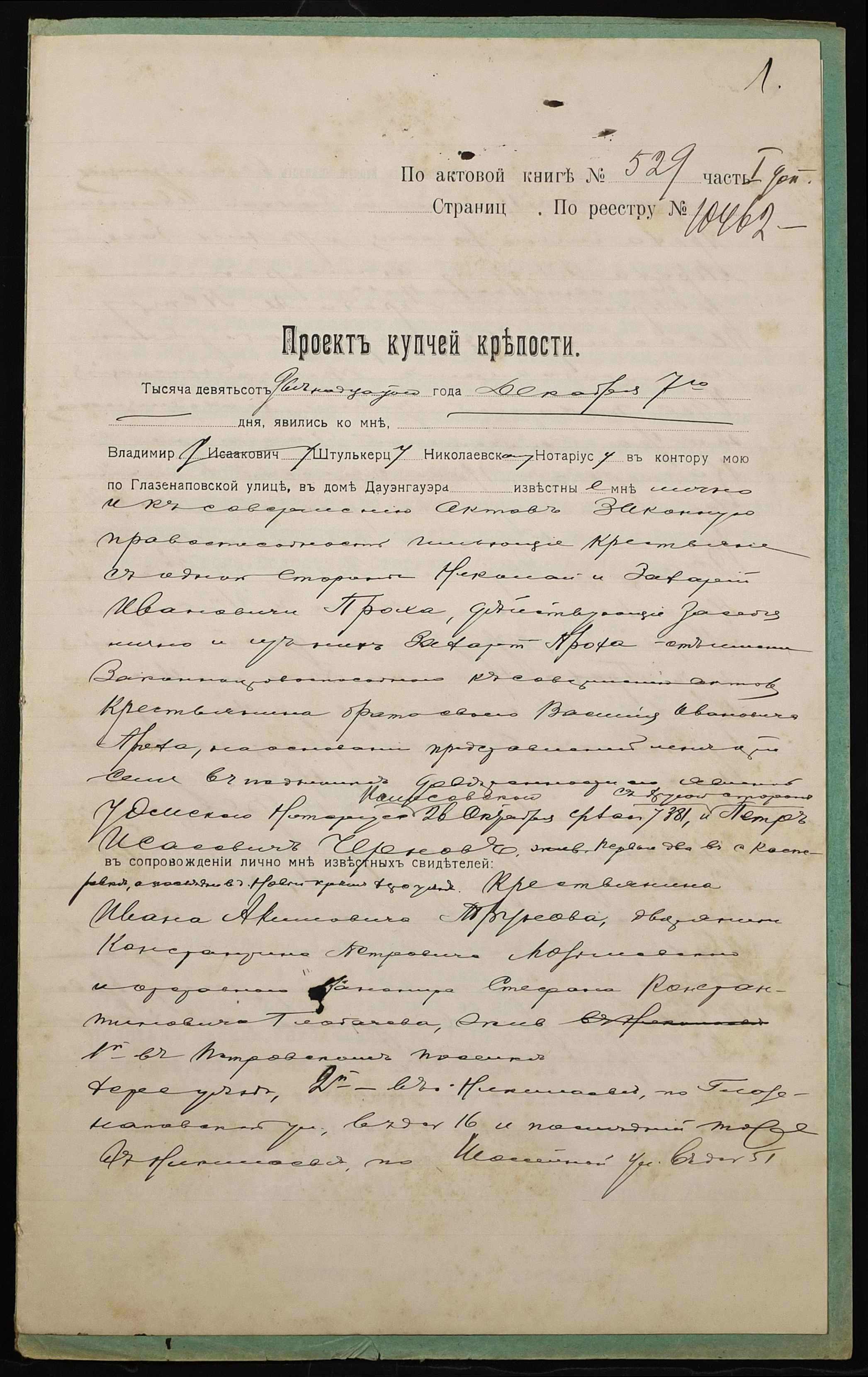 ◦ ◦ Фонд № 152 “Контора миколаївського нотаріуса Херсонського окружного суду Штулькерца Володимира Ісааковича”