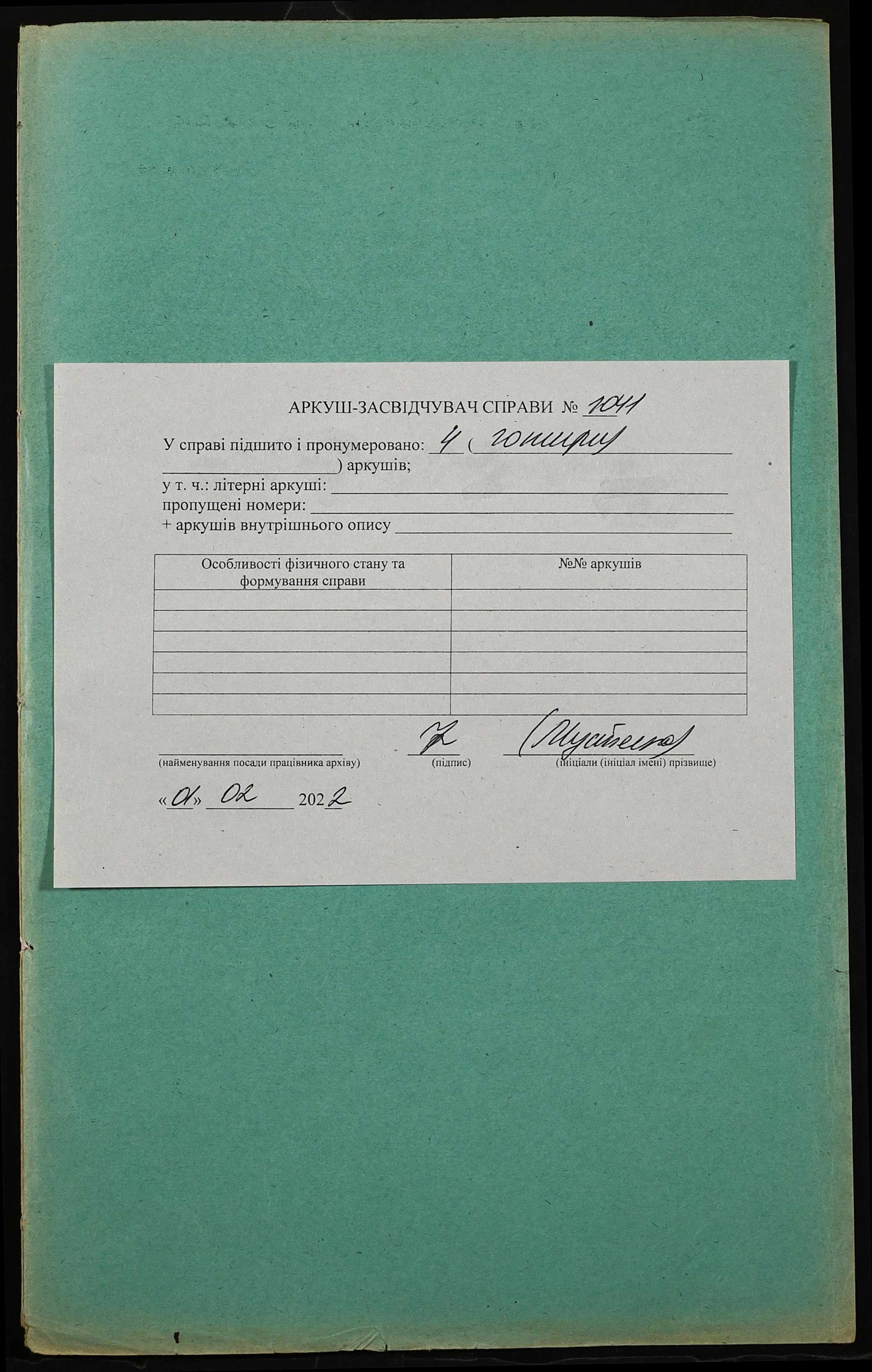 Фонд 152 / Опис 1 / Справа 1041