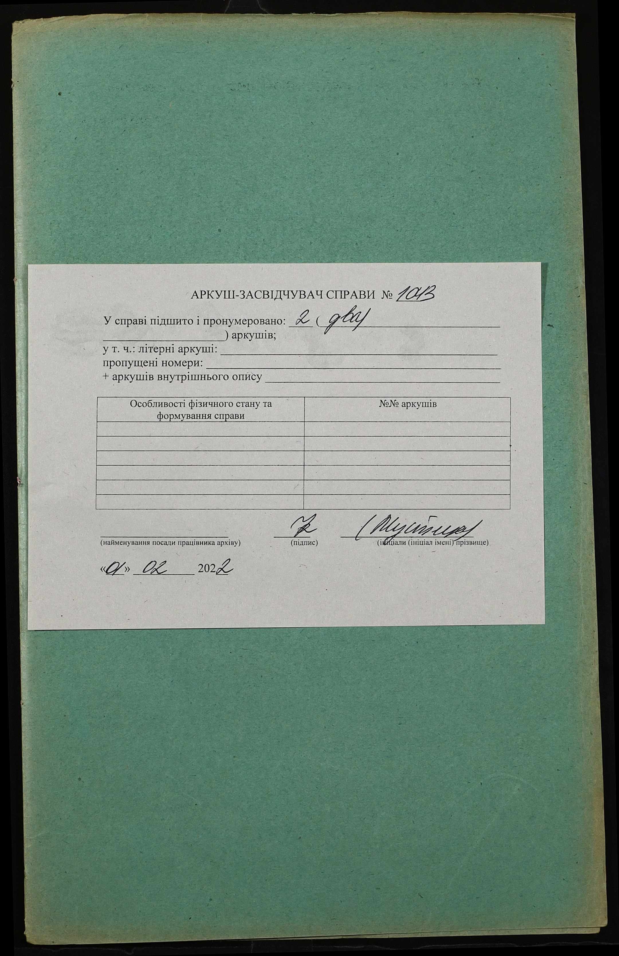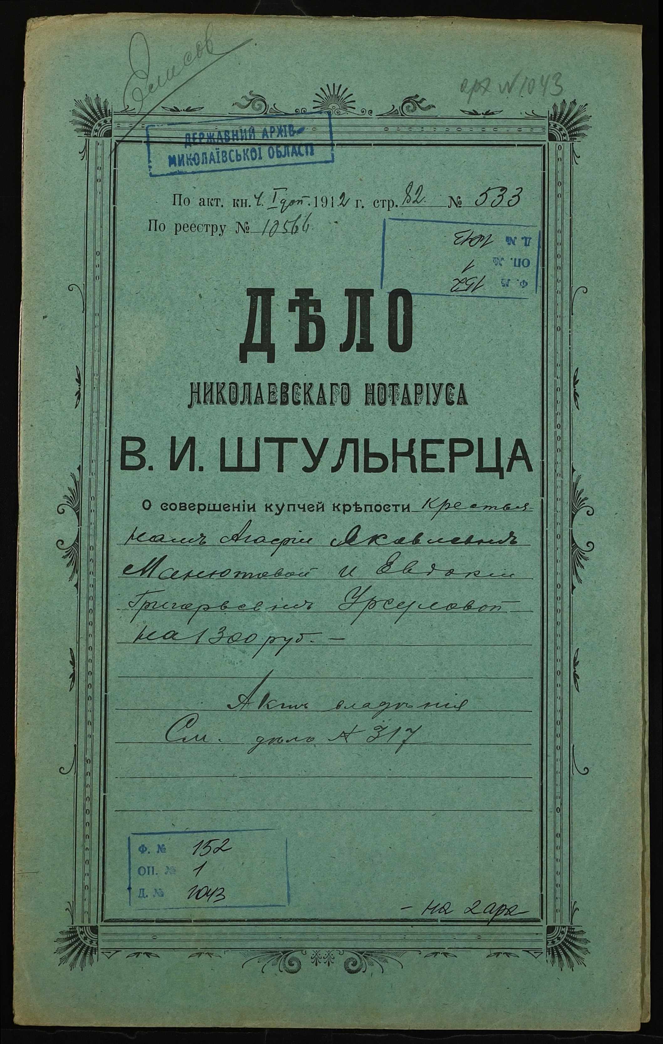 Фонд 152 / Опис 1 / Справа 1043