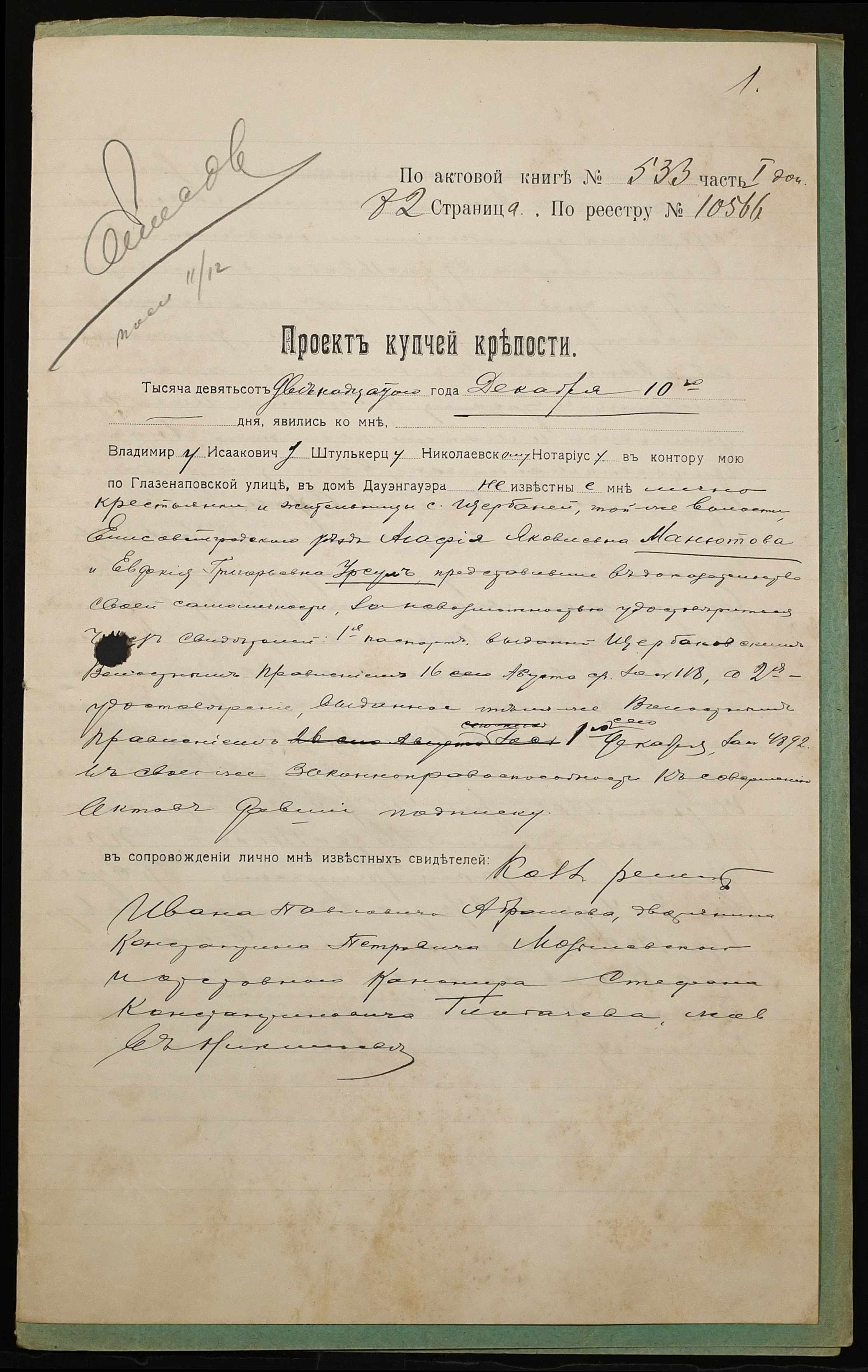 ◦ ◦ Фонд № 152 “Контора миколаївського нотаріуса Херсонського окружного суду Штулькерца Володимира Ісааковича”