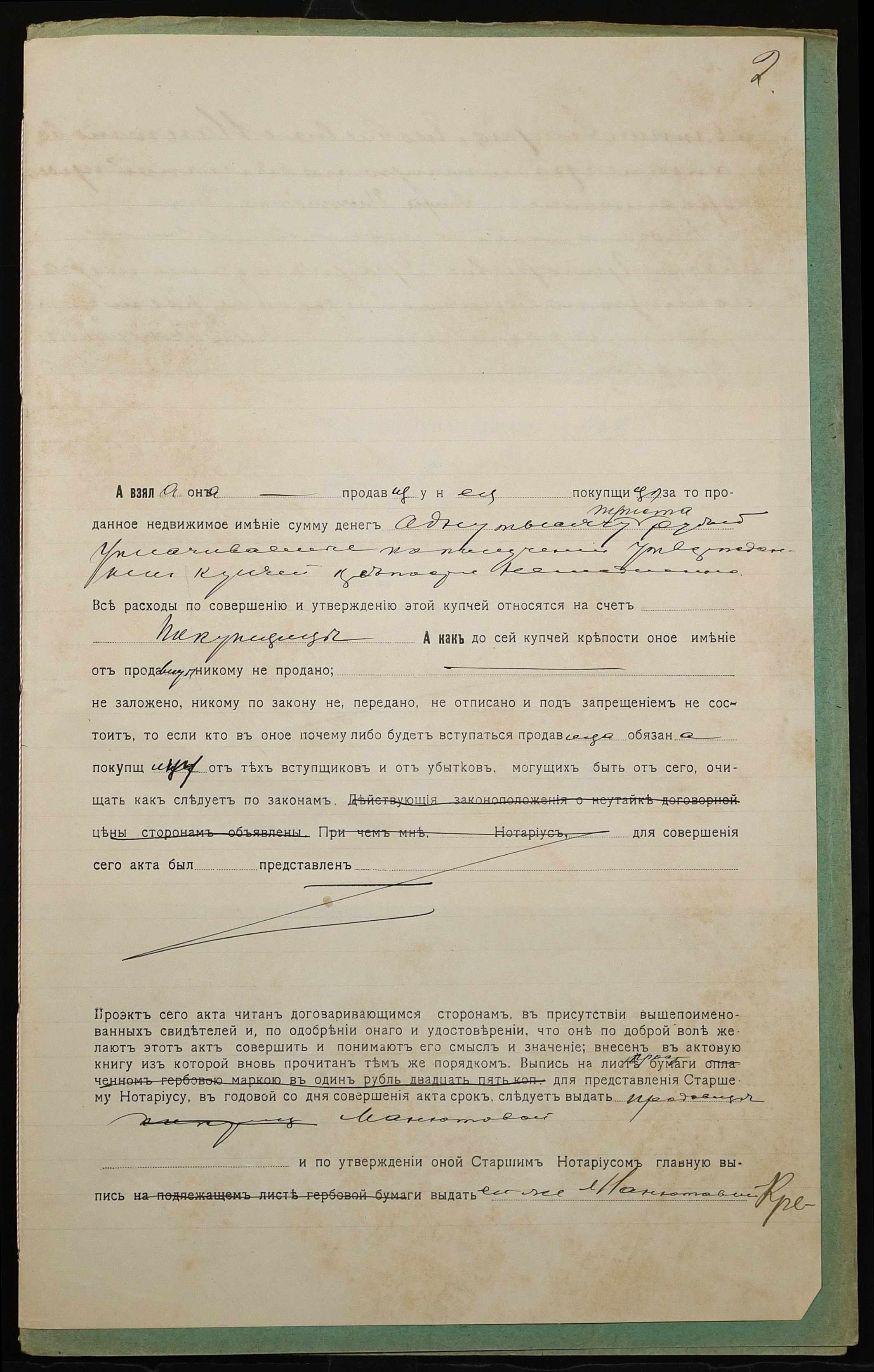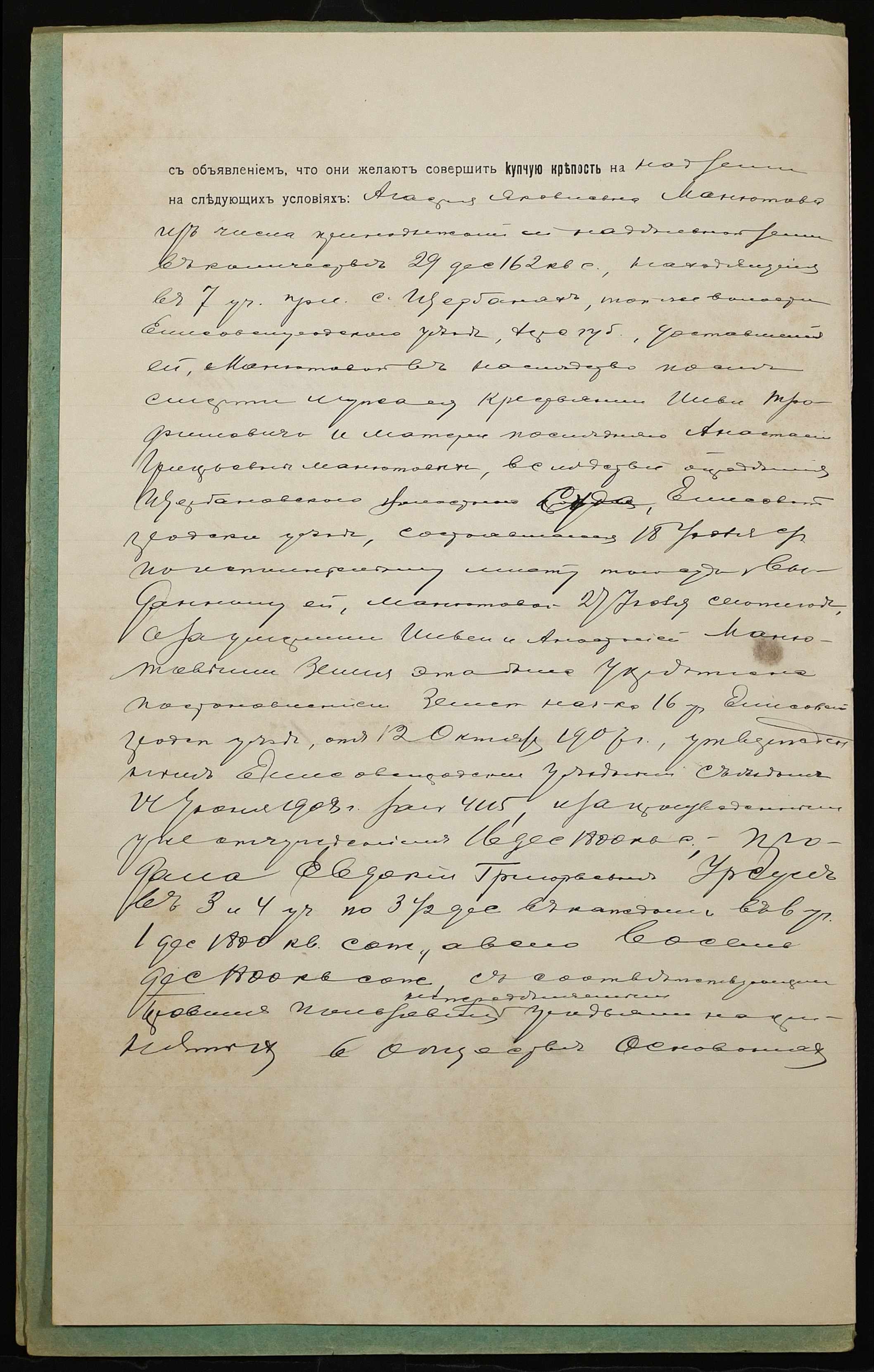 • • • • Справа № 1043 “Справа про вчинення купчої про продаж землі селянкою Манютовою Агафією Яківною (Манютовой Агафией Яковлевной) на користь селянки Урсулової Євдокії Григорівни (Урсуловой Евдокии Григорьевны)”
