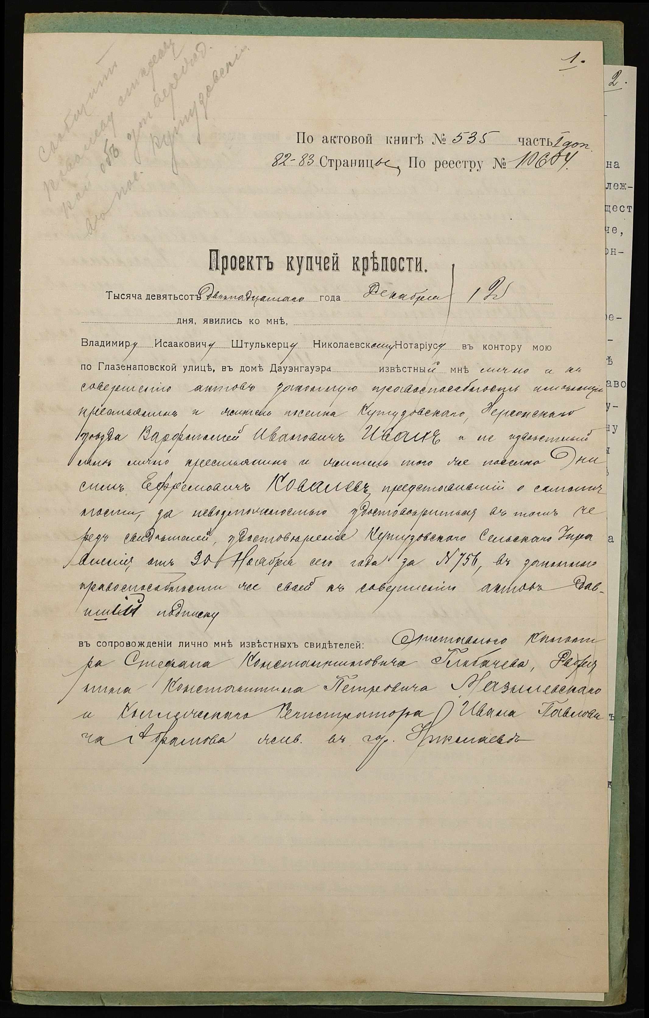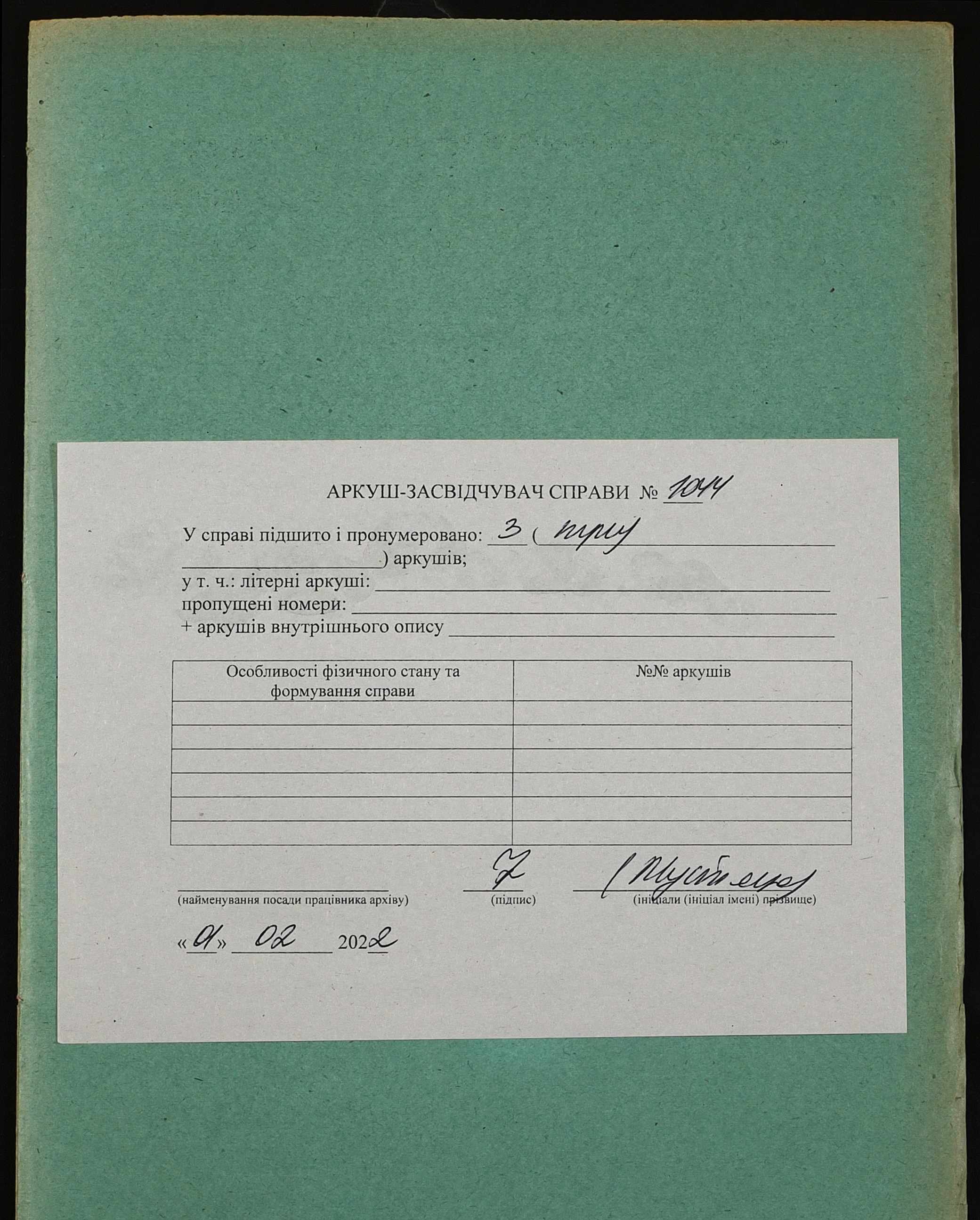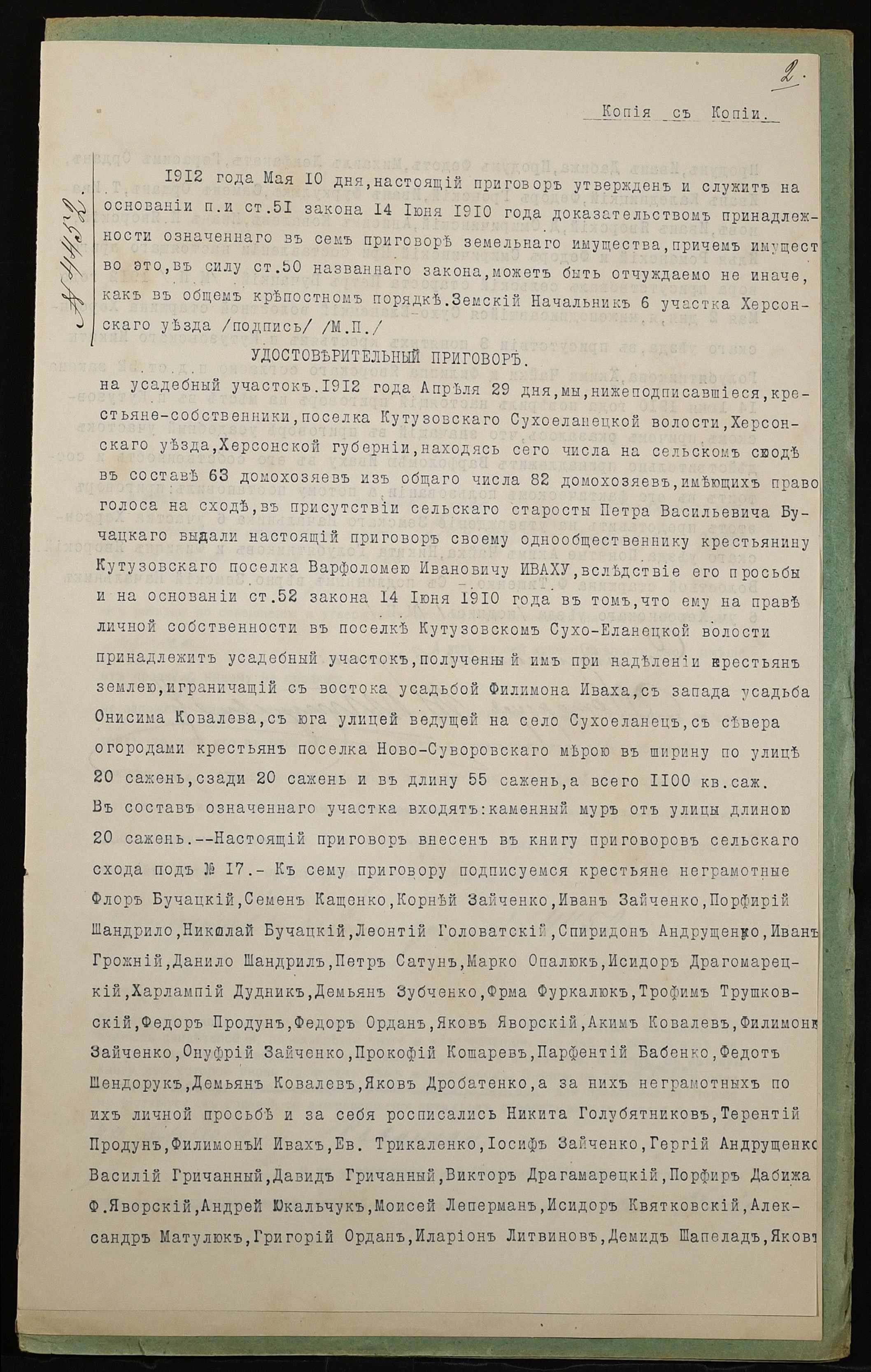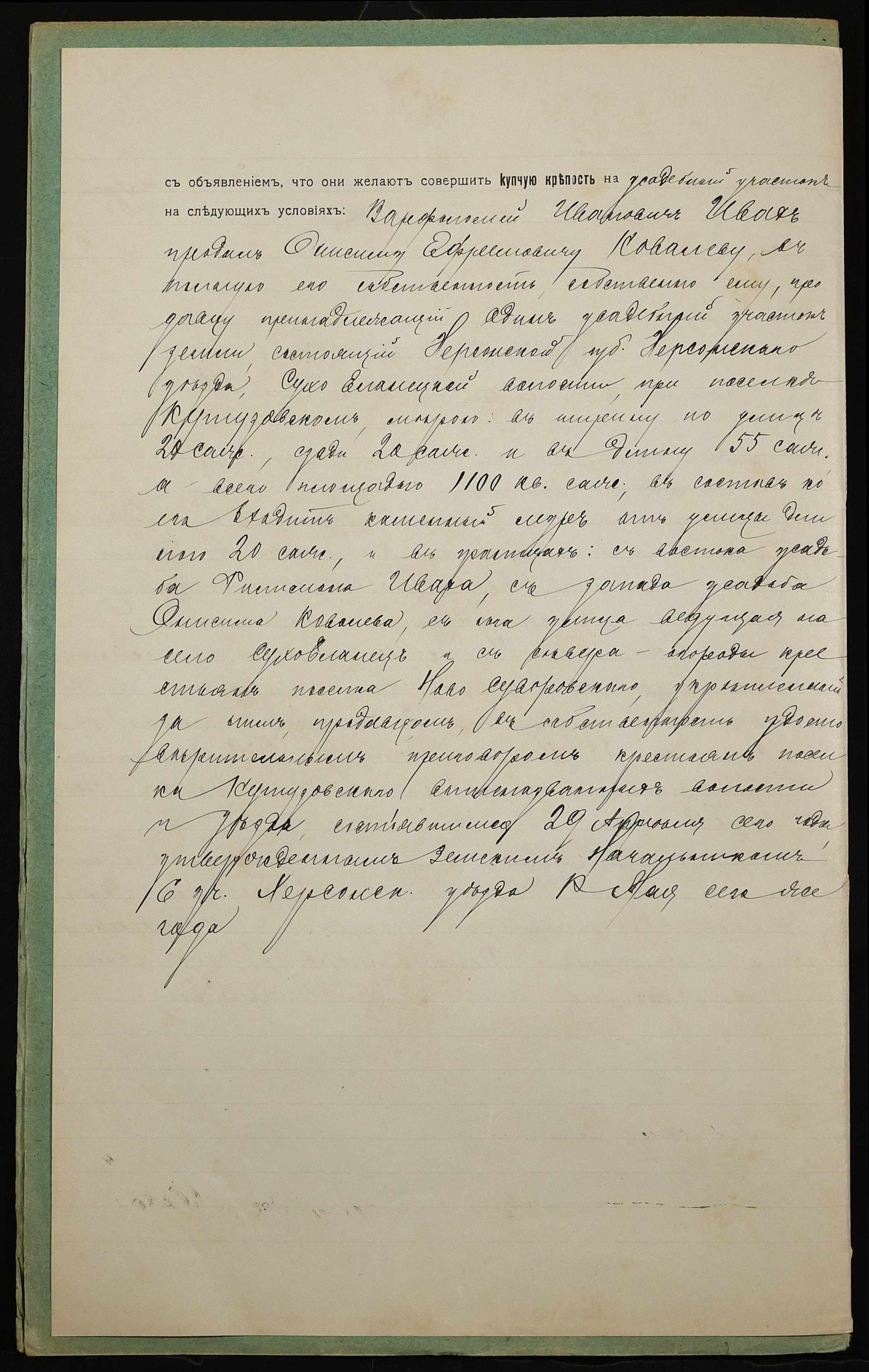 • • • • Справа № 1044 “Справа про вчинення купчої про продаж землі селянином Івахом Варфоломієм Івановичем (Ивахом Варфоломеем Ивановичем) на користь селянина Ковальова Онисима Єфремовича (Ковалева Анисима Ефремовича)”