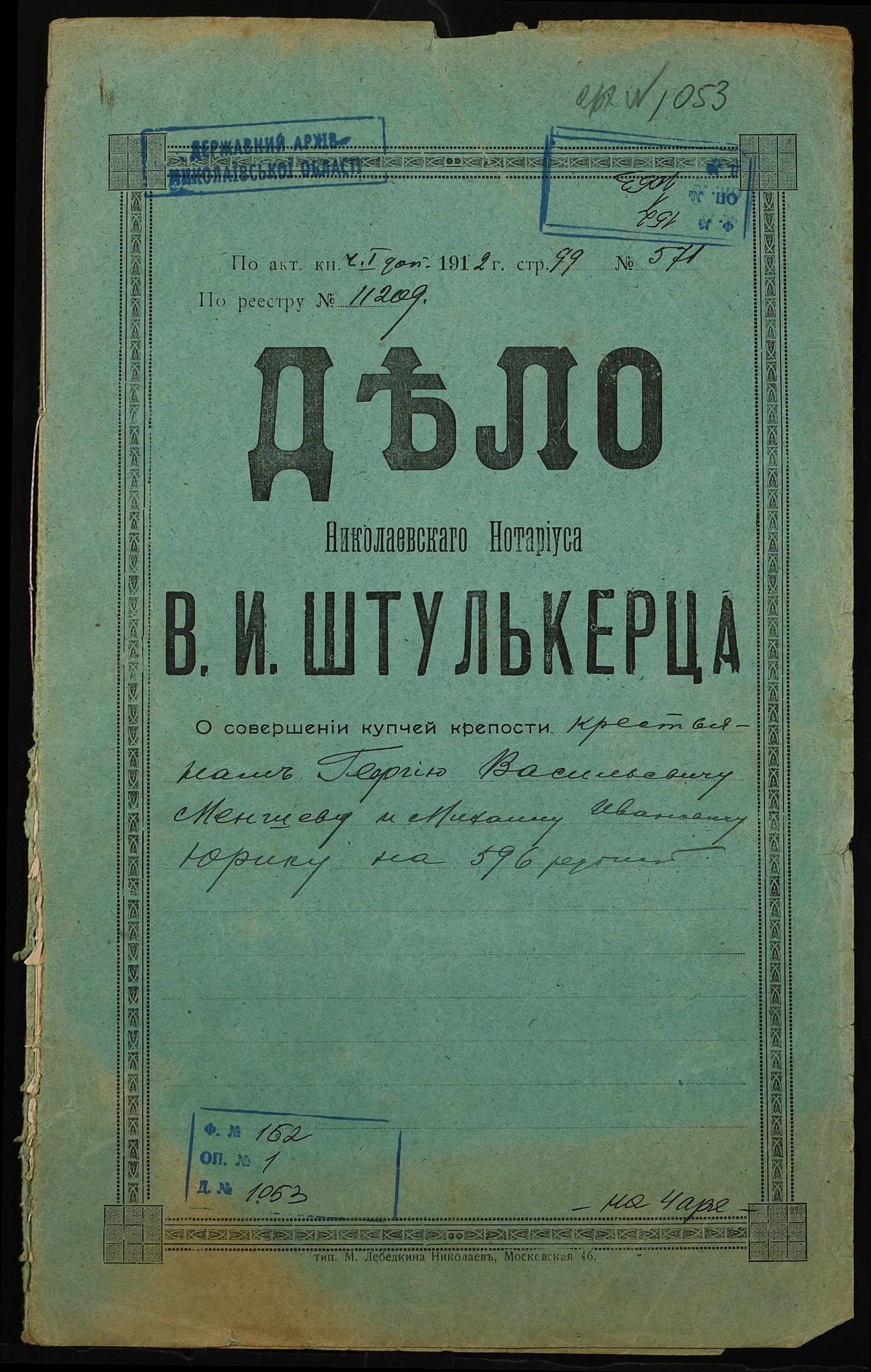 Фонд 152 / Опис 1 / Справа 1053