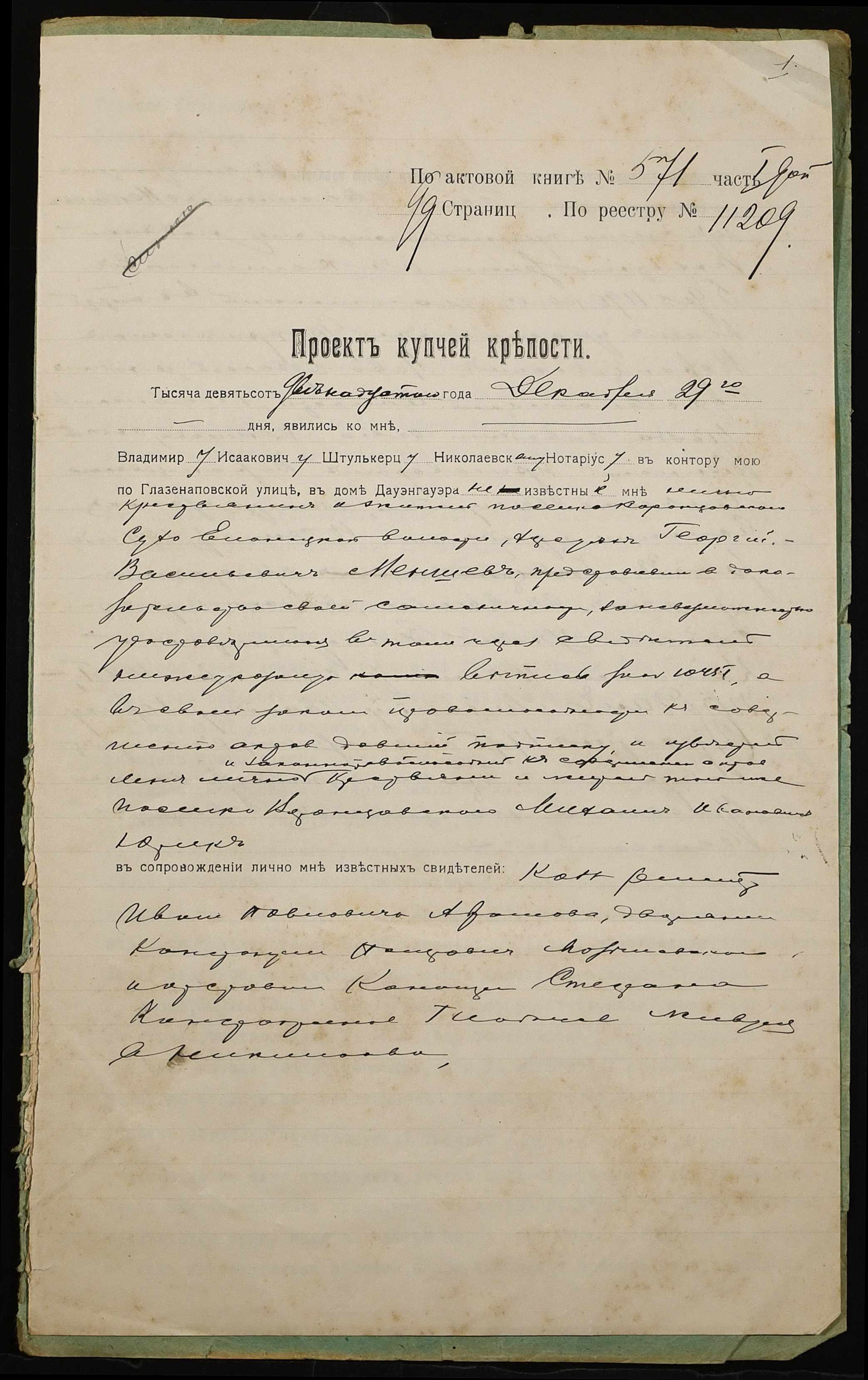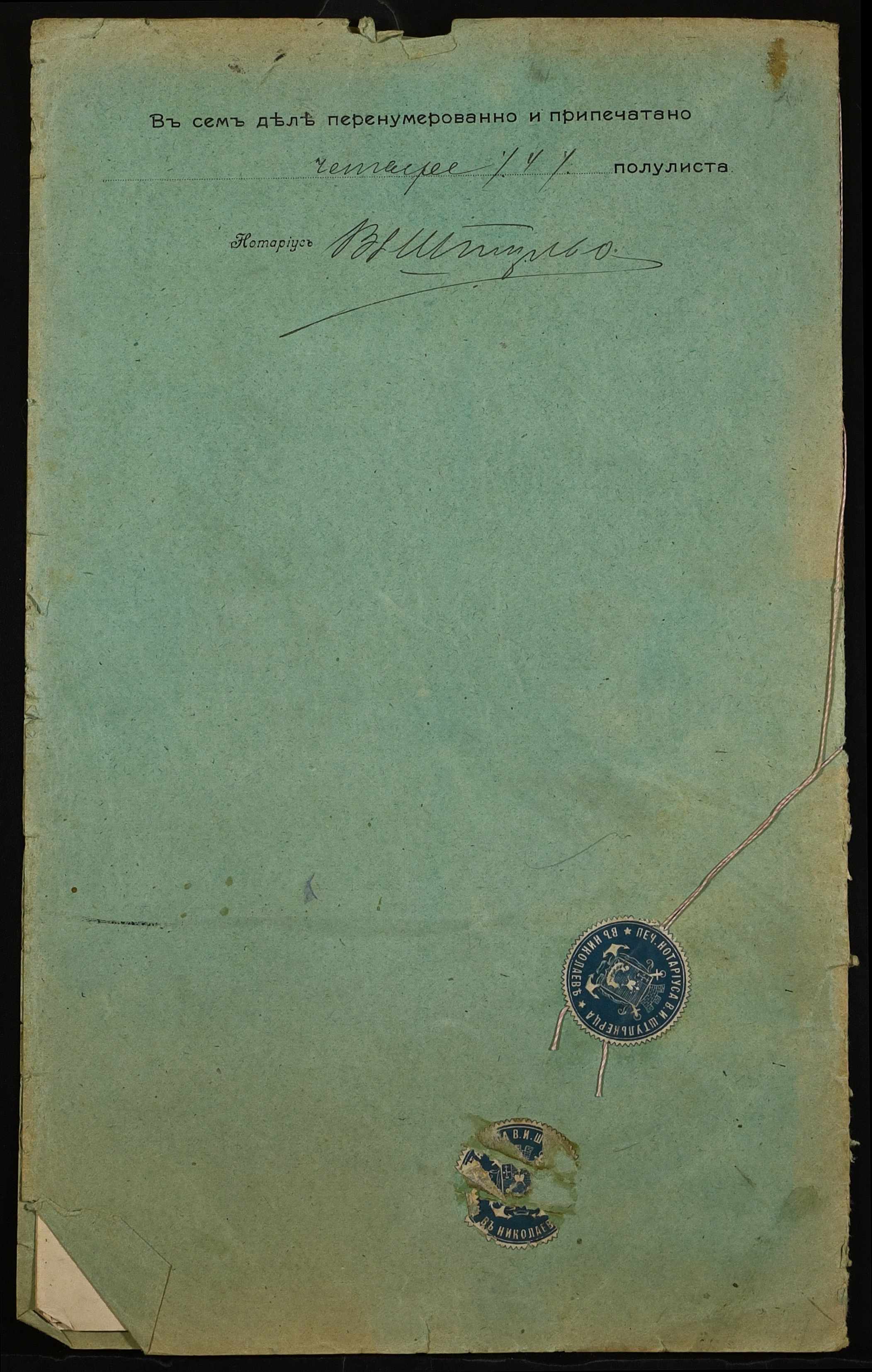 ◦ ◦ Фонд № 152 “Контора миколаївського нотаріуса Херсонського окружного суду Штулькерца Володимира Ісааковича”