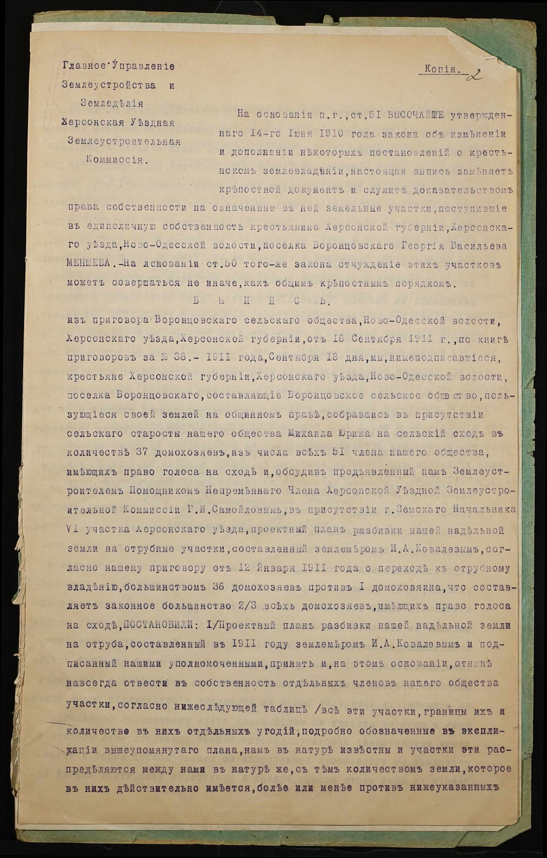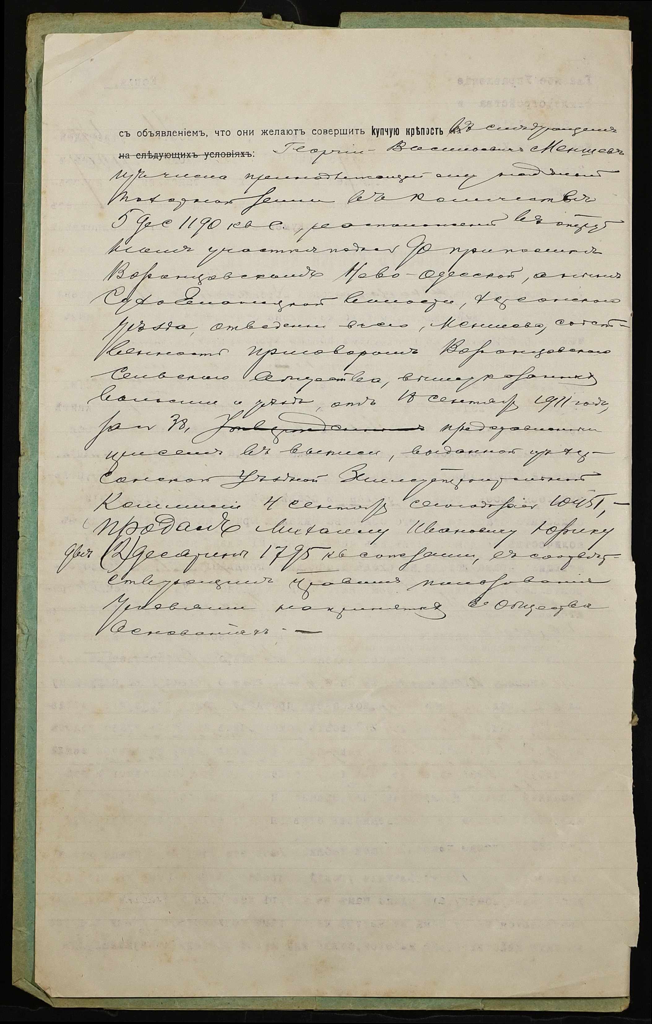 • • • • Справа № 1053 “Справа про вчинення купчої про продаж землі селянином Меншевим Георгієм Васильовичем (Меншевым Георгием Васильевичем) на користь селянина Юрика Михайла Івановича (Юрика Михаила Ивановича)”