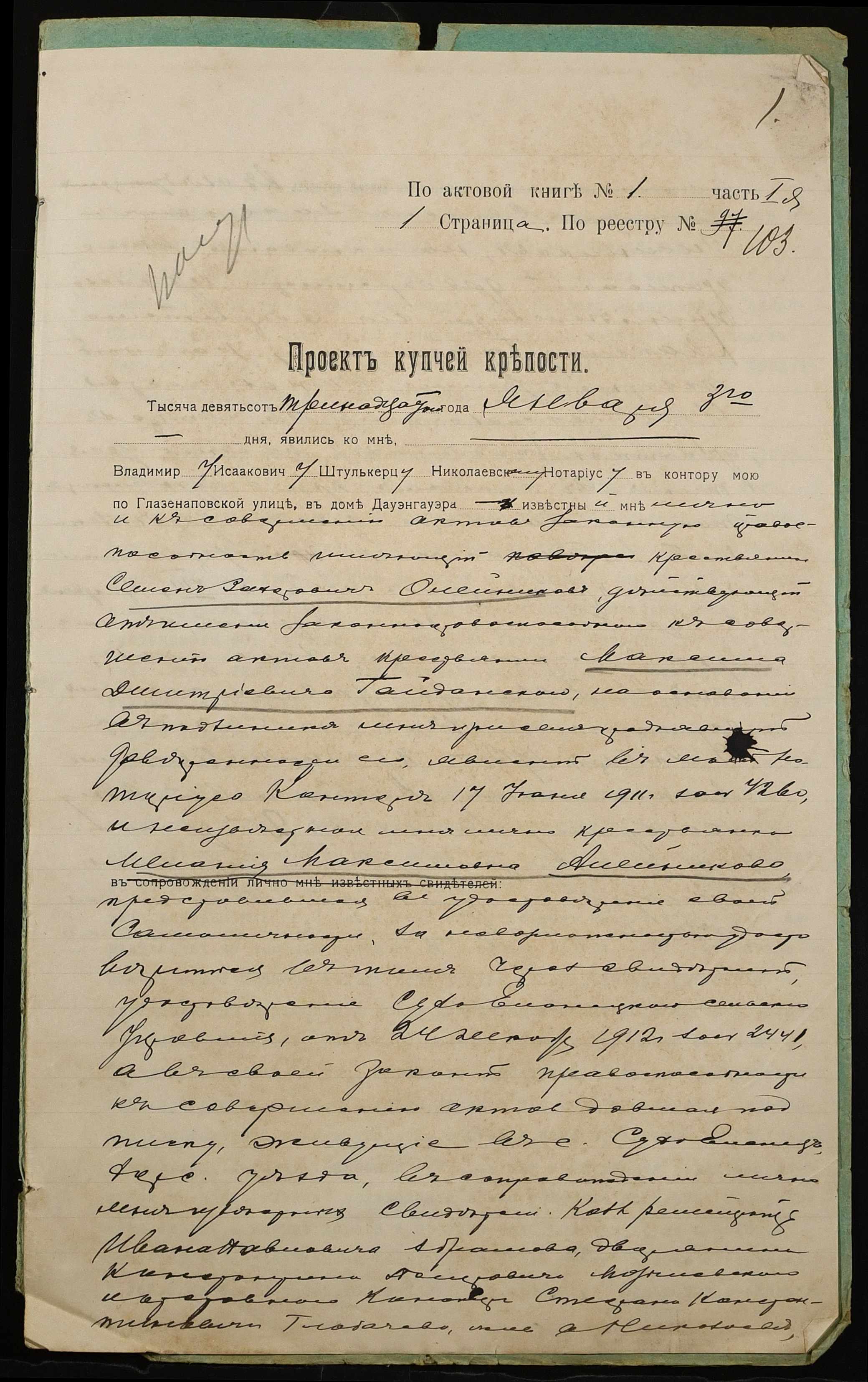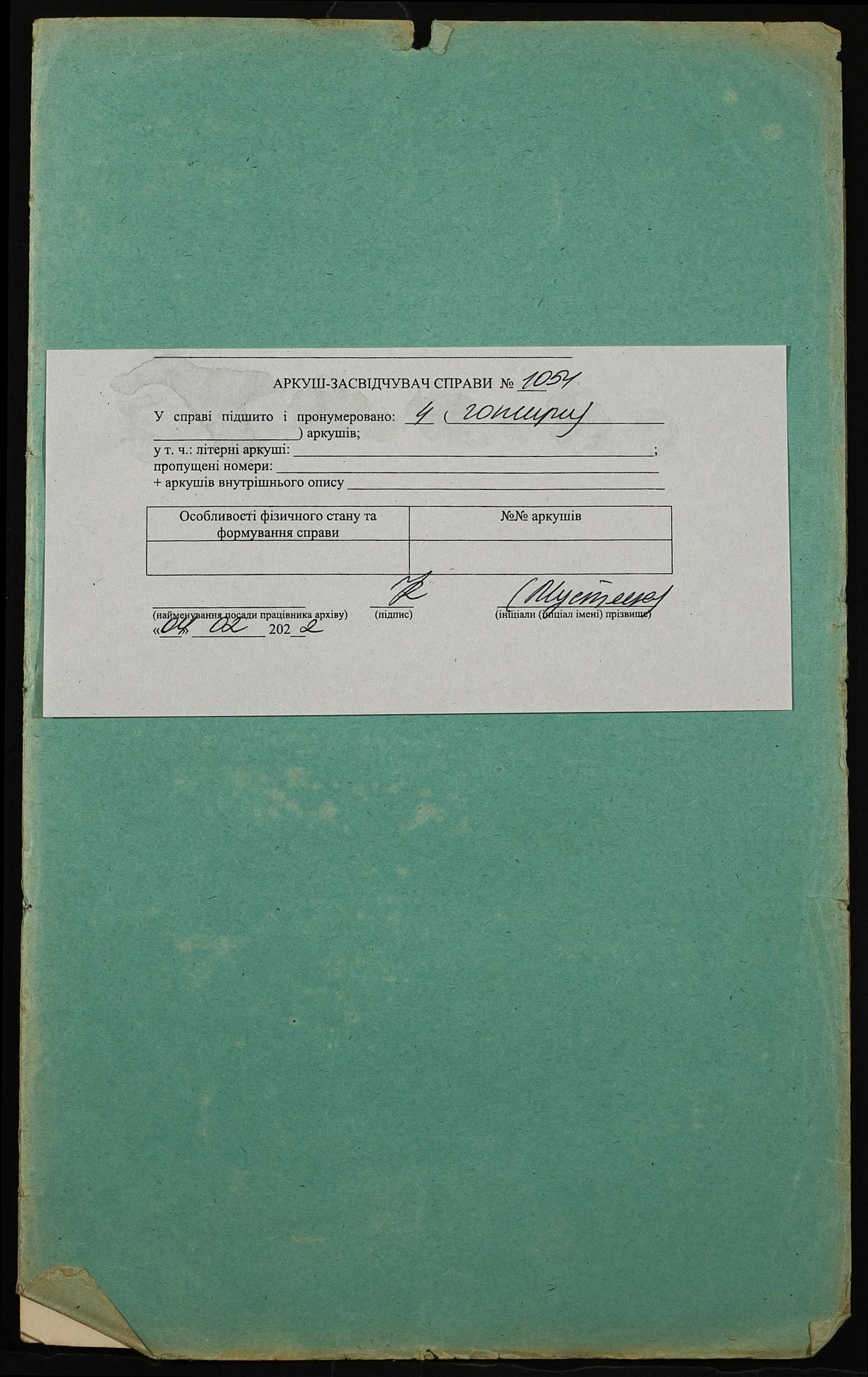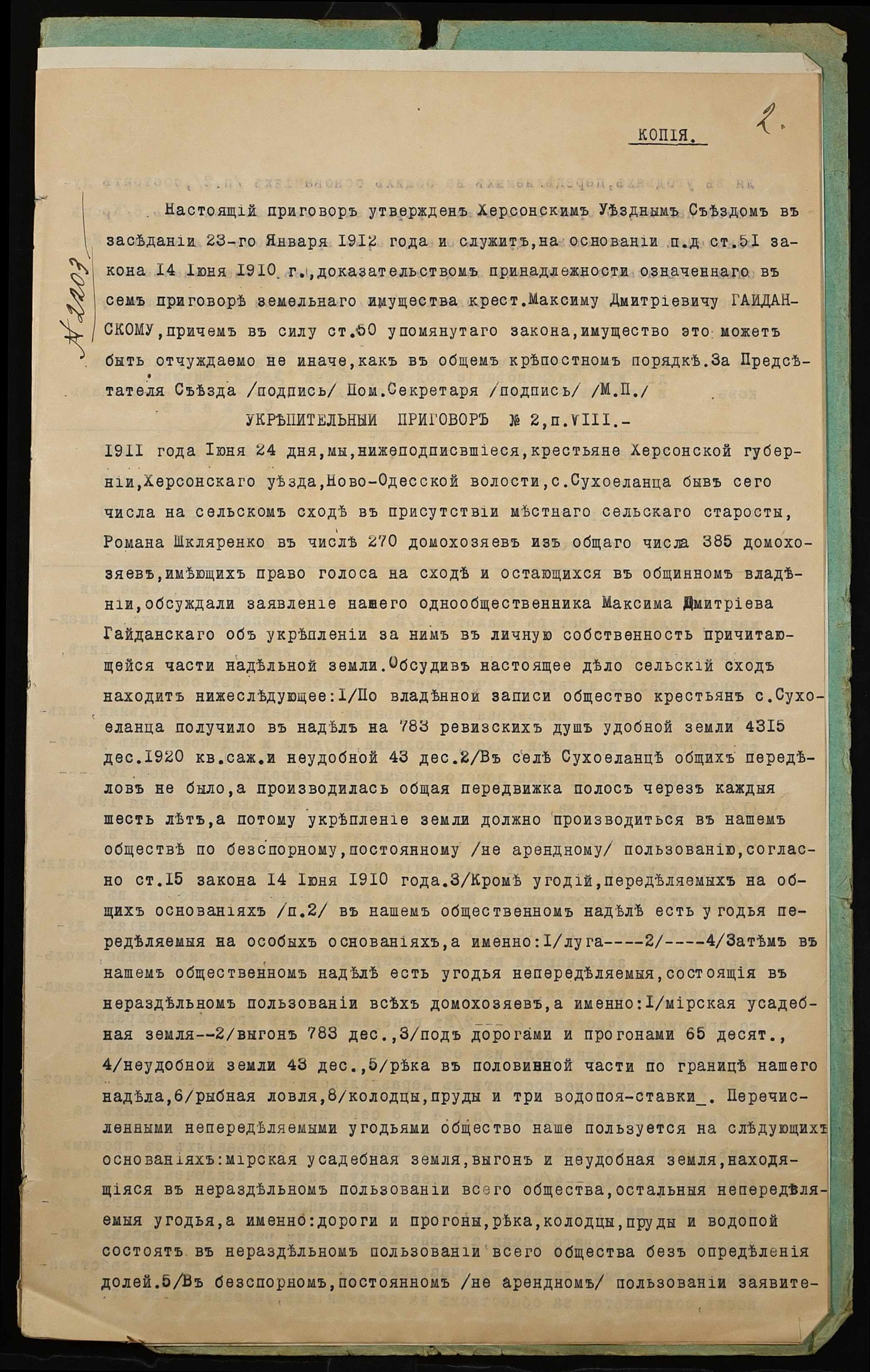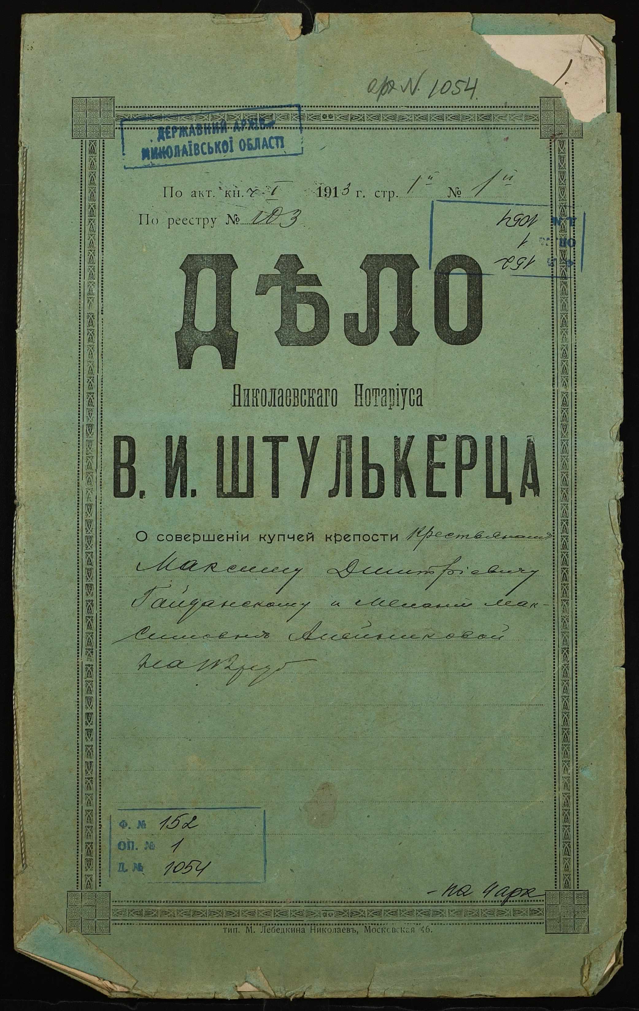 • • • • Справа № 1054 “Справа про вчинення купчої про продаж землі селянином Гайданським Максимом Дмитровичем (Гайданским Максимом Дмитриевичем) на користь селянки Алейникової Меланії Максимівни (Алейниковой Мелании Максимовны)”