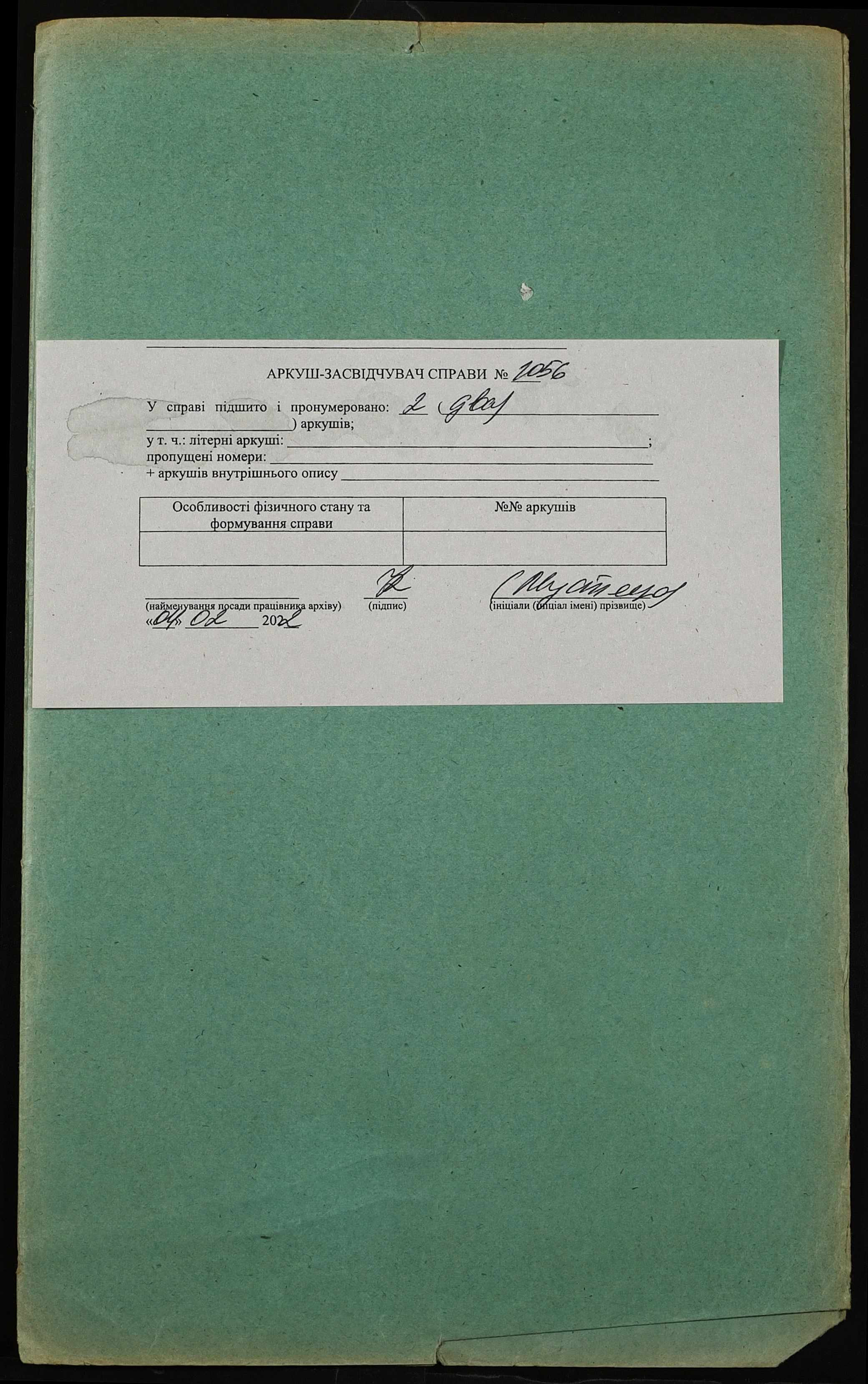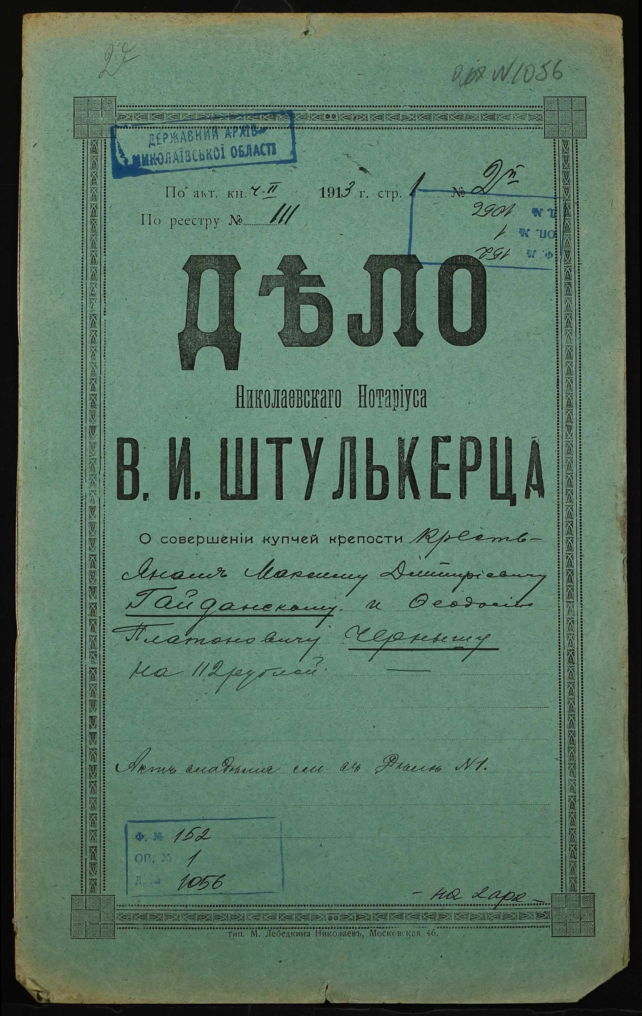 • • • • Справа № 1056 “Справа про вчинення купчої про продаж землі селянином Гайданським Максимом Дмитровичем (Гайданским Максимом Дмитриевичем) на користь селянина Черниша Феодосія Платоновича (Черниша Феодосия Платоновича)”