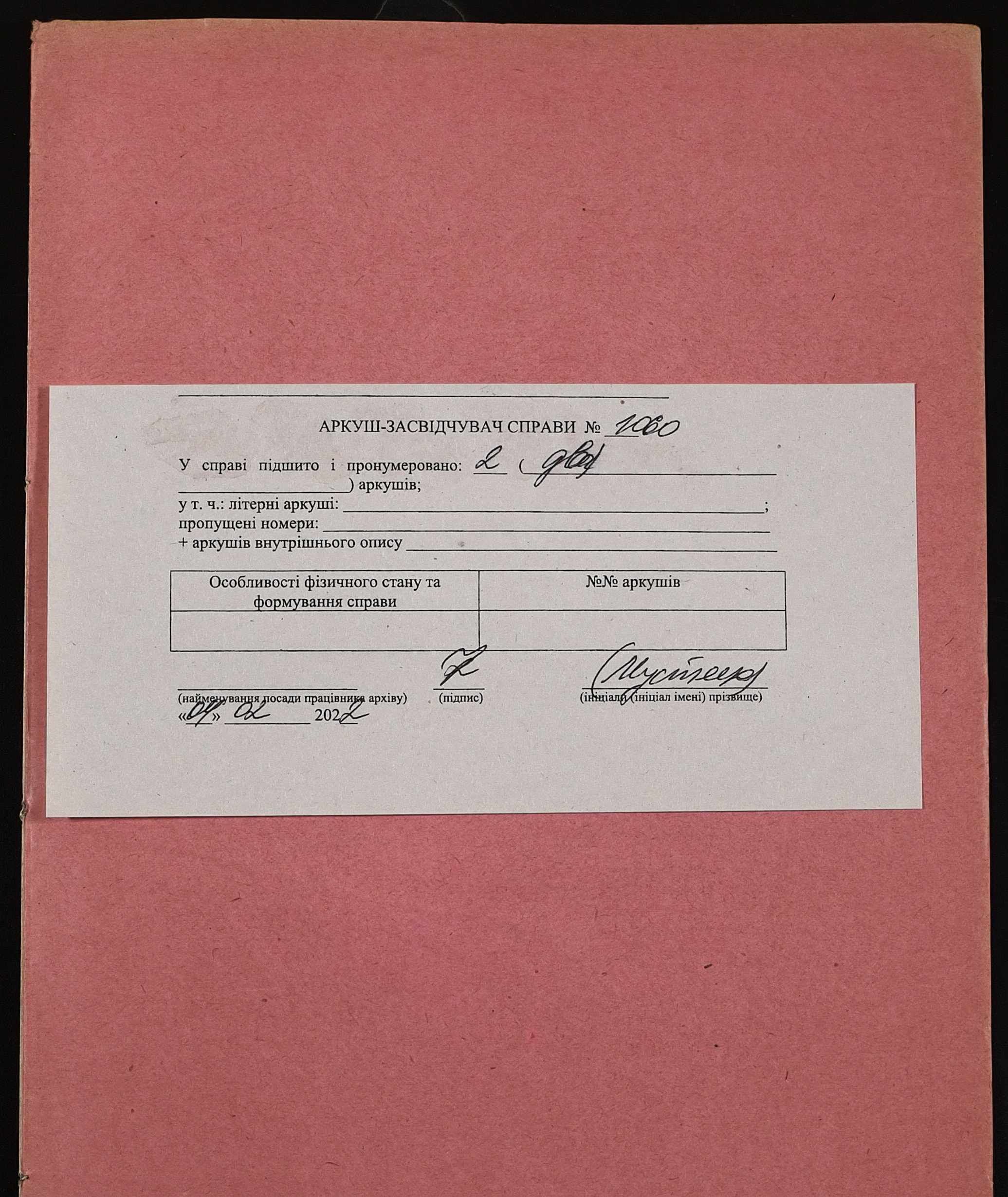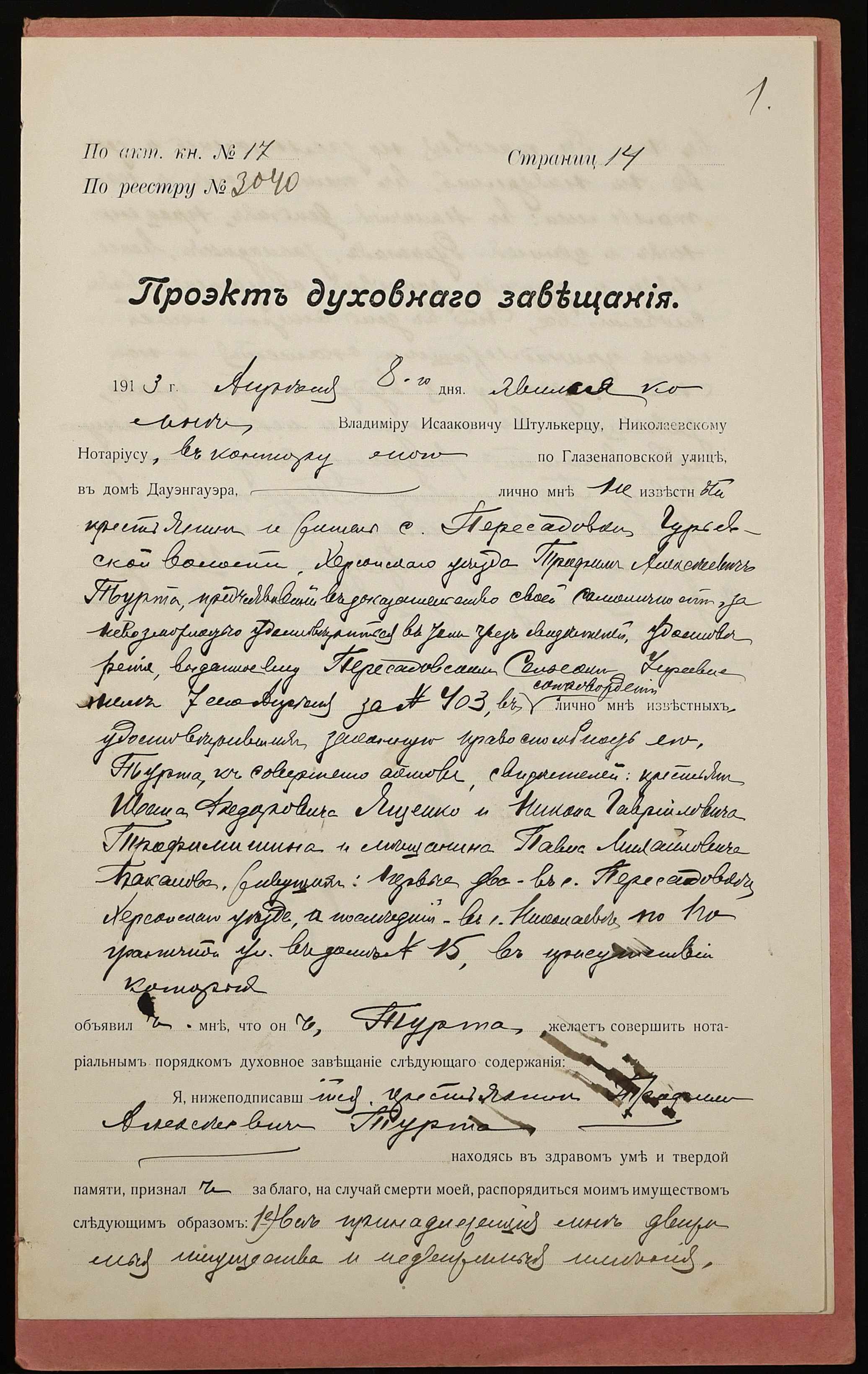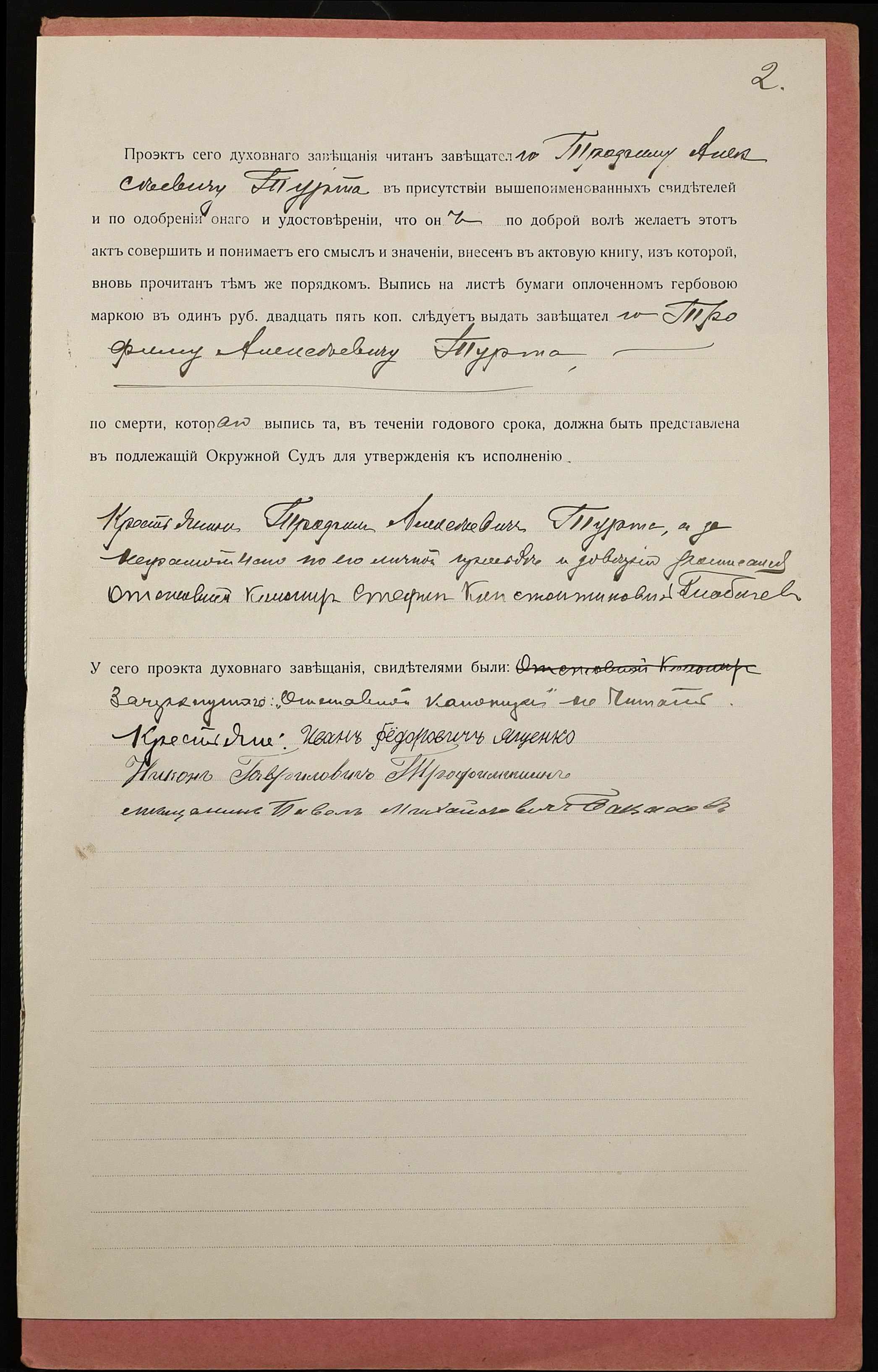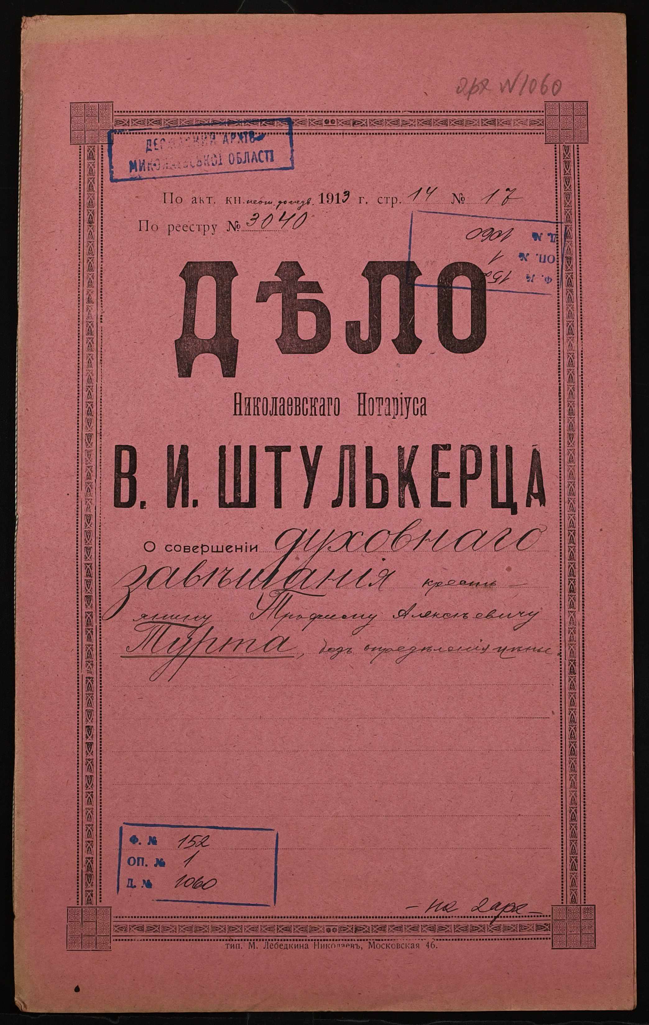 • • • • Справа № 1060 “Проєкт духівниці селянина Турти Трохима Олексійовича (Турты Трофима Алексеевича)”