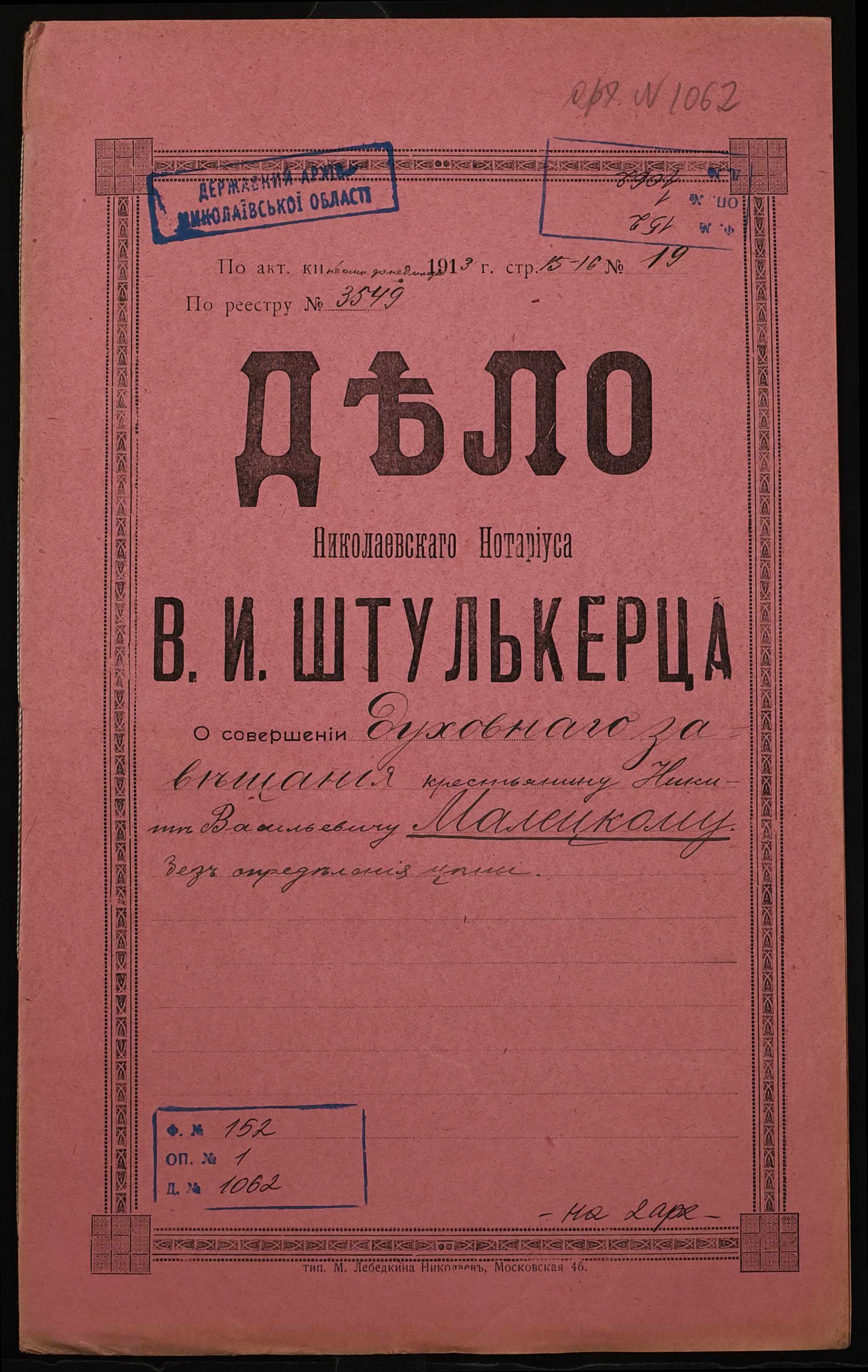 ◦ ◦ Фонд № 152 “Контора миколаївського нотаріуса Херсонського окружного суду Штулькерца Володимира Ісааковича”
