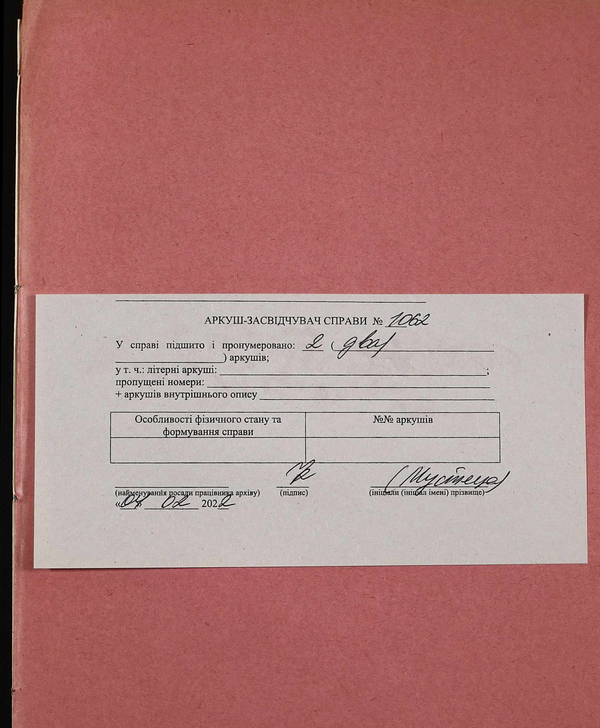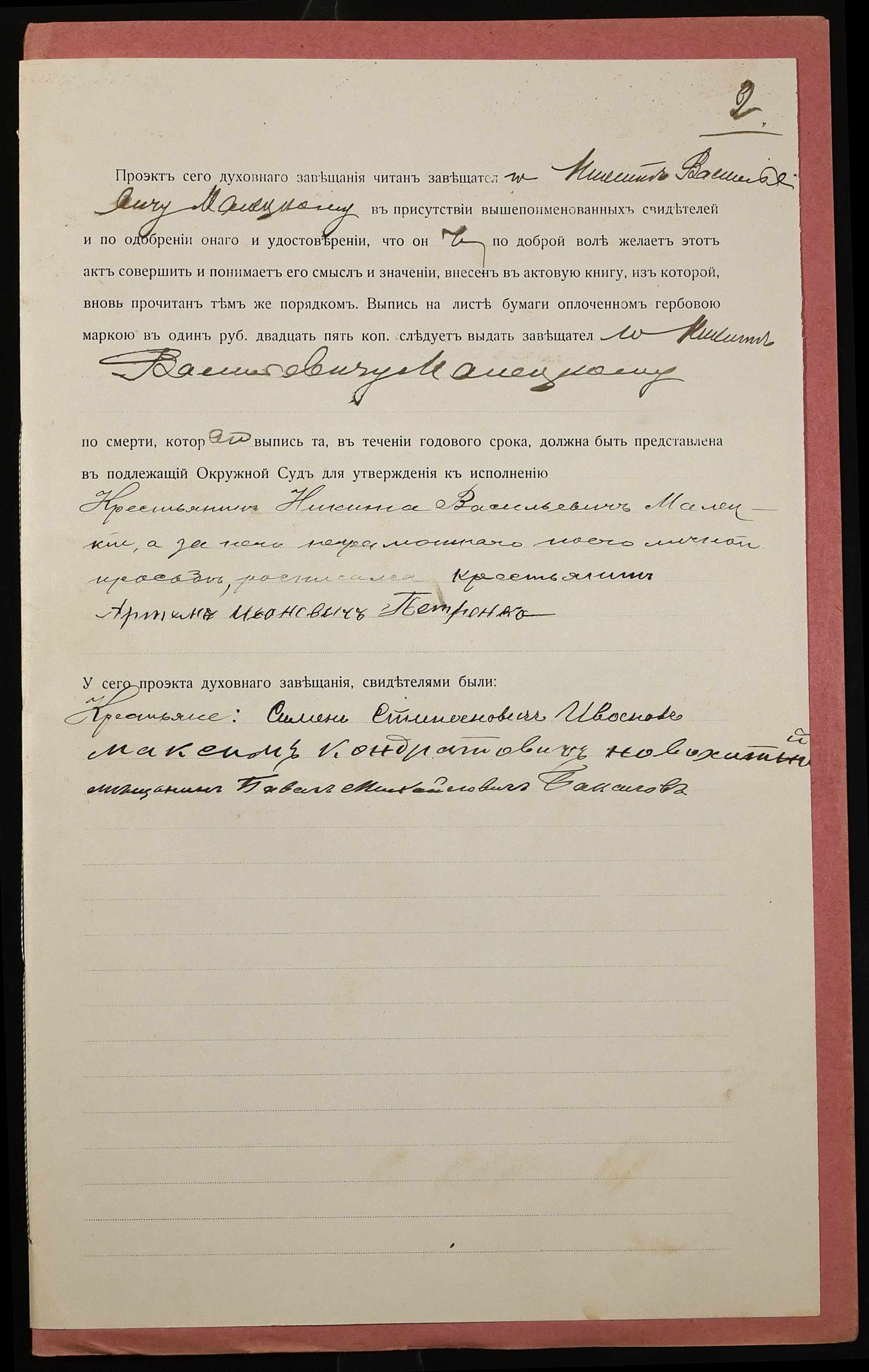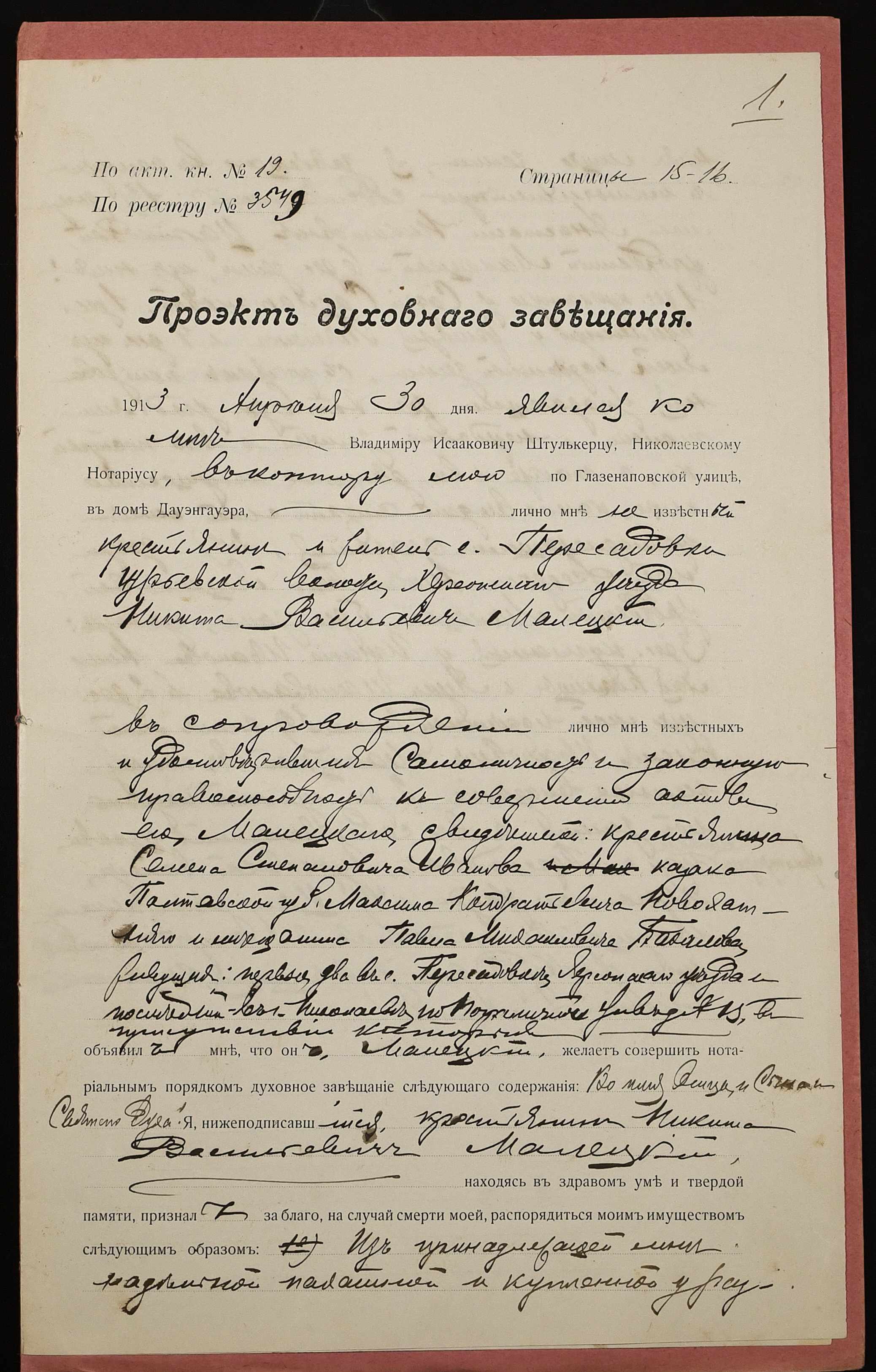 • • • • Справа № 1062 “Проєкт духівниці селянина Малецького Микити Васильовича (Малецкого Никиты Васильевича)”