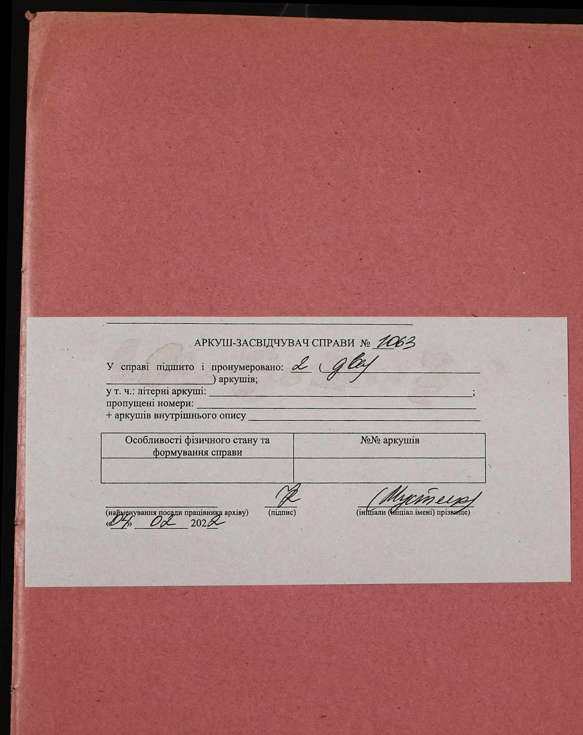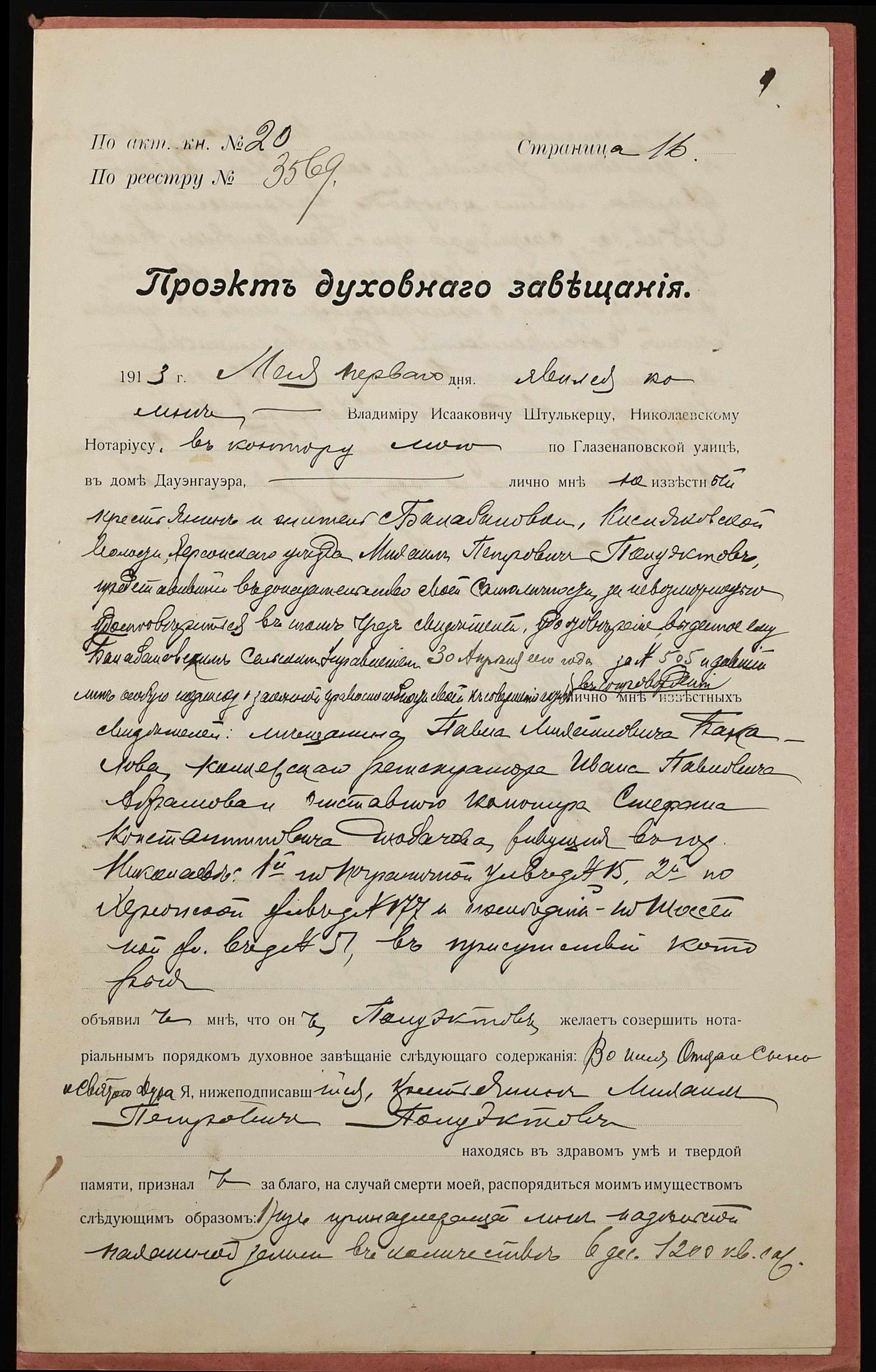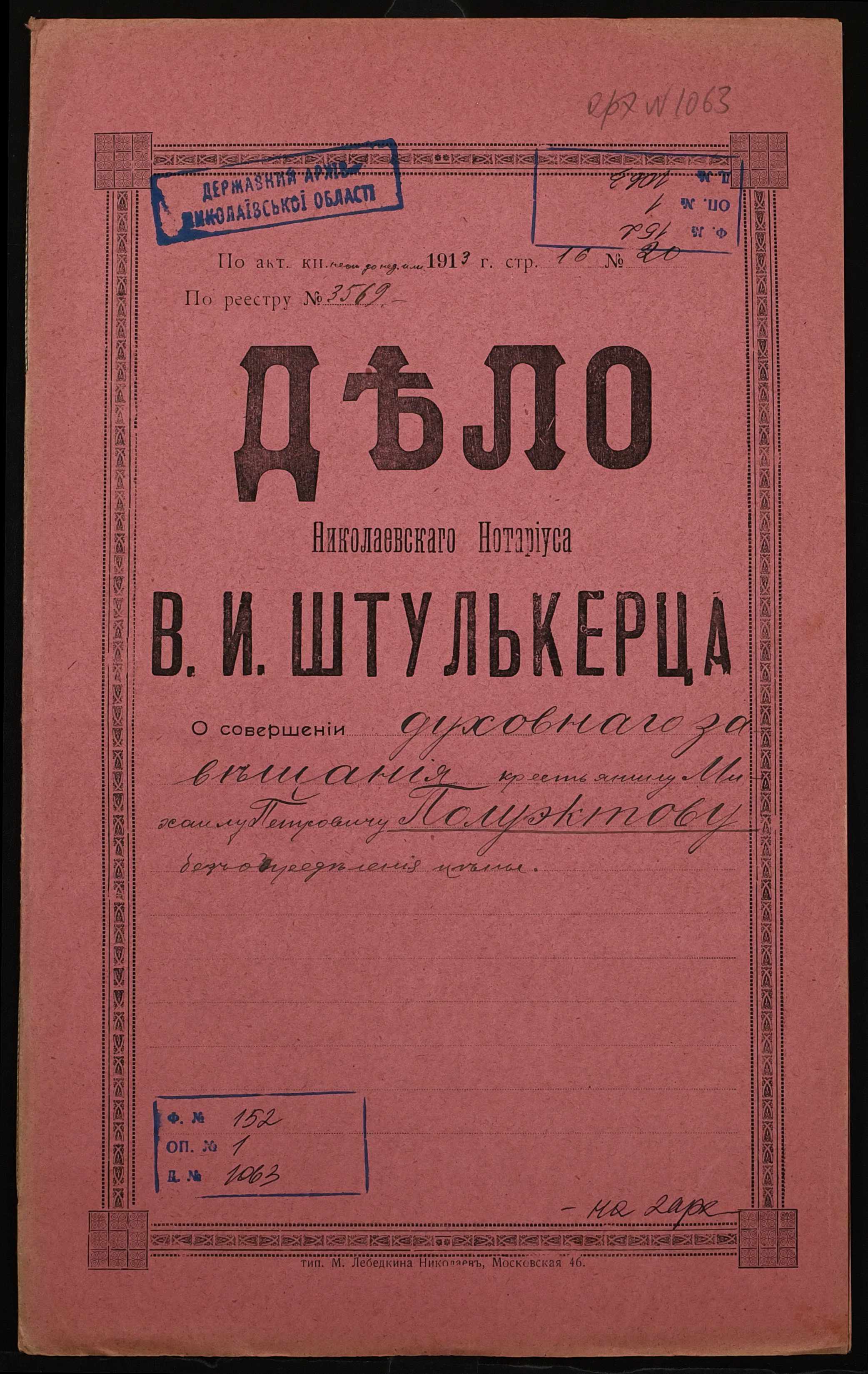 • • • • Справа № 1063 “Проєкт духівниці селянина Полуектова Михайла Петровича (Полуэктова Михаила Петровича)”