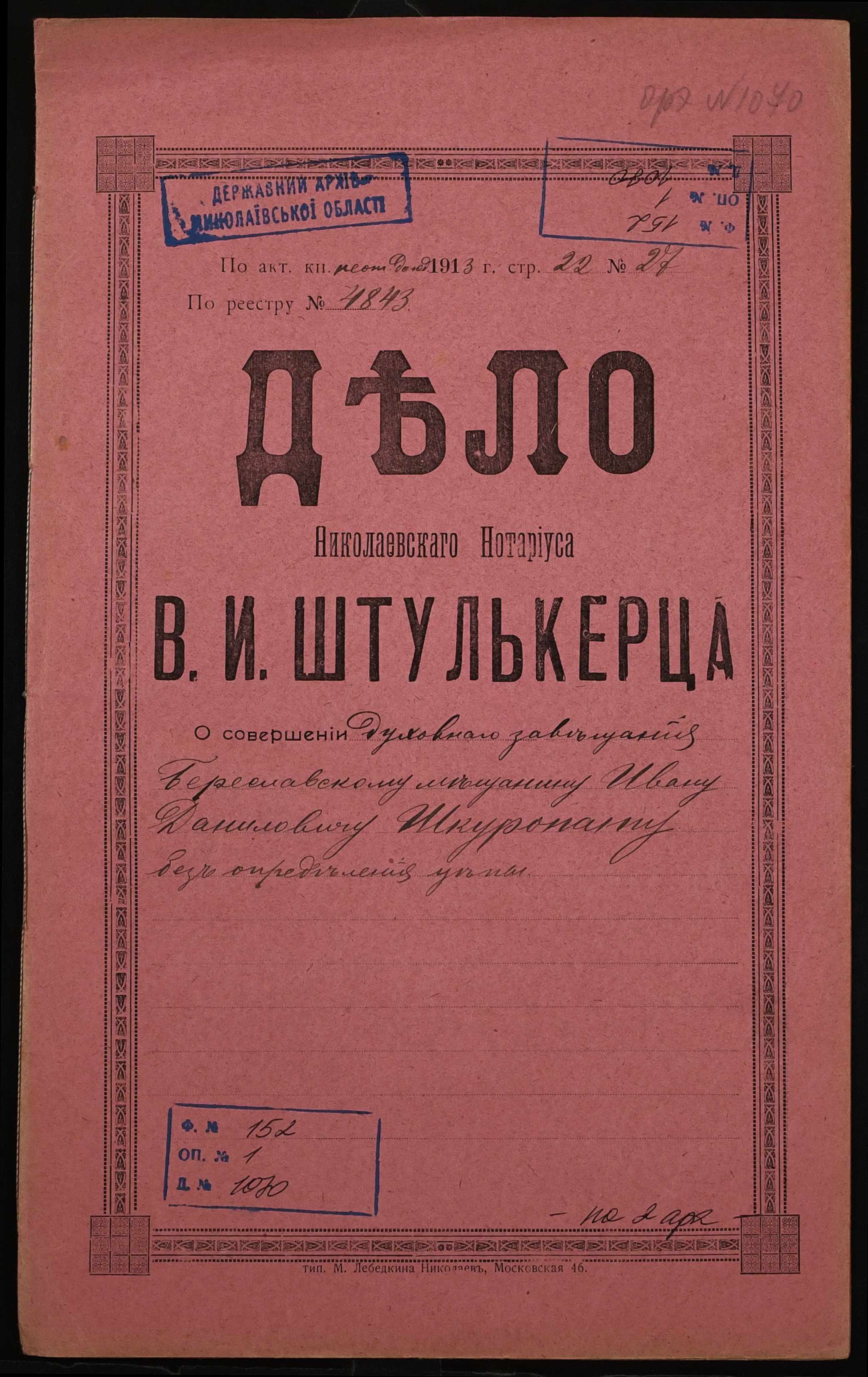 ◦ ◦ Фонд № 152 “Контора миколаївського нотаріуса Херсонського окружного суду Штулькерца Володимира Ісааковича”