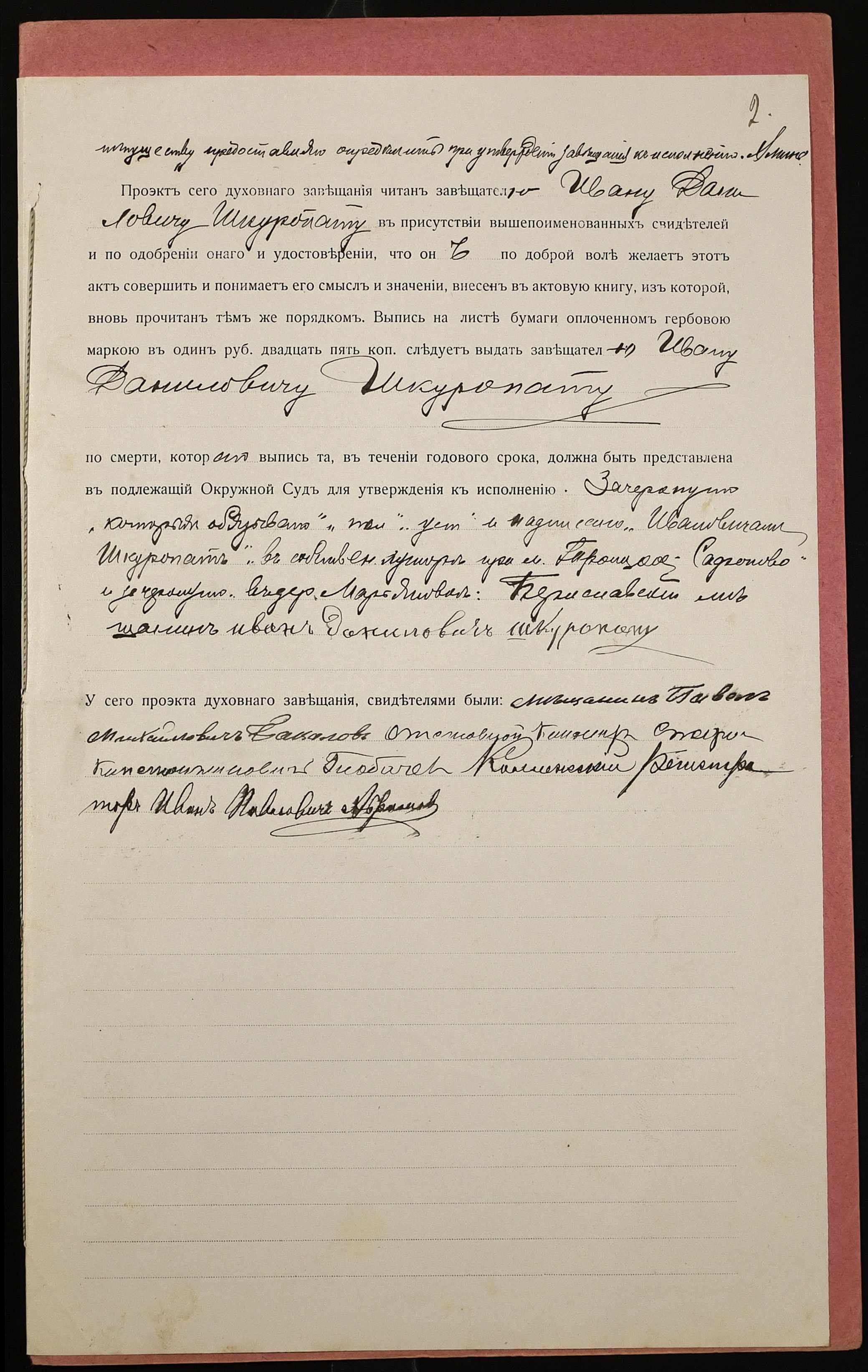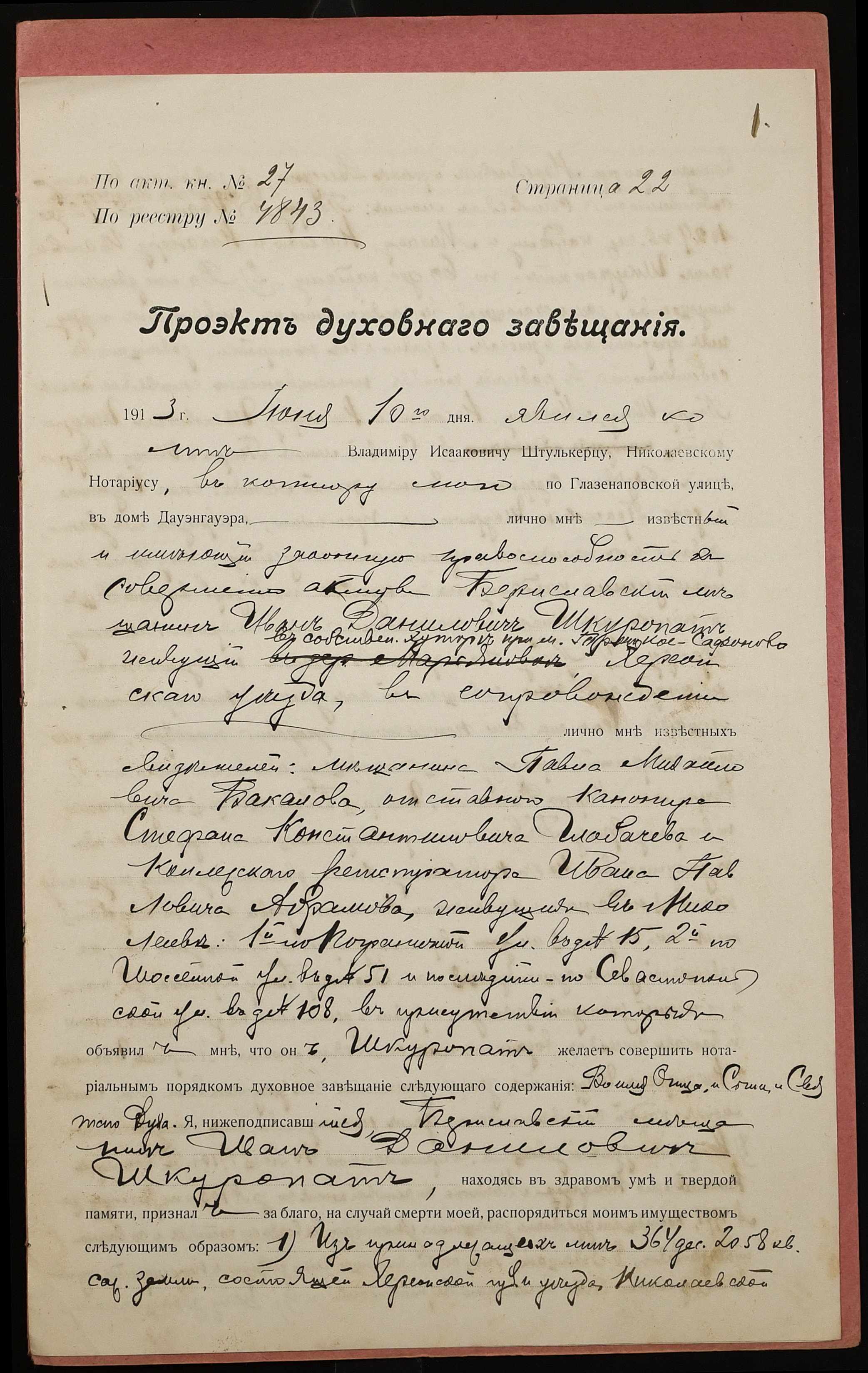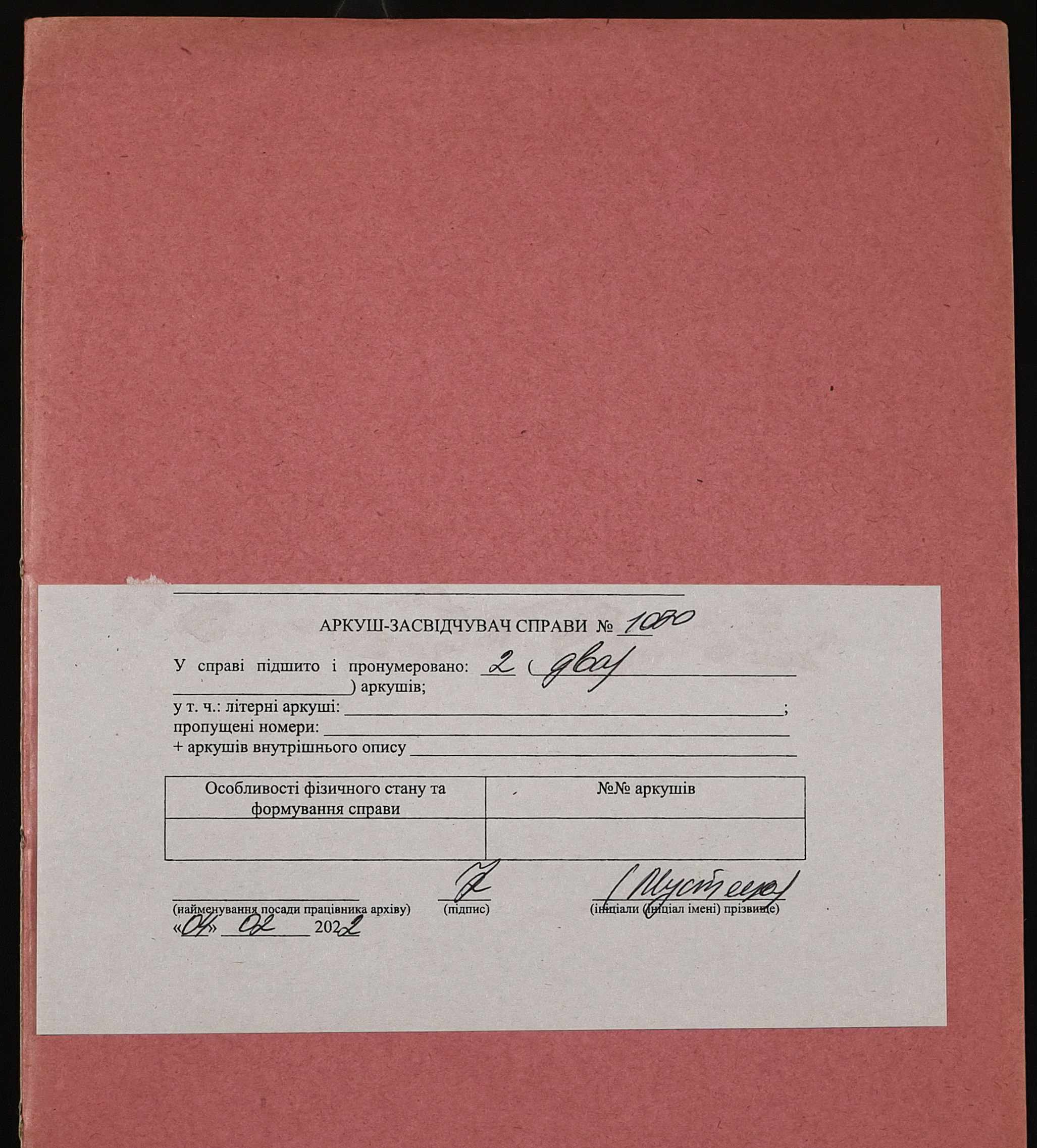 • • • • Справа № 1070 “Проєкт духівниці бериславського міщанина Шкуропата Івана Даниловича (Шкуропата Ивана Даниловича)”