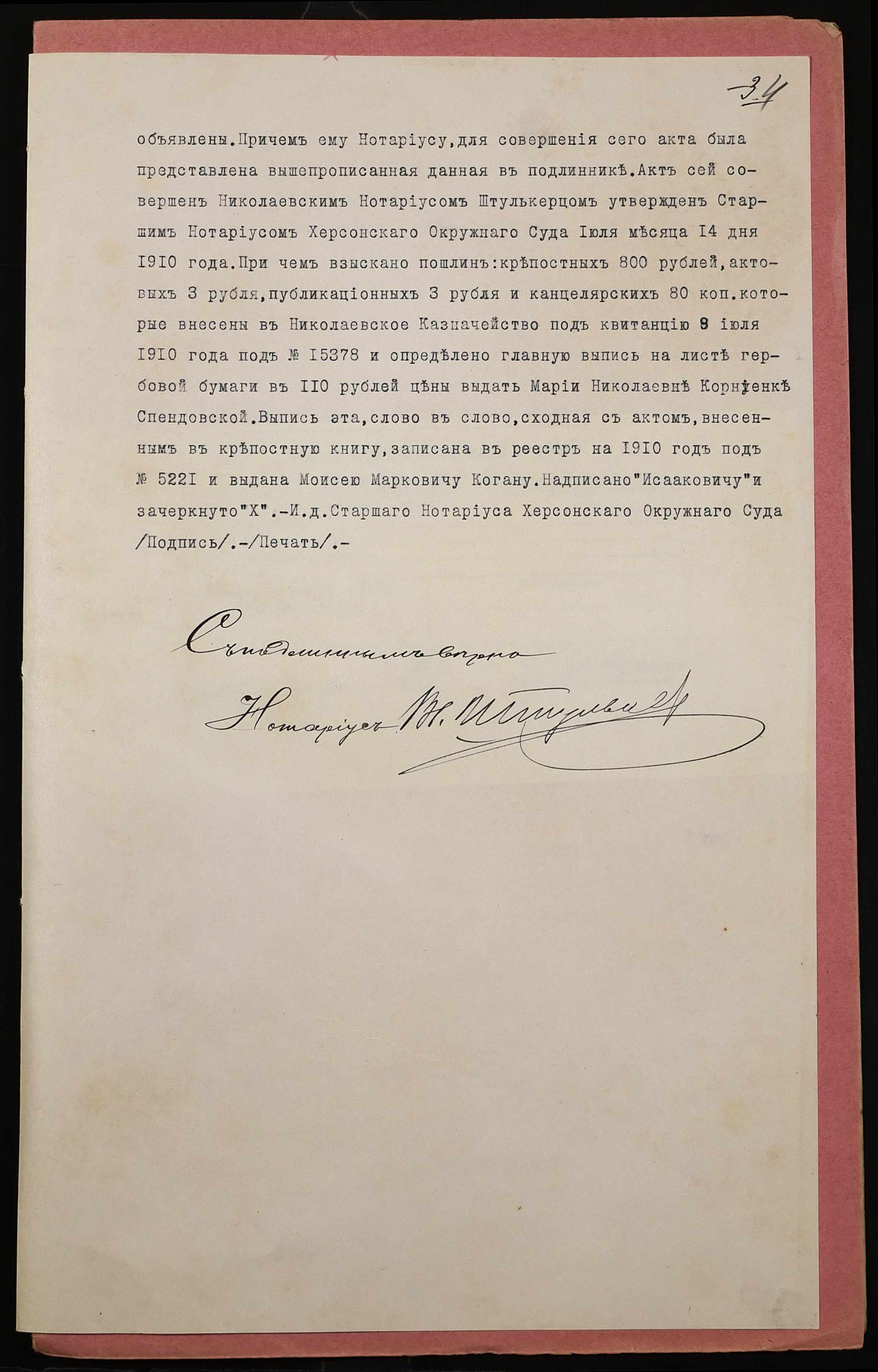 ◦ ◦ Фонд № 152 “Контора миколаївського нотаріуса Херсонського окружного суду Штулькерца Володимира Ісааковича”