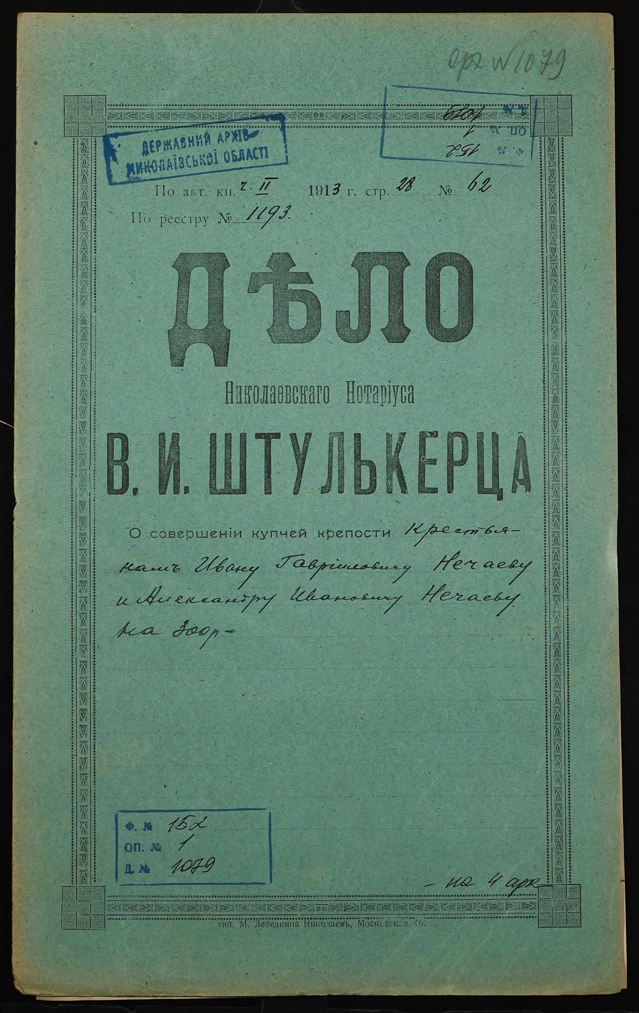 Фонд 152 / Опис 1 / Справа 1079
